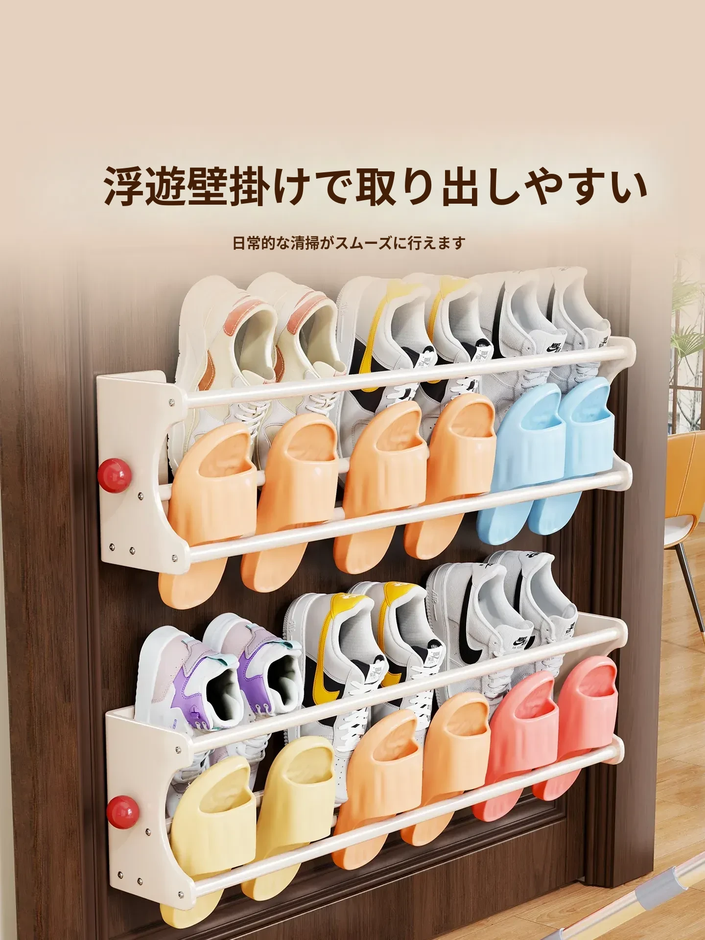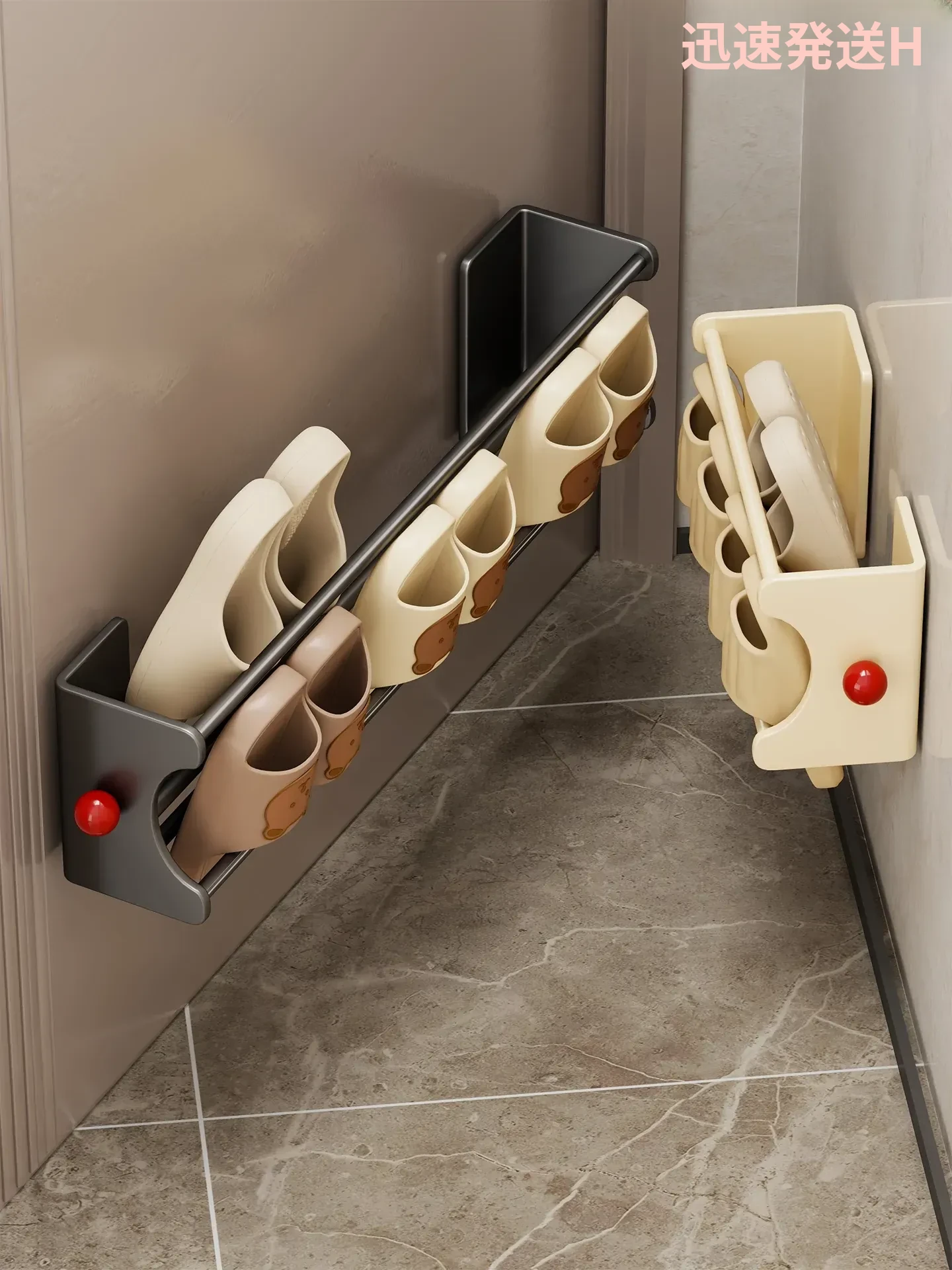 後ろドア用マグネットスリッパラック - 浴室壁掛け水切り収納、家用多機能・穴あけ不要の便利なスタンド!おしゃれで実用的な収納解決策で、毎日の生活をもっと快適に!