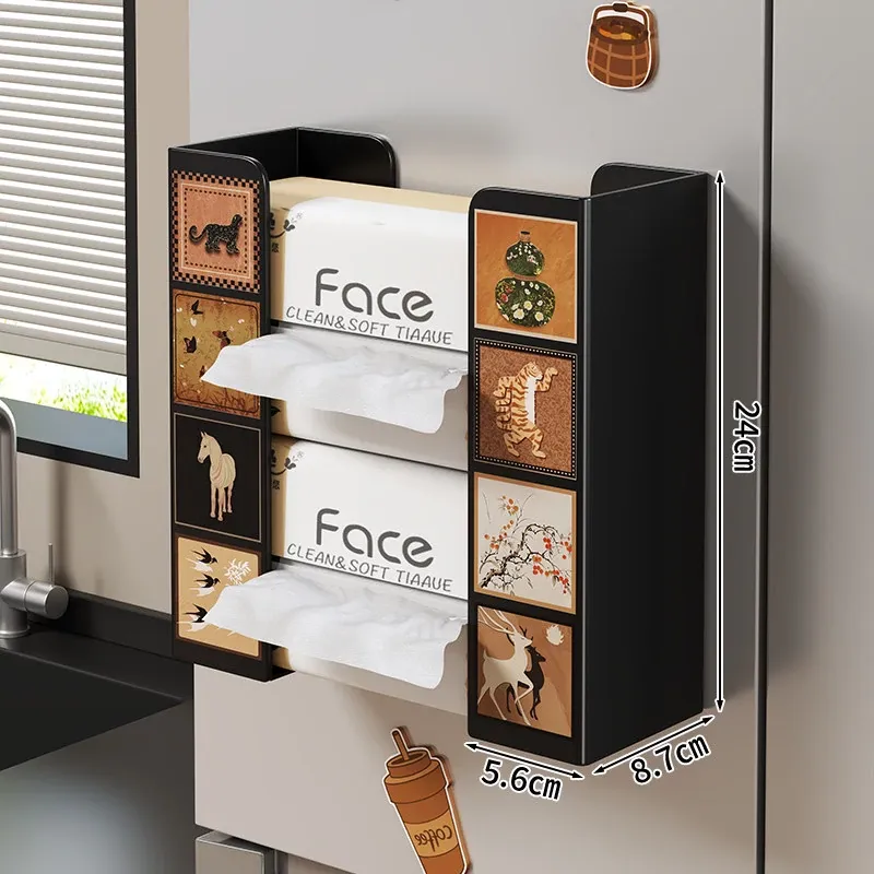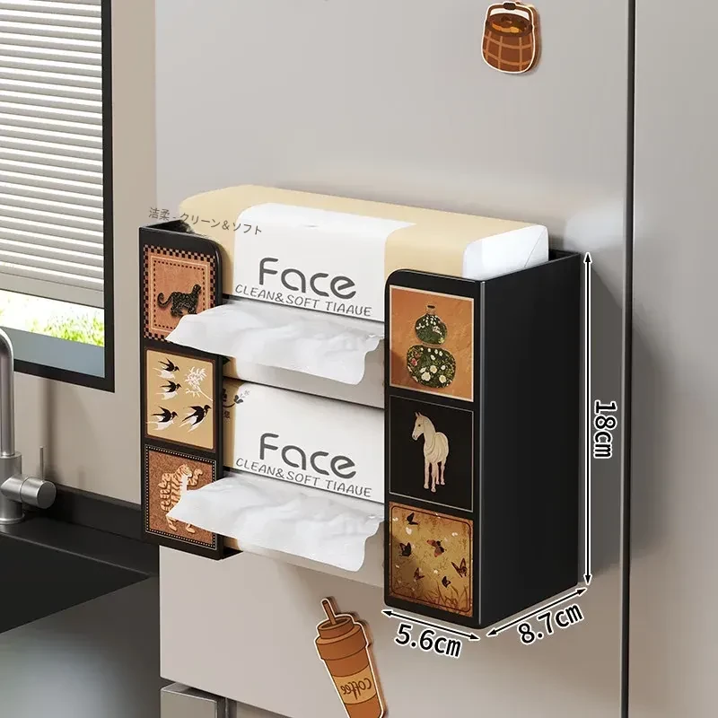 冷蔵庫マグネット収納ラック&ティッシュボックス|キッチン用ウェットティッシュ壁掛けサイドティッシュホルダー|逆さまに取り付け可能な分離式ティッシュラックでスペースを有効活用!