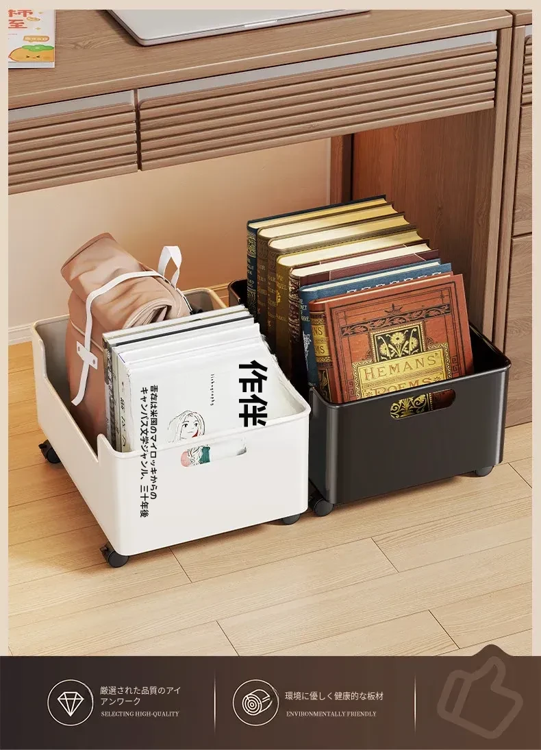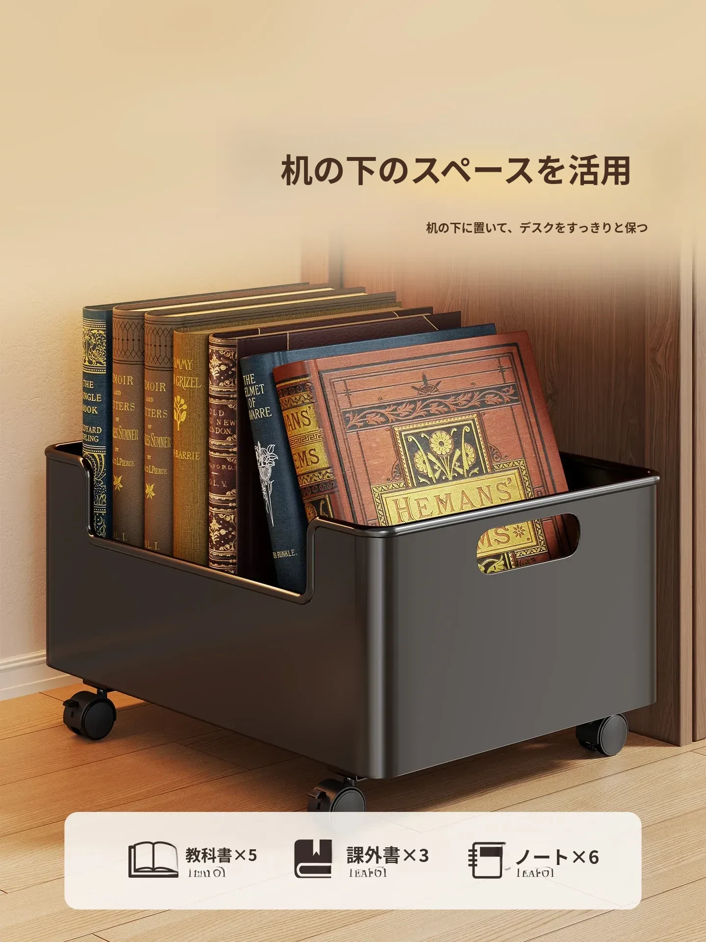 書籍収納ボックス付き移動式ラック|学生向け教科書や資料、バッグをすっきり整理!お部屋をスリムに保つ便利アイテム!