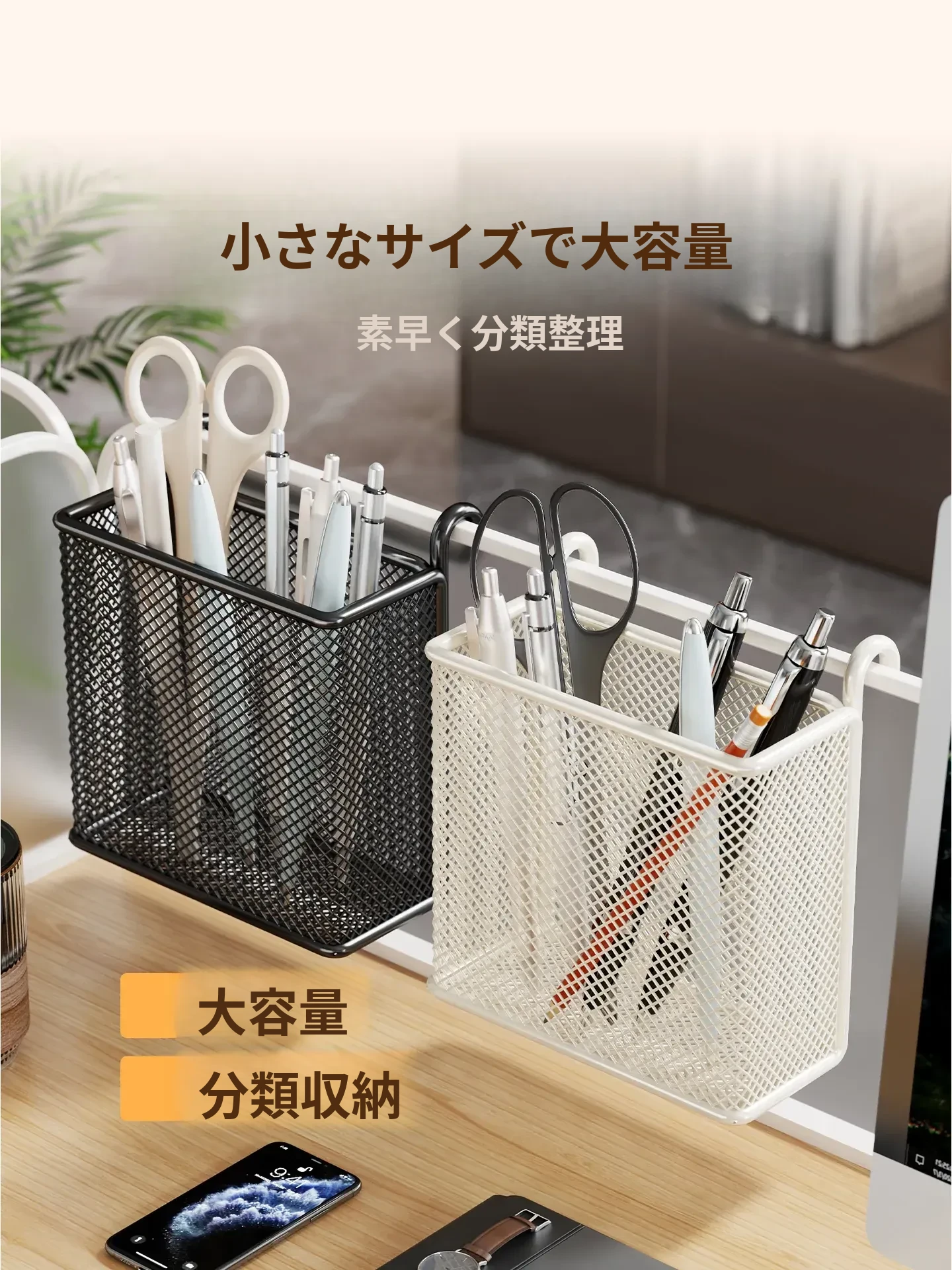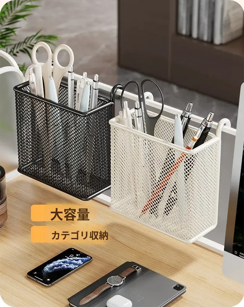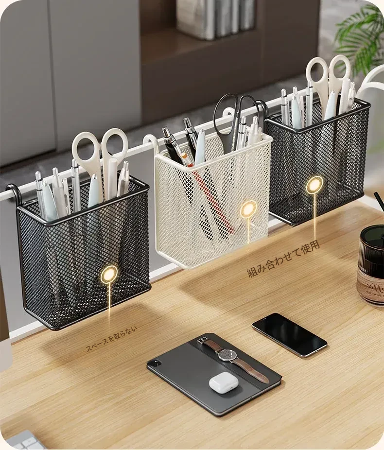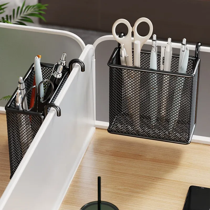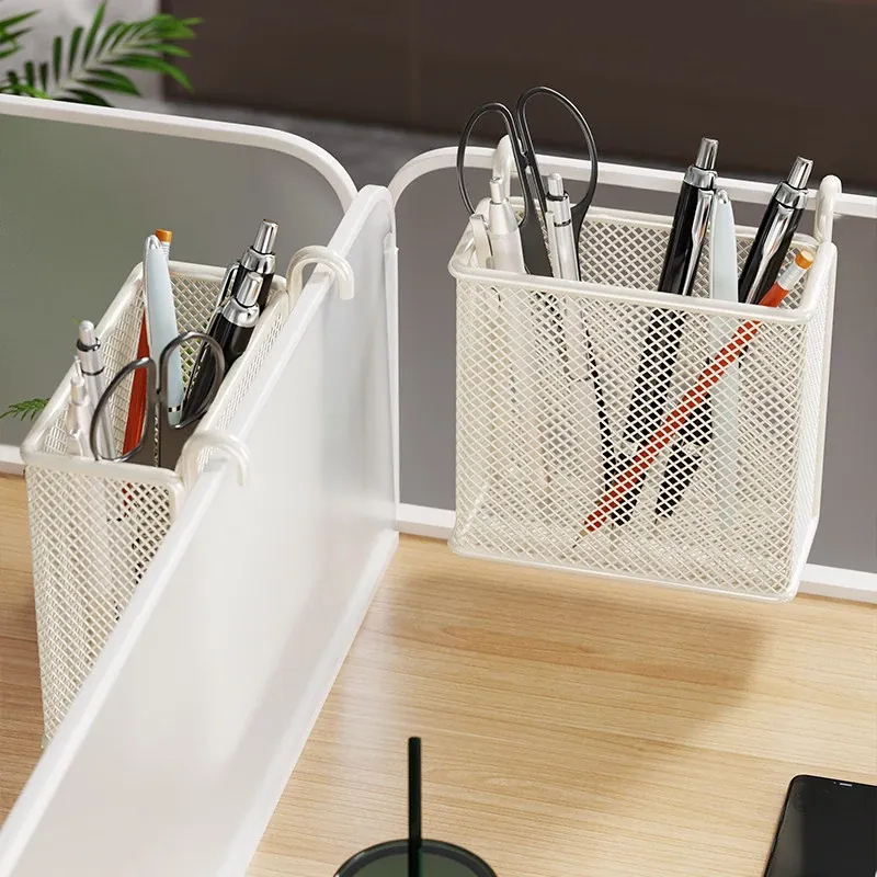 多機能デスク収納ラック - オフィスデスク用パーティション&ハンギングバスケットで、整理整頓を簡単に実現!あなたの作業スペースをもっと快適に。