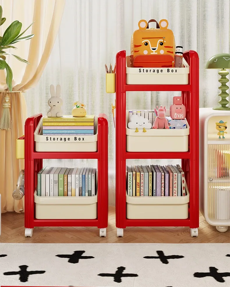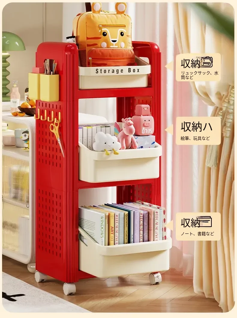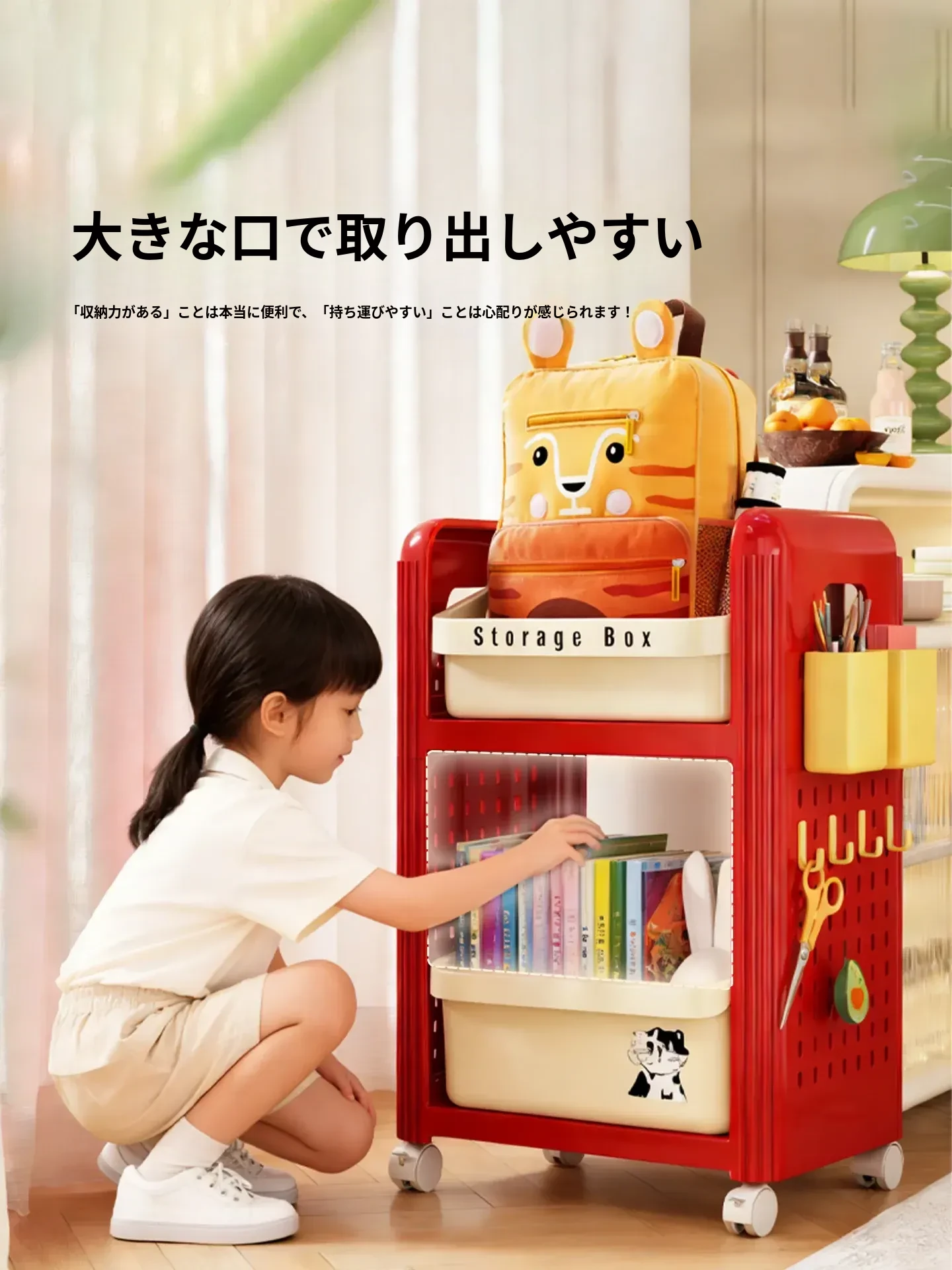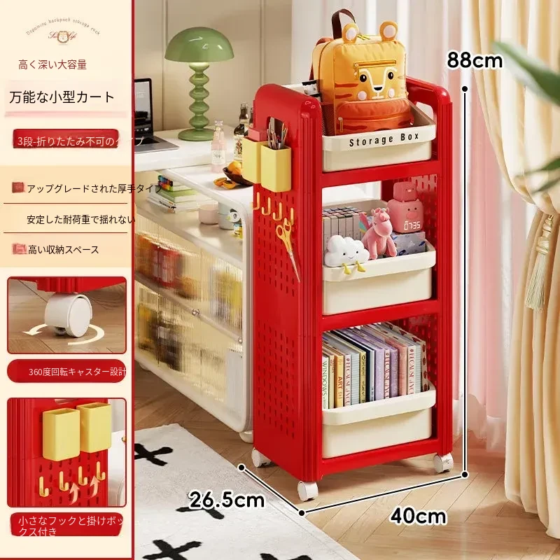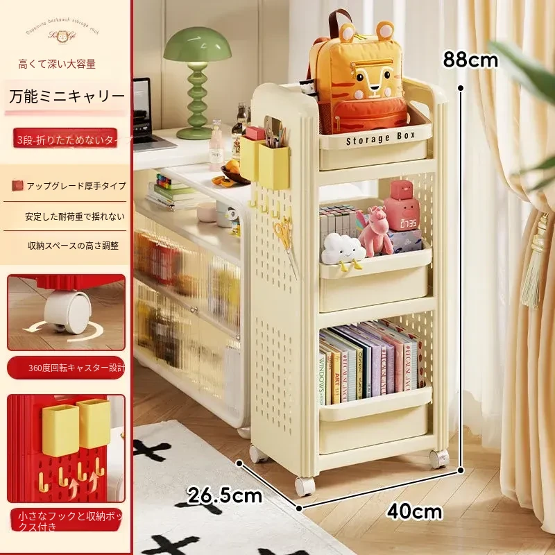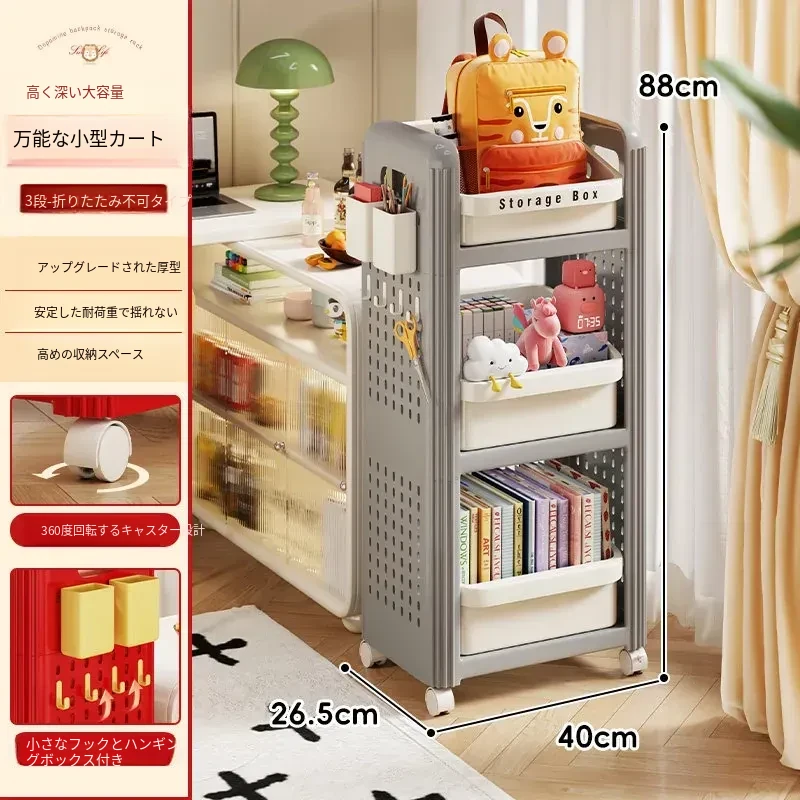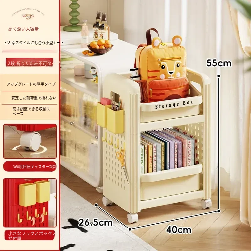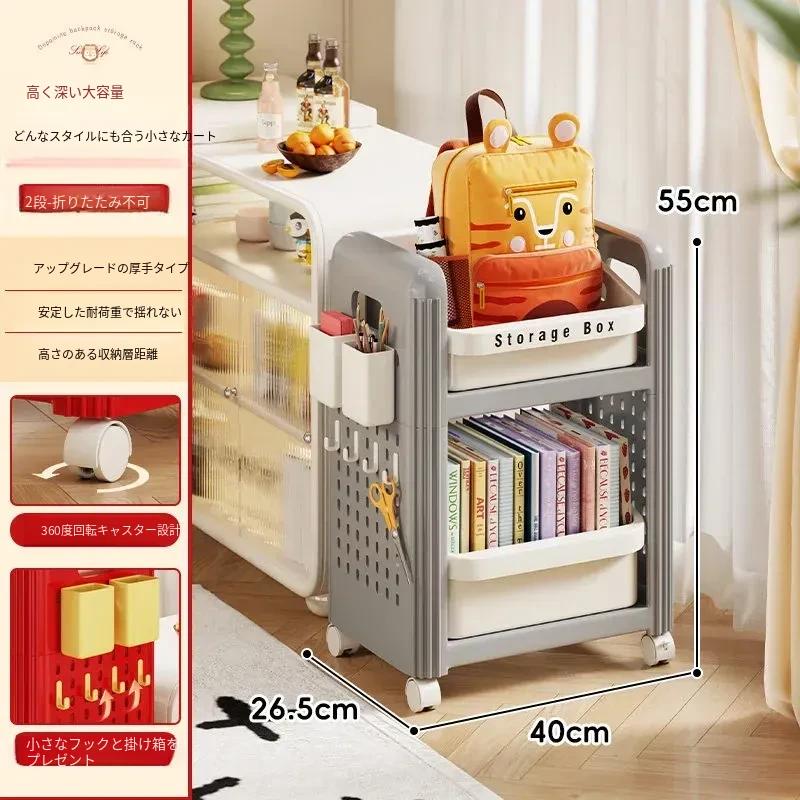 移動式ブックラック - 学生や家庭に最適な多層収納カート!デスク下にぴったり収まる、書籍や文房具の整理に最適なアイテムです。おしゃれで便利な収納ソリューションをお楽しみください!