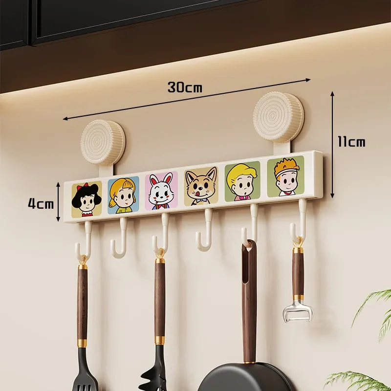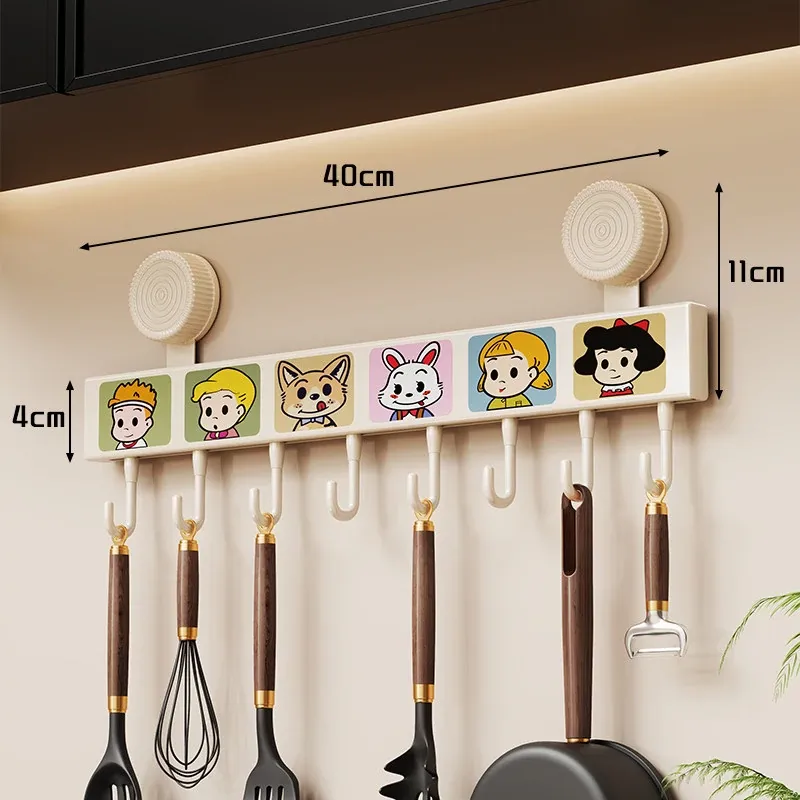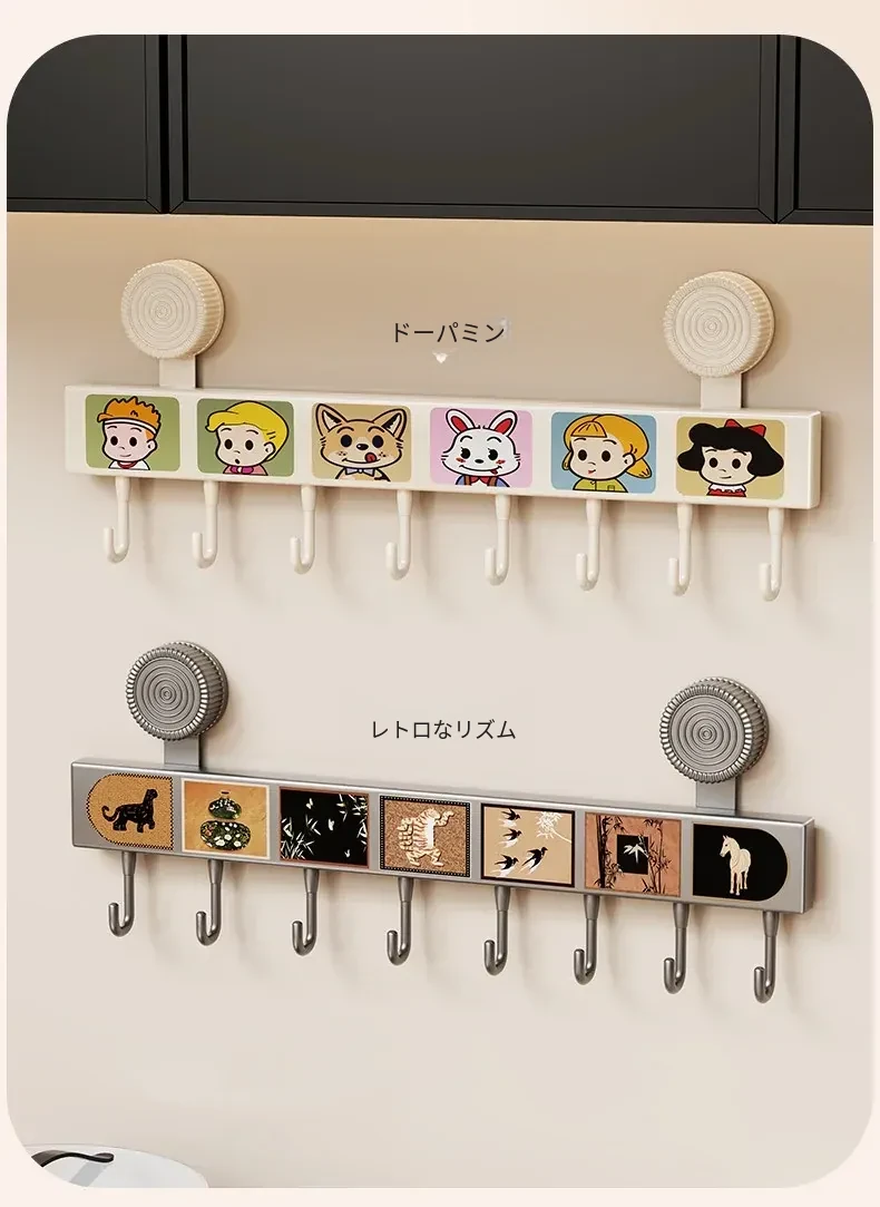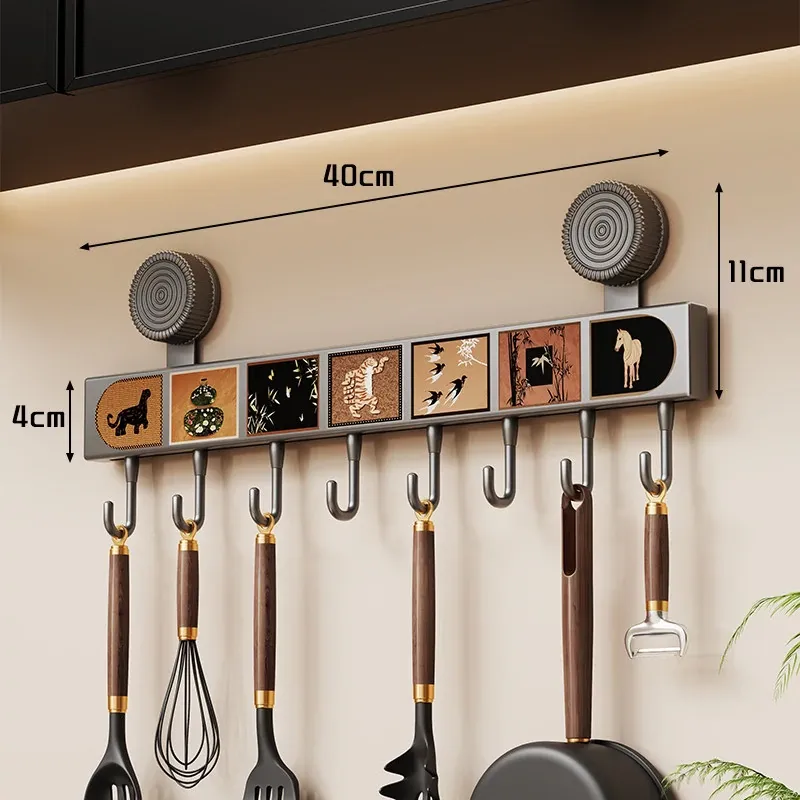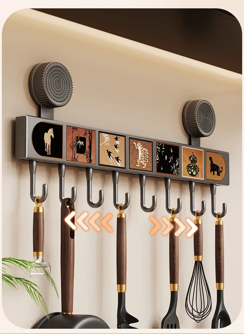 キッチン吸盤フック 壁掛け収納ラック - 打孔不要で鍋やスプーン、ヘラをスッキリ整理!多機能デザインでドアの裏でも使える便利アイテムです。