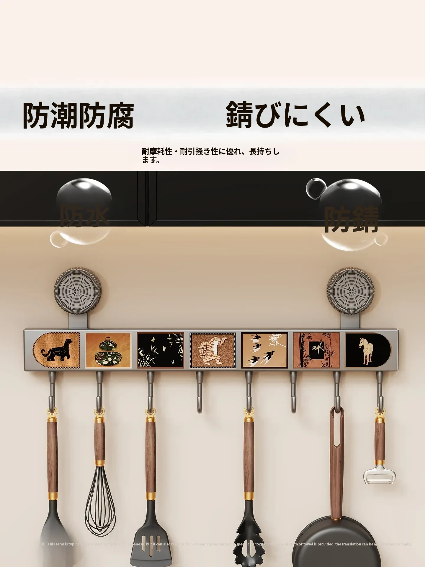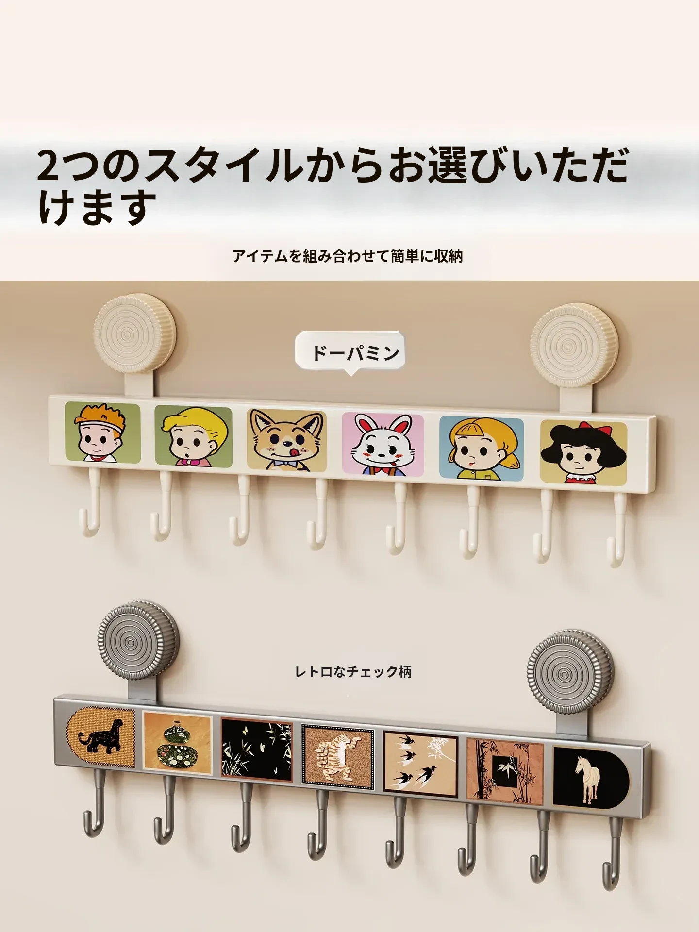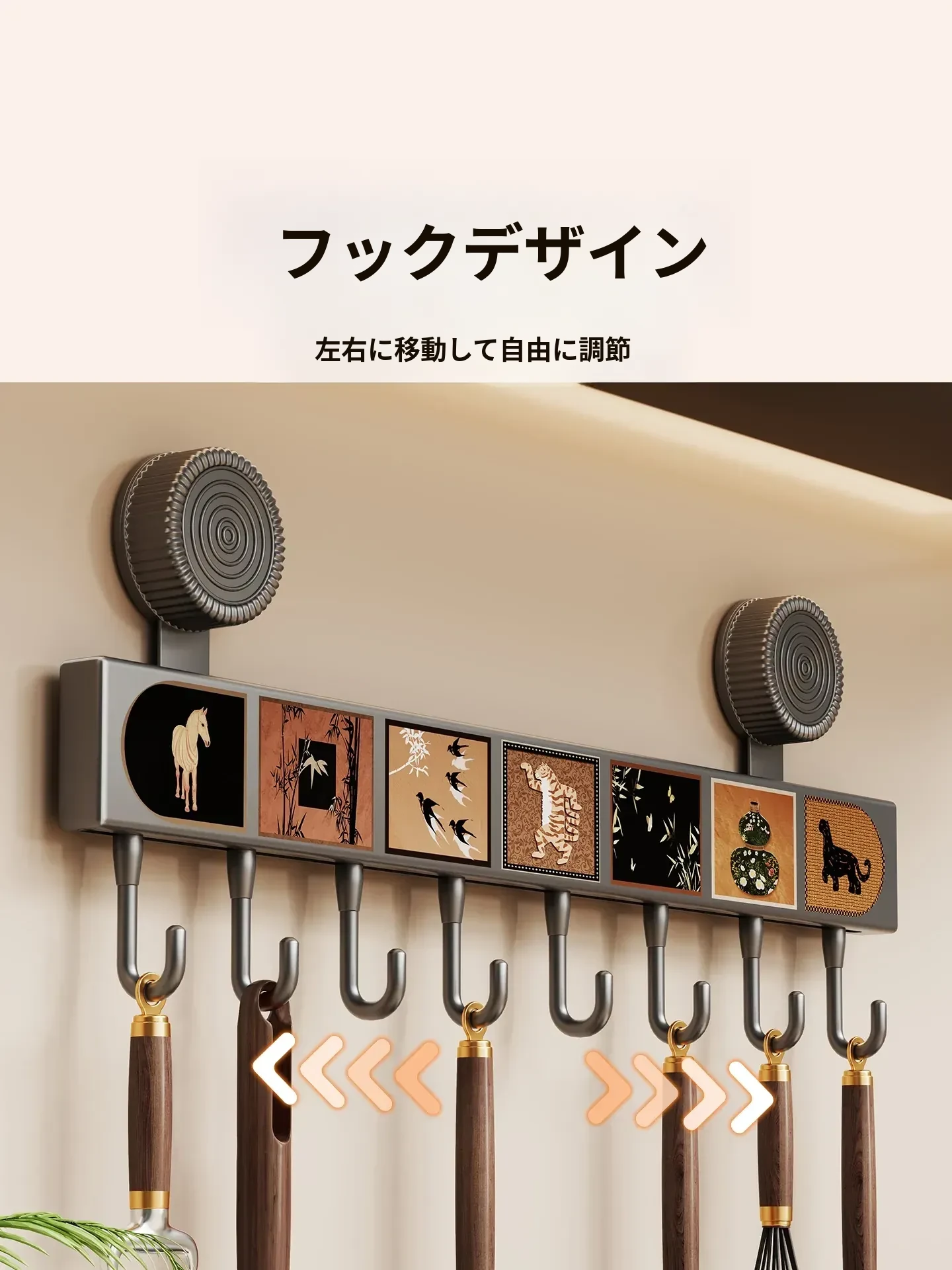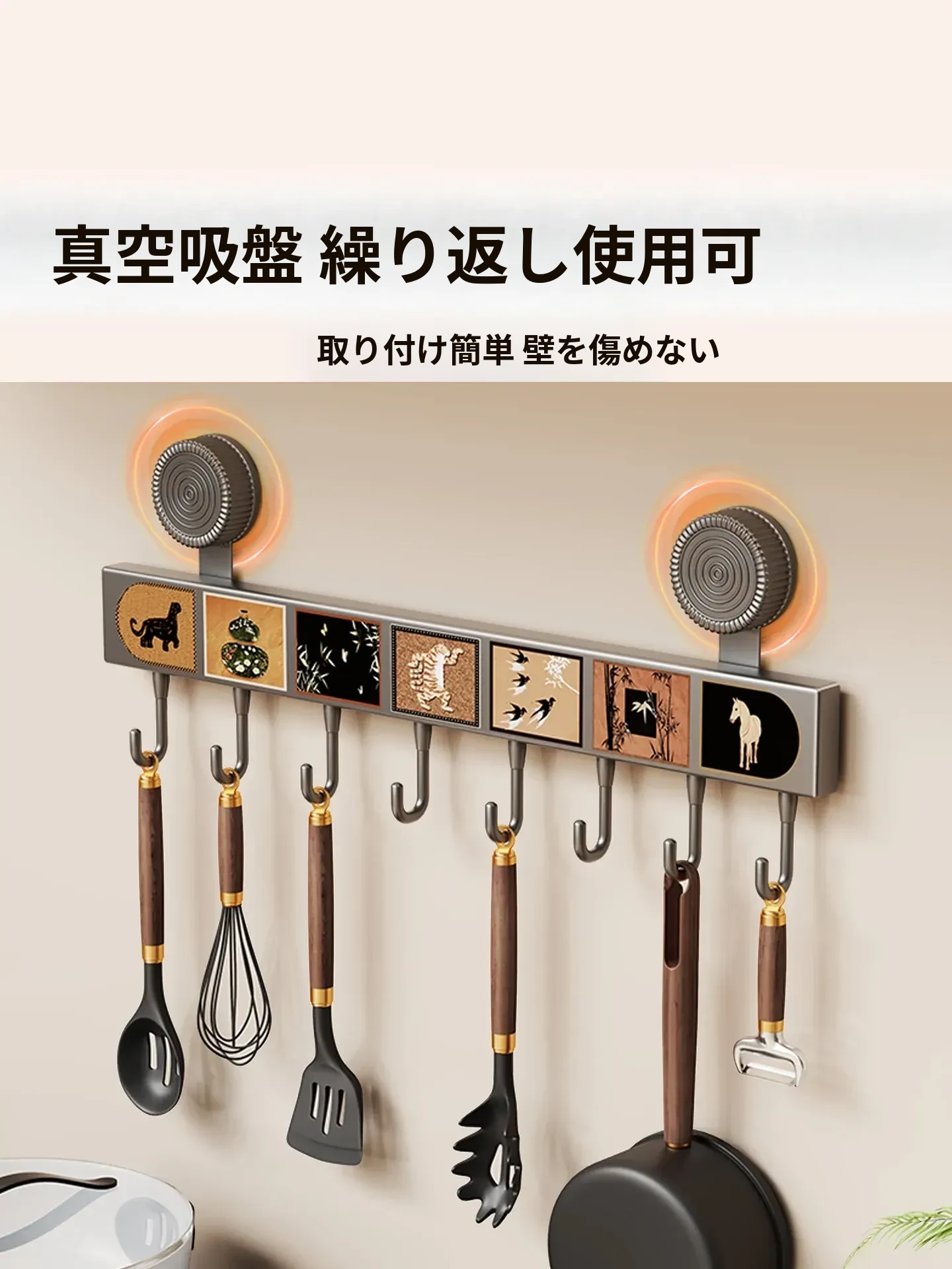 キッチン吸盤フック 壁掛け収納ラック - 打孔不要で鍋やスプーン、ヘラをスッキリ整理!多機能デザインでドアの裏でも使える便利アイテムです。