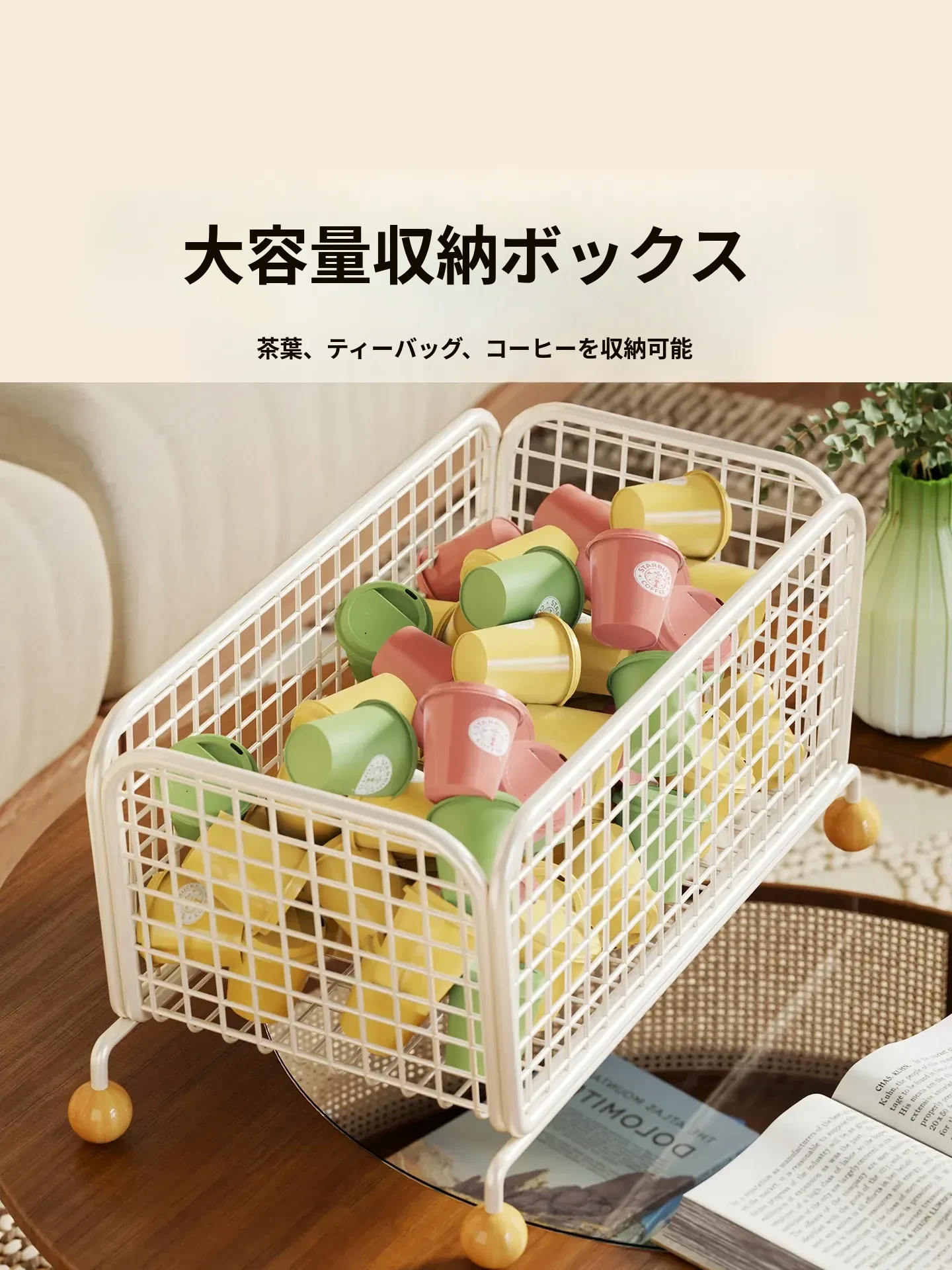 ティーバッグ収納ボックス・カプセルコーヒー・ミルクティー用オフィス収納ラック!多機能大容量デスクトップお菓子置き場で、スッキリ整理整頓。あなたの仕事空間をもっと快適に!