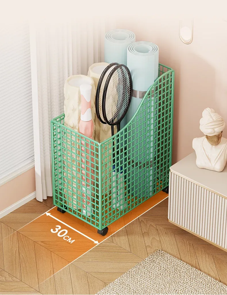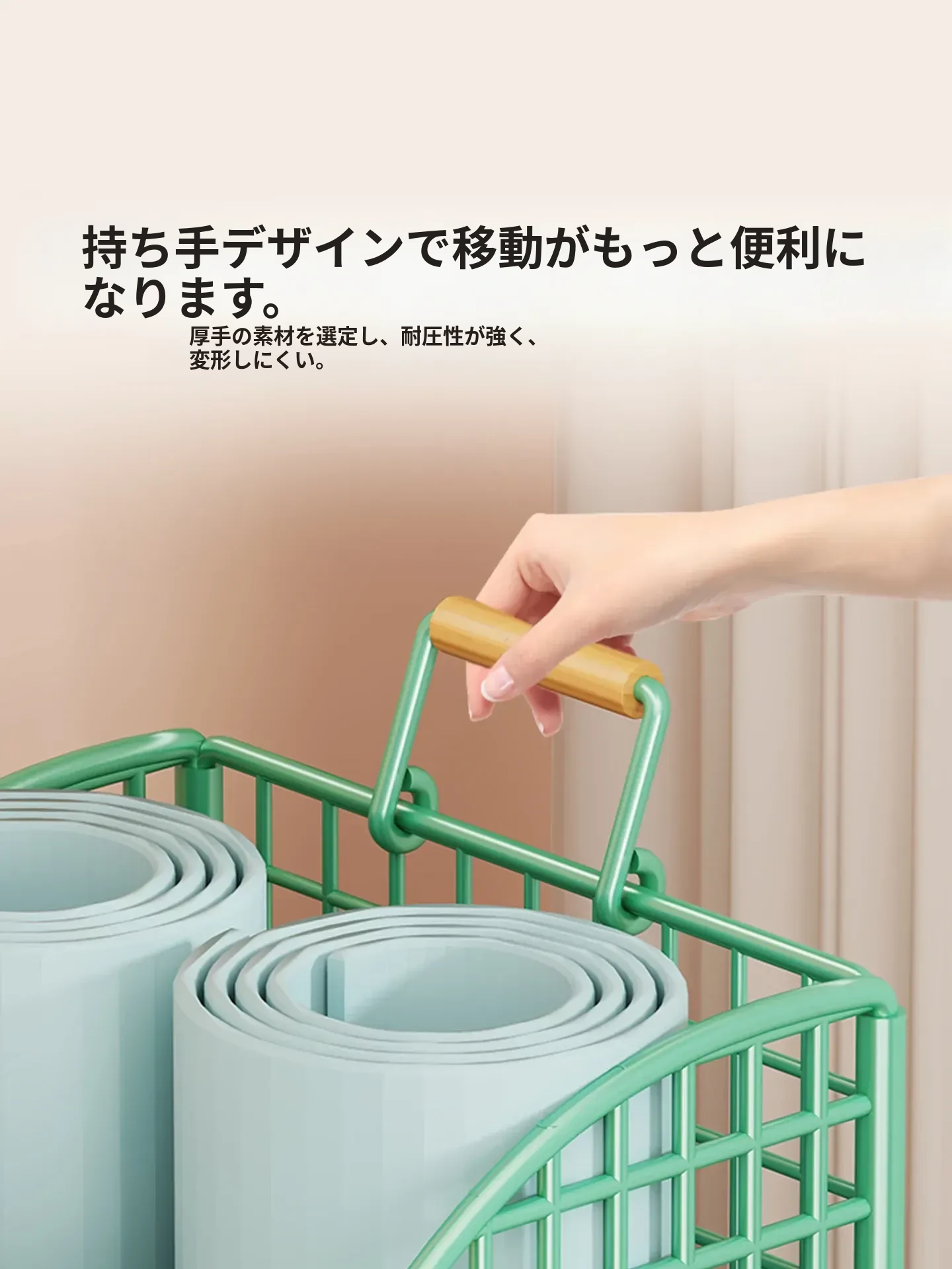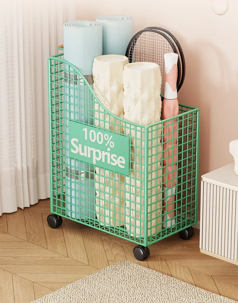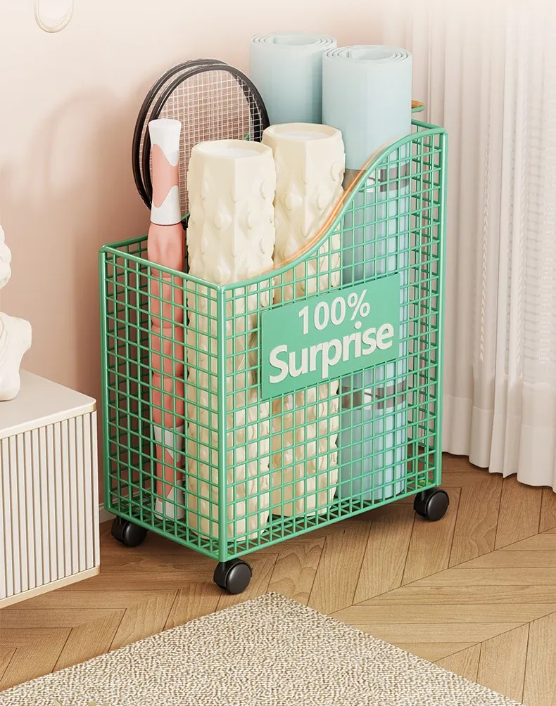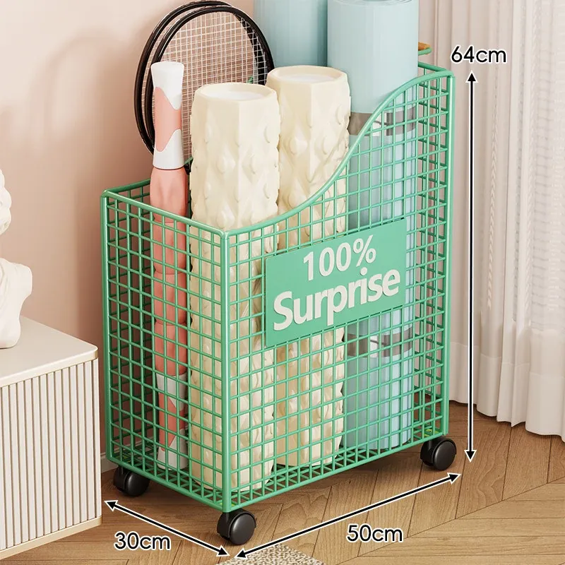 ヨガマット収納バスケット 家庭用 大容量キャスター付き フォームローラー 健康器具 多機能スリム収納ラック - スペースを有効活用し、快適なトレーニング環境を実現!