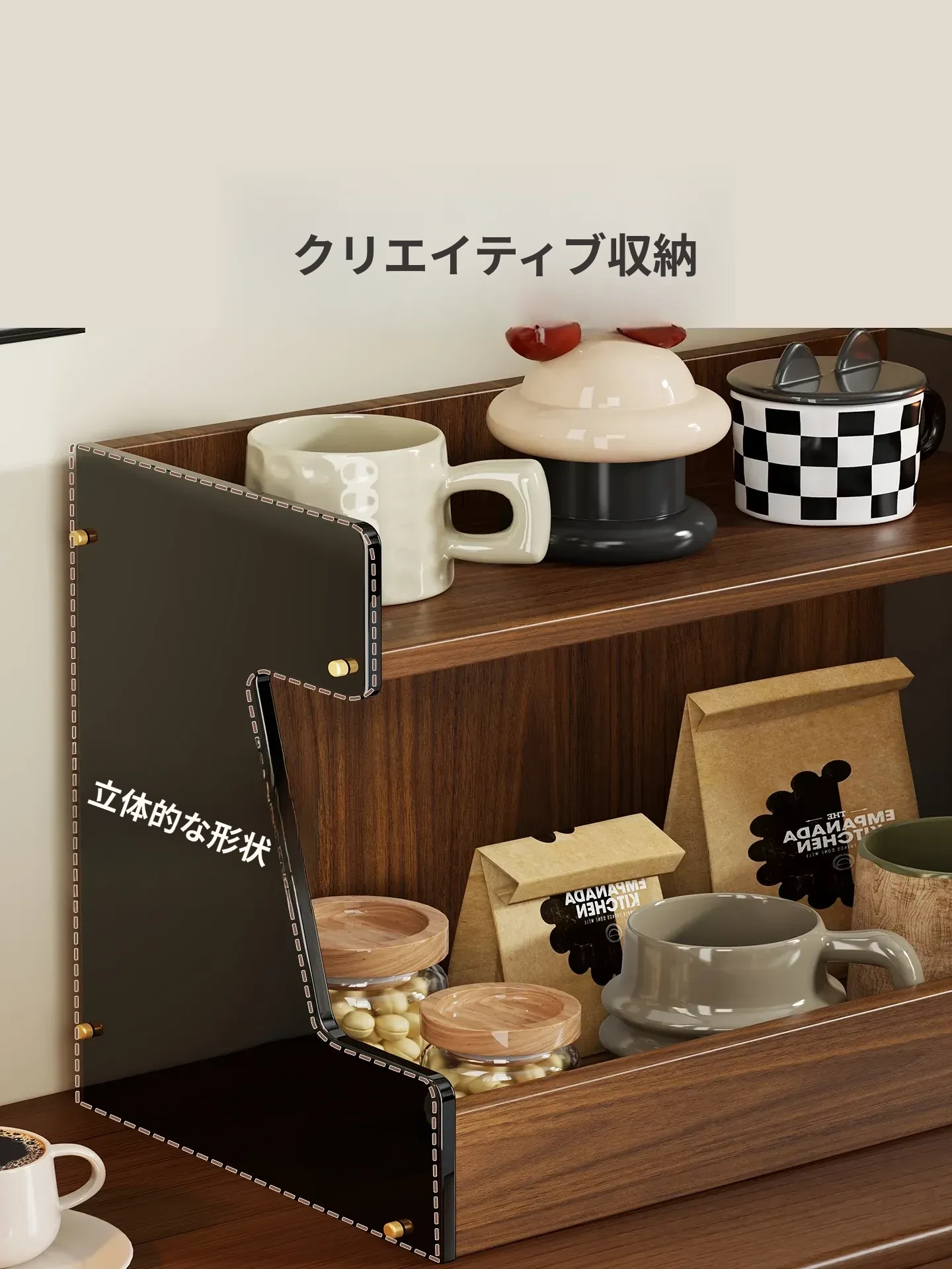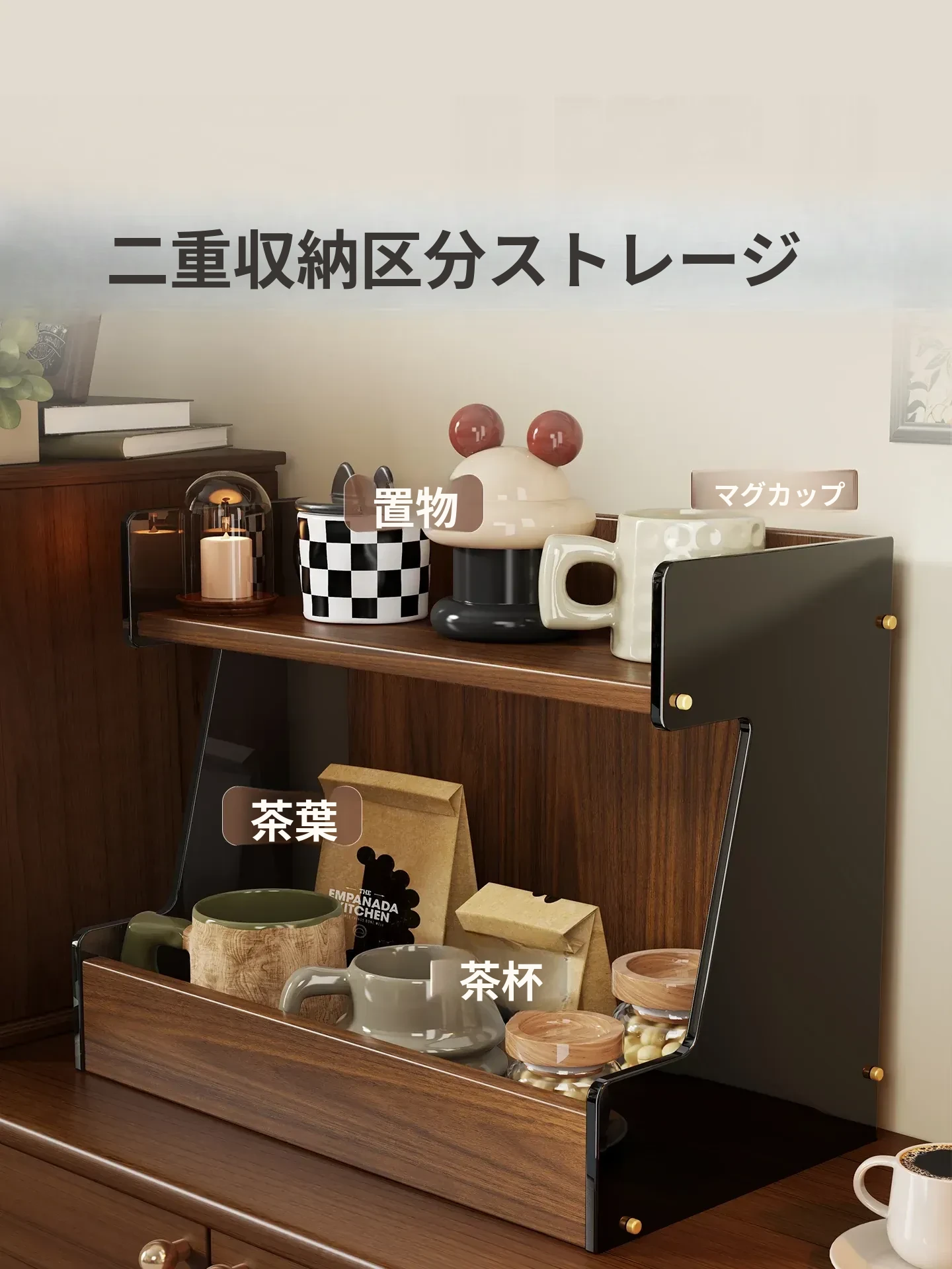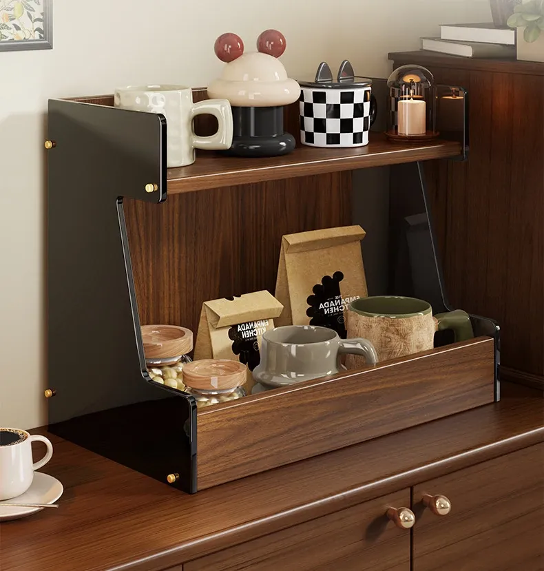 キッチンデスク整理ラック|多層収納でお菓子やティーバッグもスッキリ!テーブル上を美しく保つマルチ収納ボックス - 水杯や小物もおしゃれに整理整頓!
