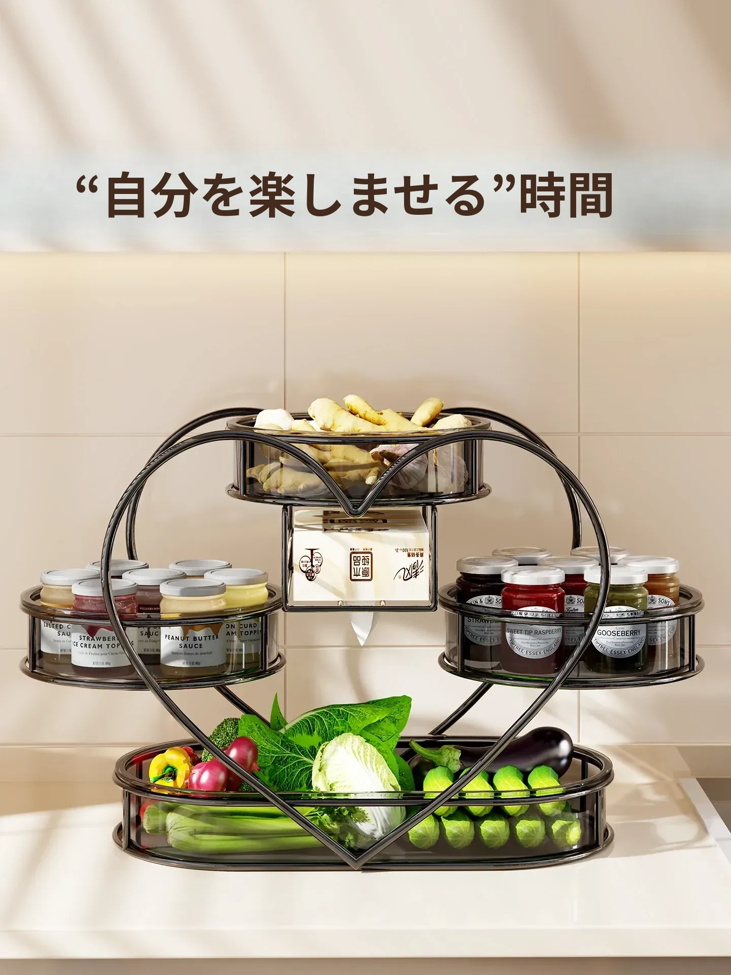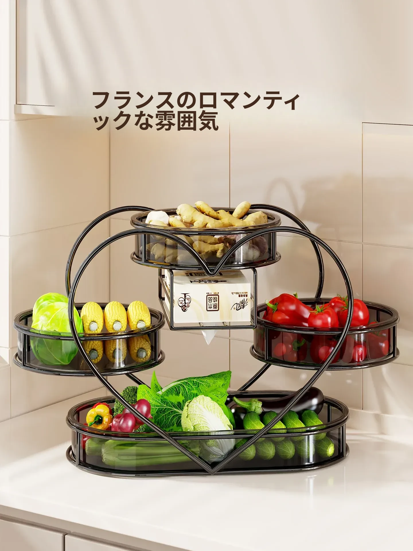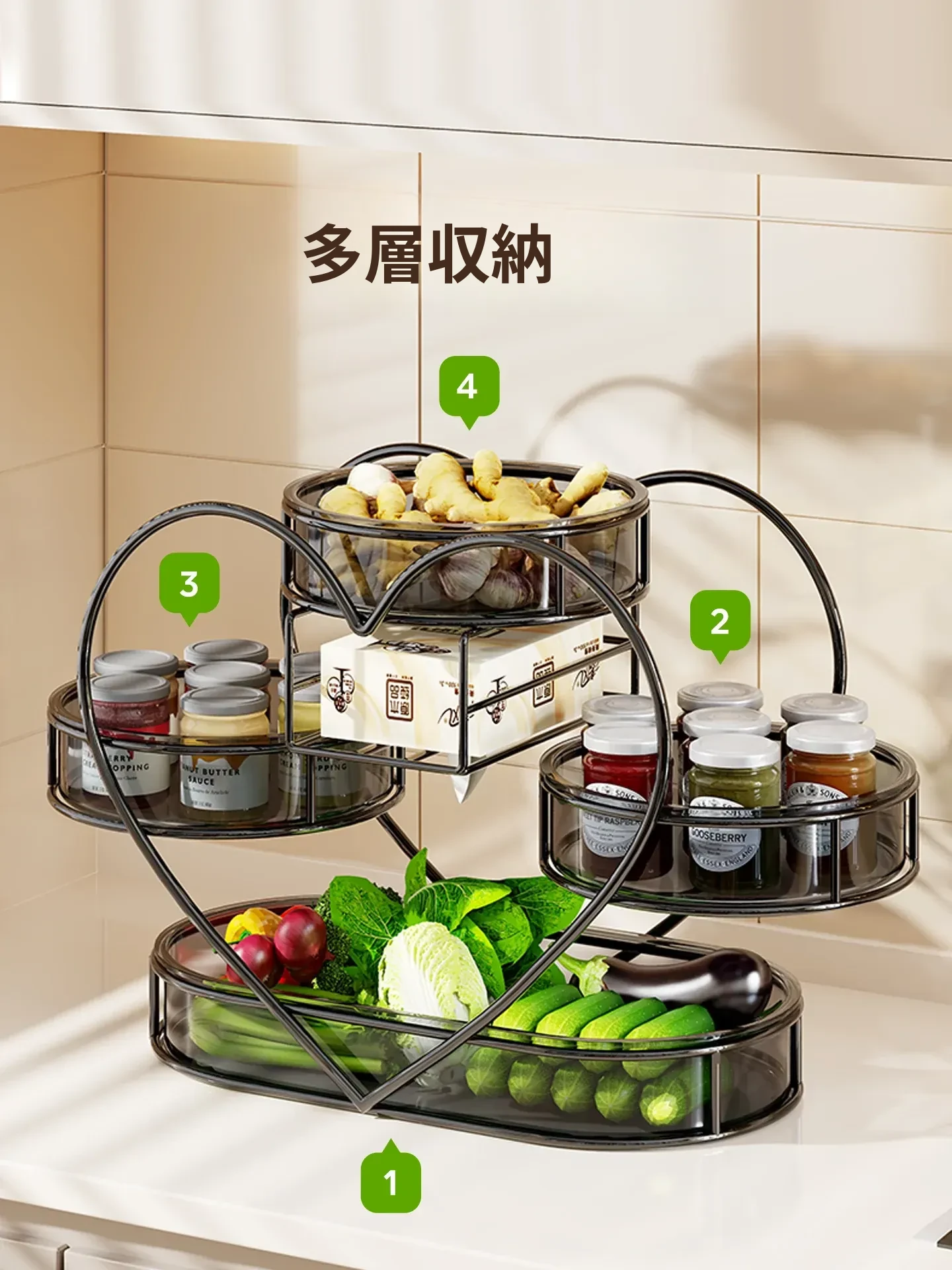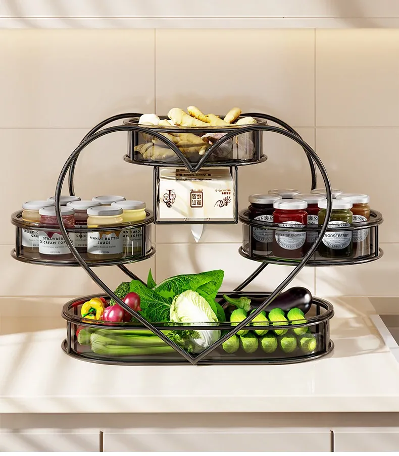 多機能キッチン収納ラック!葱、姜、蒜の整理に最適な多層テーブルで、果物や野菜、調味料もスッキリ収納。あなたのキッチンを美しく整える必須アイテム!