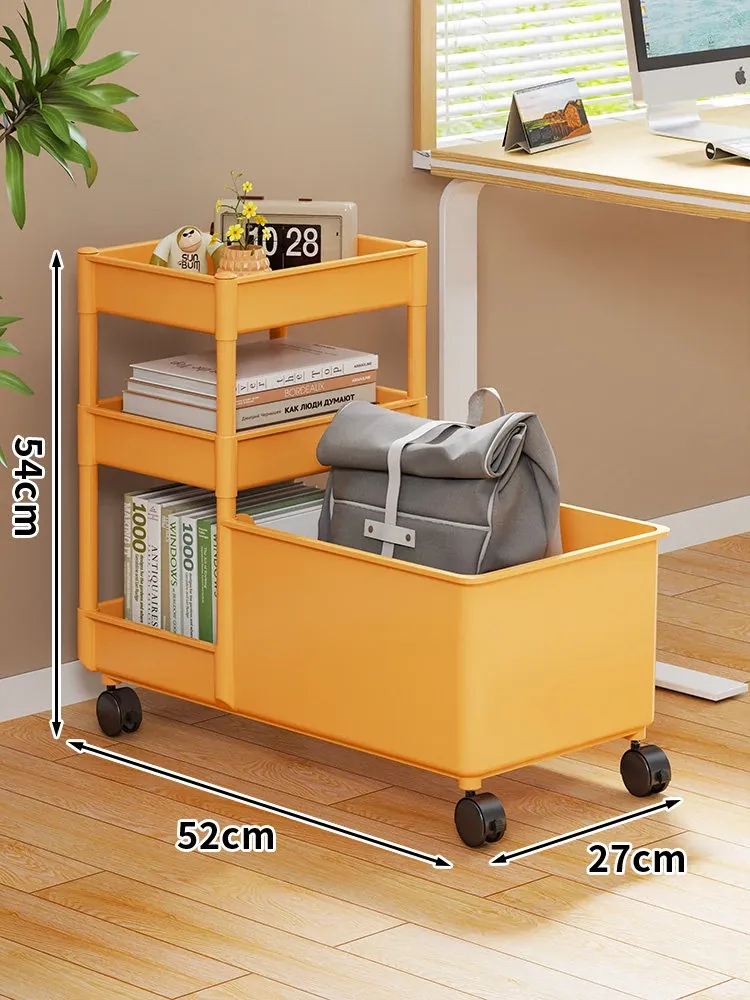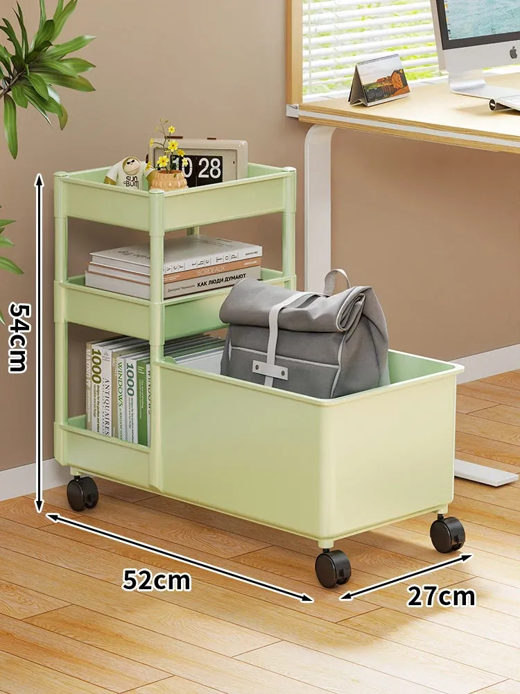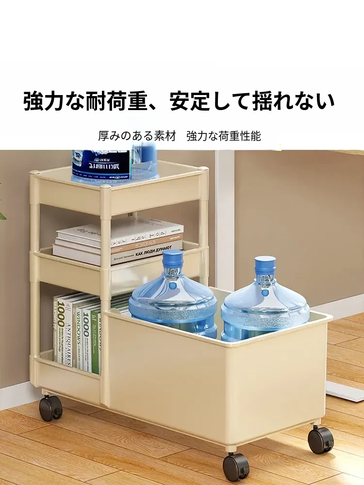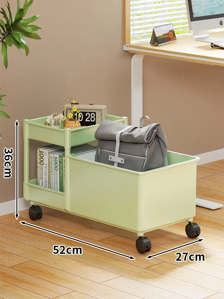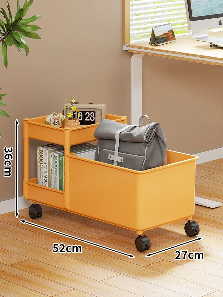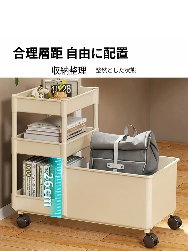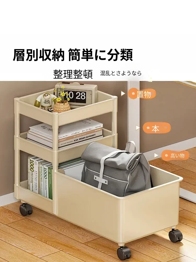 キャリーバッグ収納ラック - デスク下整理術でオフィスをスッキリ!キャスター付きの多段収納カートで、書類やバッグもすっきり収納。省スペースで効率的な作業環境を実現!