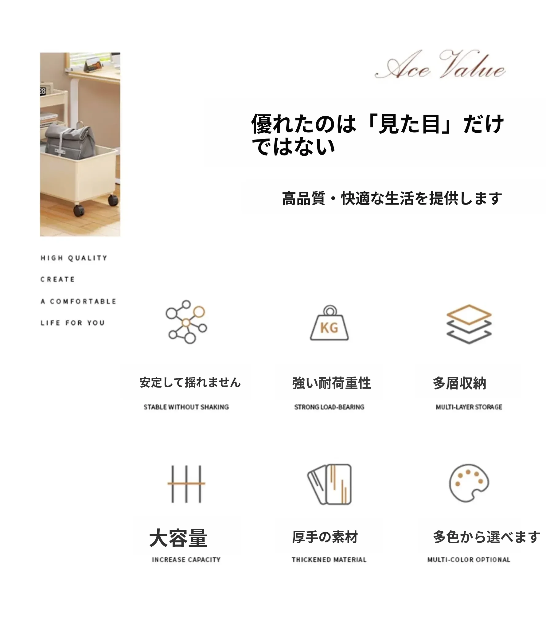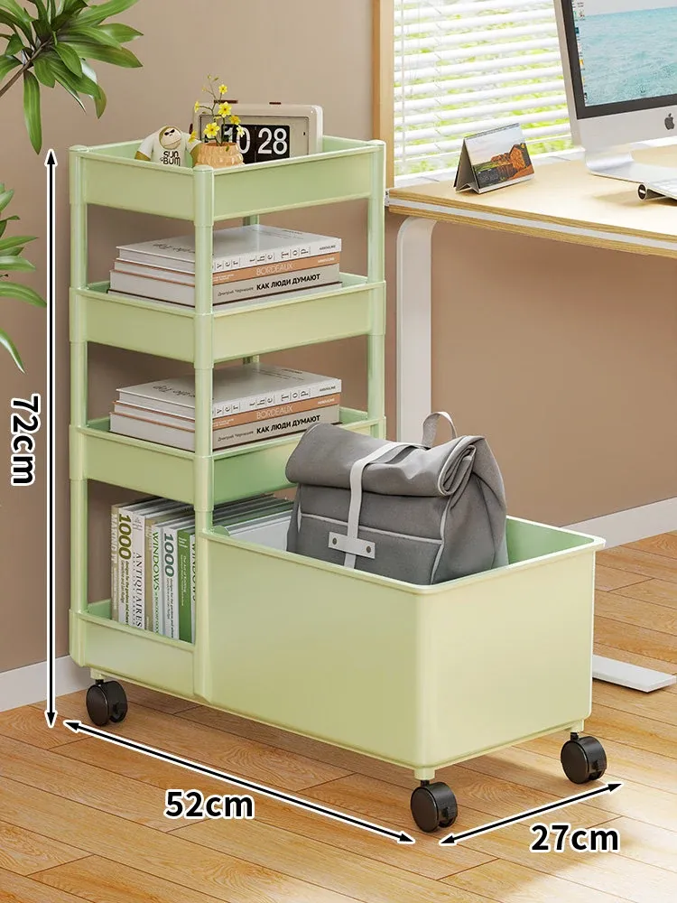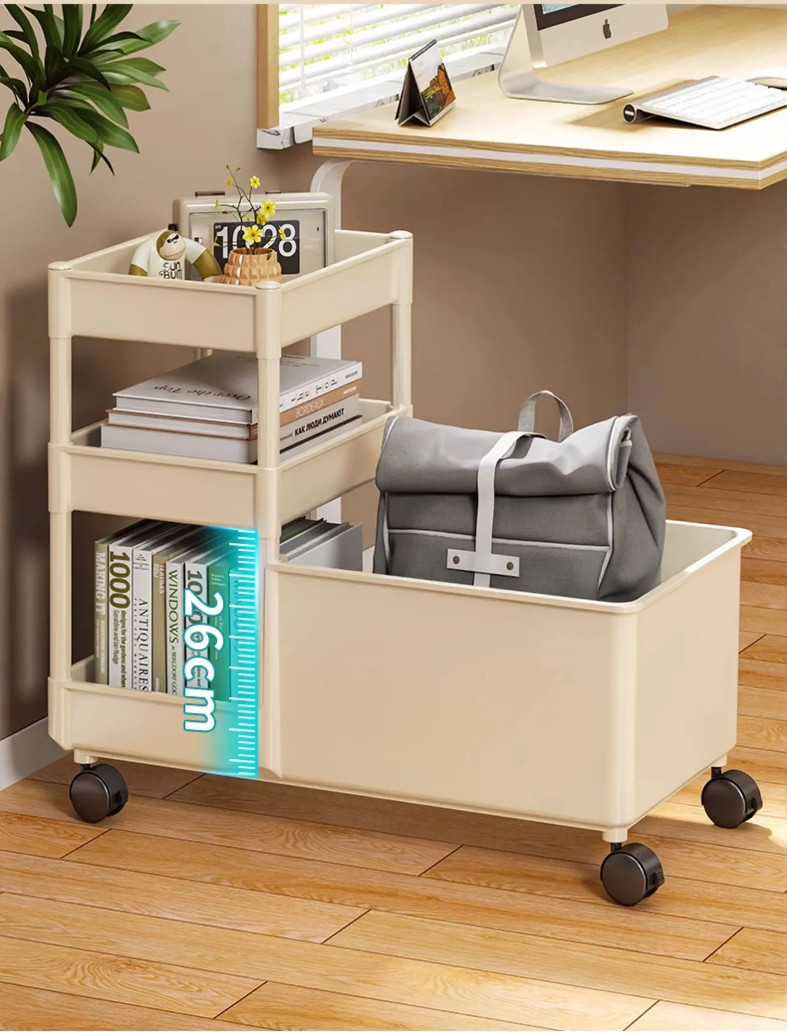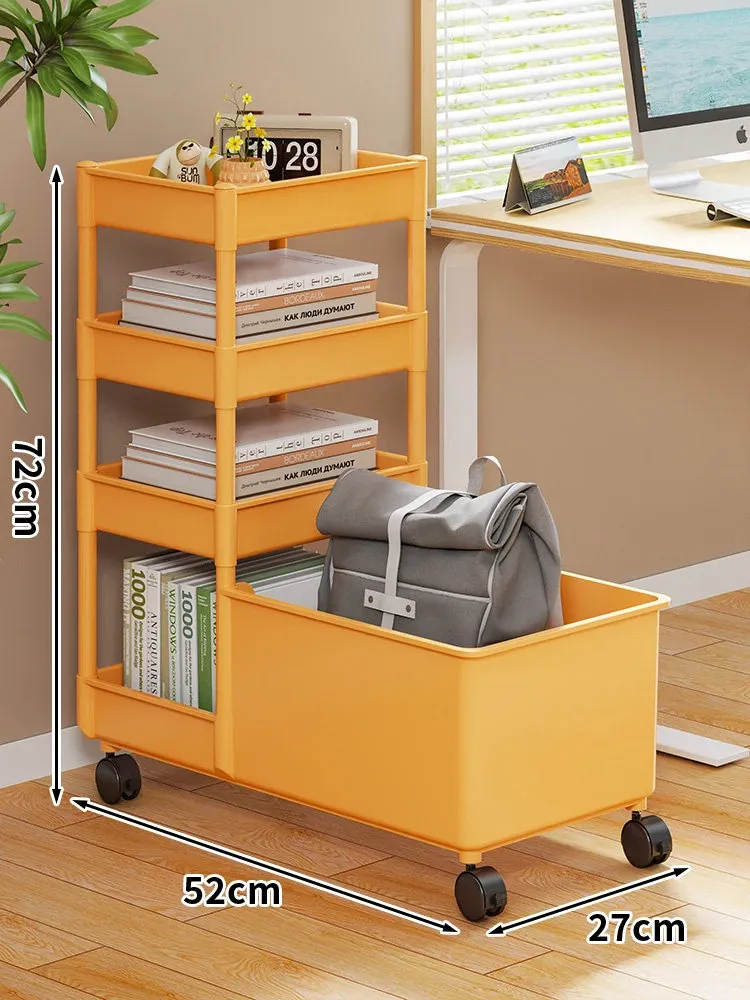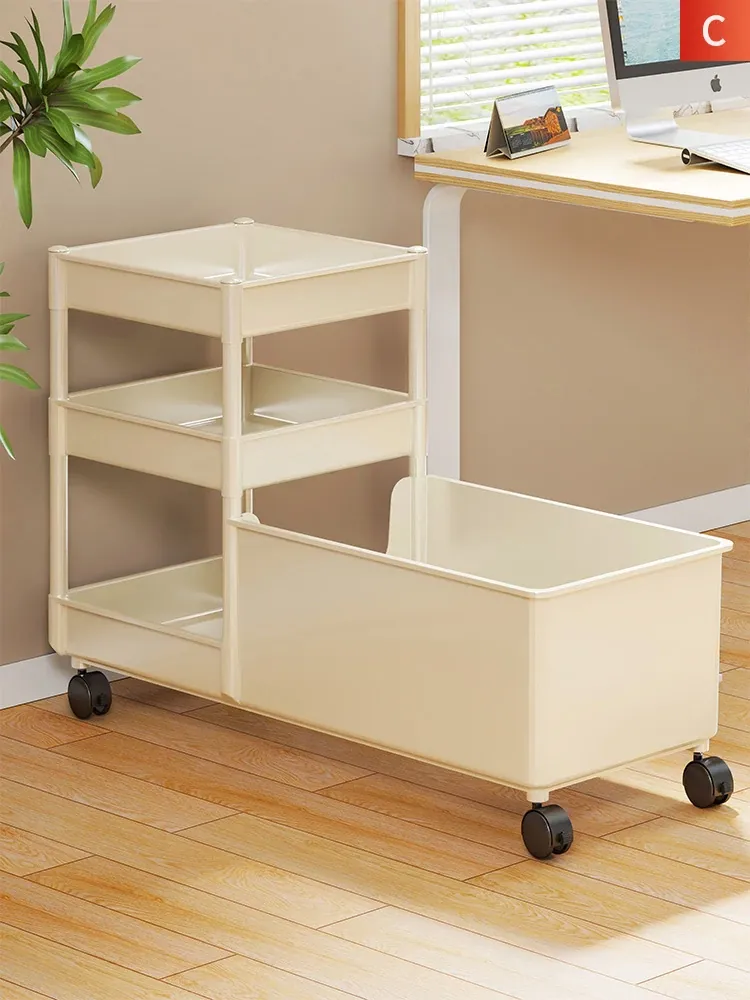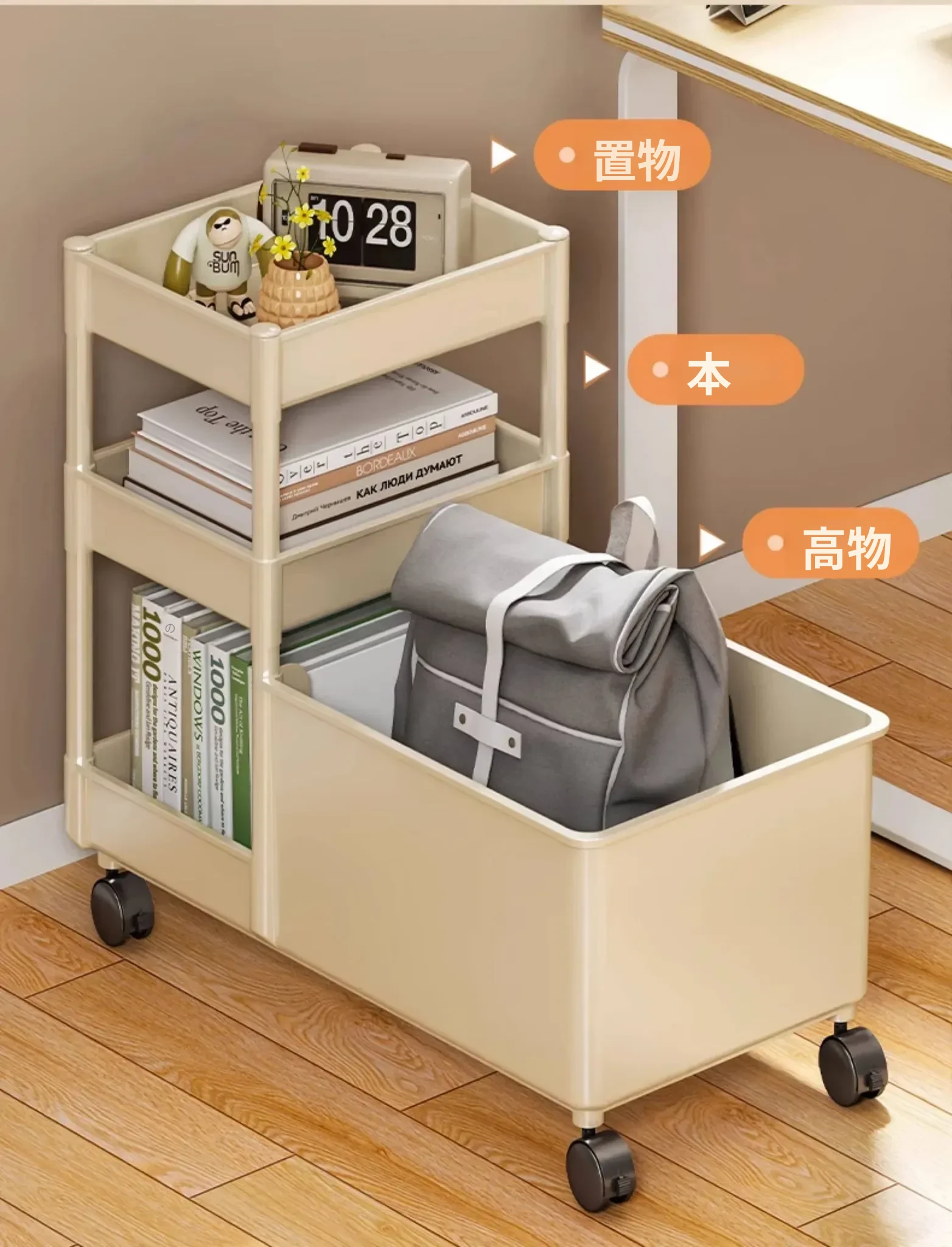 キャリーバッグ収納ラック - デスク下整理術でオフィスをスッキリ!キャスター付きの多段収納カートで、書類やバッグもすっきり収納。省スペースで効率的な作業環境を実現!