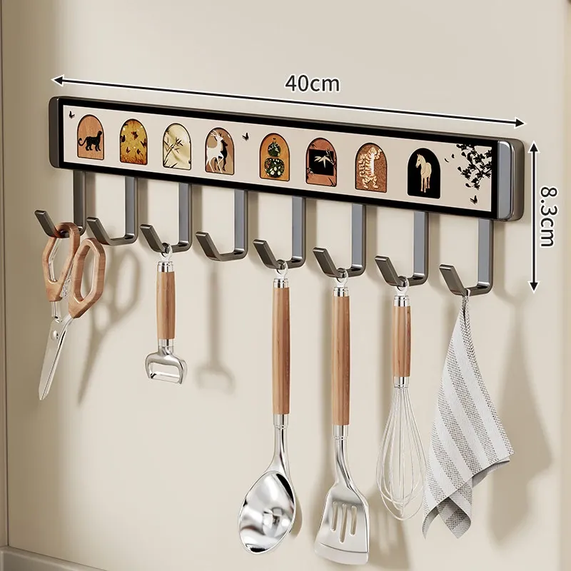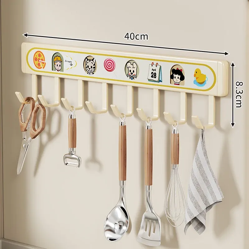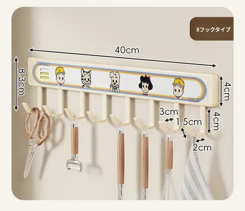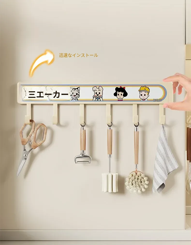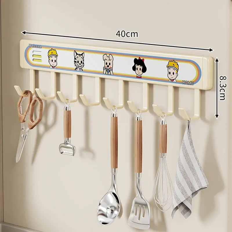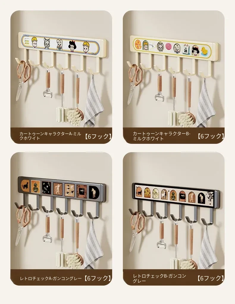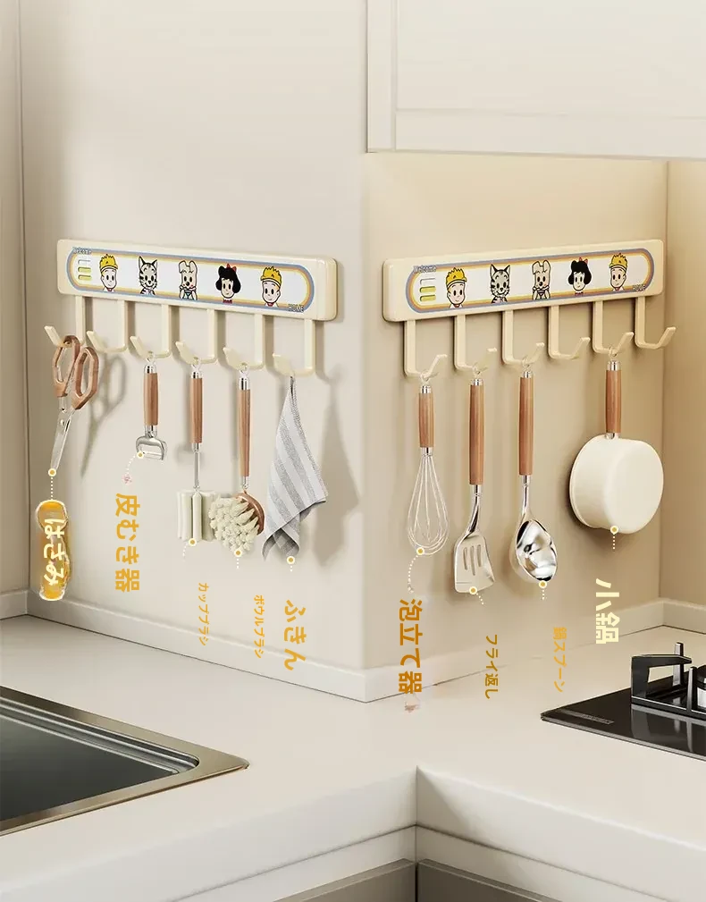 キッチン用フックラック - 壁に取り付けるだけで簡単収納!穴を開けずに使える便利な調理器具用フック、鍋やへら、スプーンなど多機能で整理整頓をサポートします。あなたのキッチンを美しく保つ必需品!