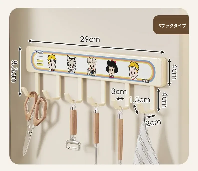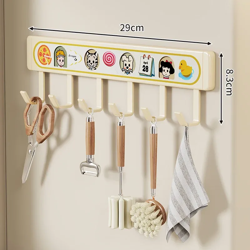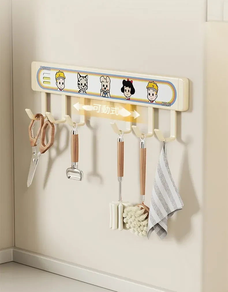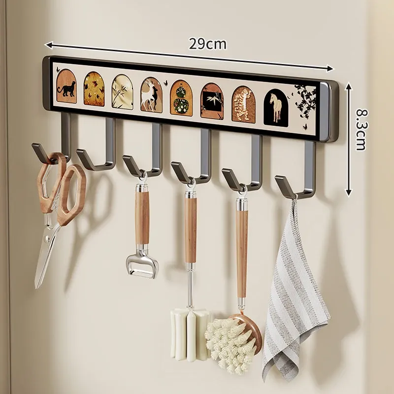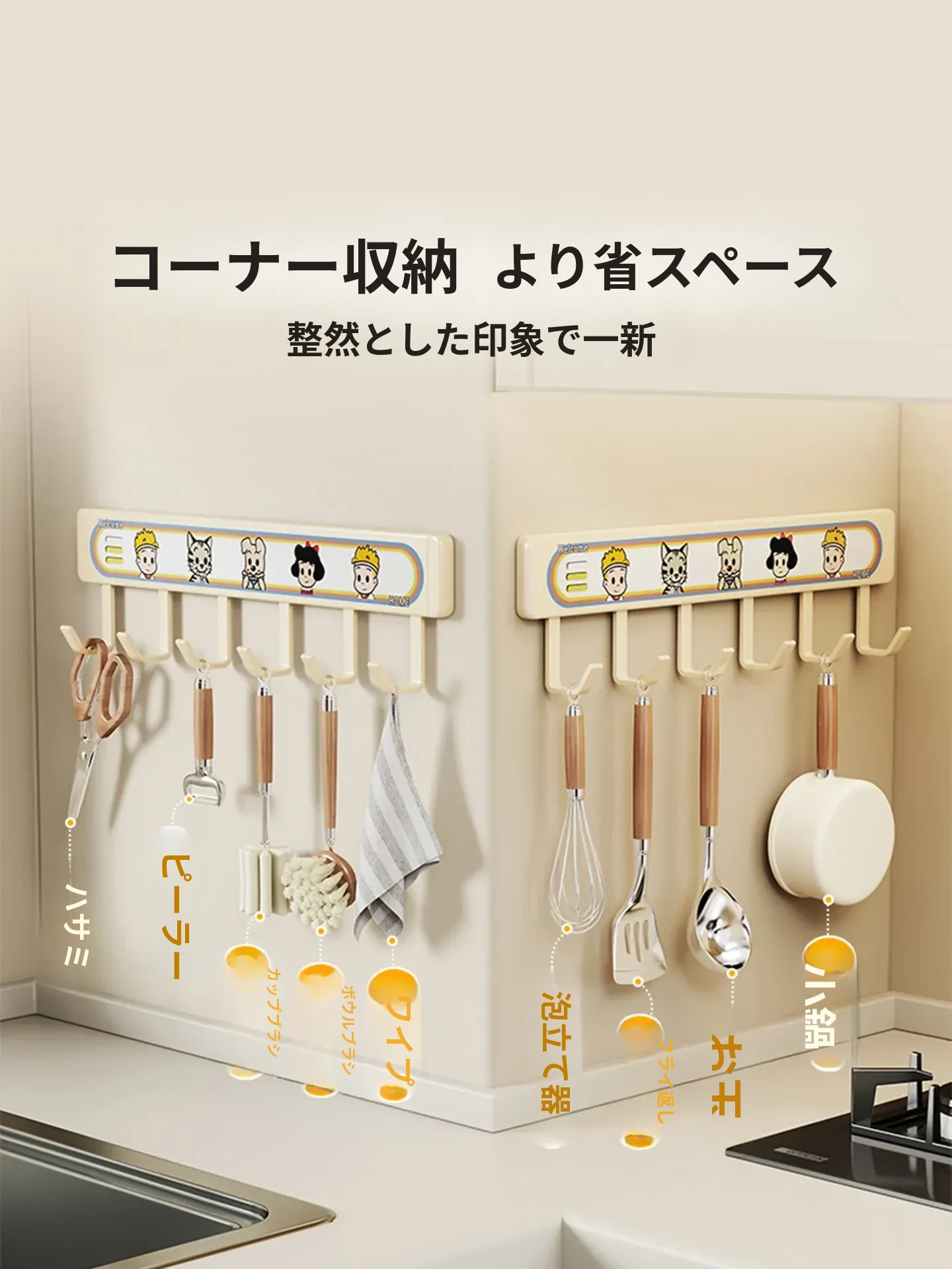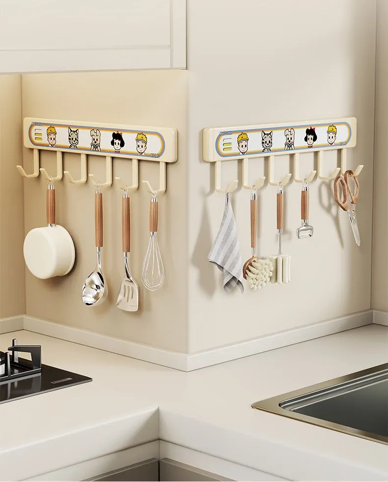 キッチン用フックラック - 壁に取り付けるだけで簡単収納!穴を開けずに使える便利な調理器具用フック、鍋やへら、スプーンなど多機能で整理整頓をサポートします。あなたのキッチンを美しく保つ必需品!