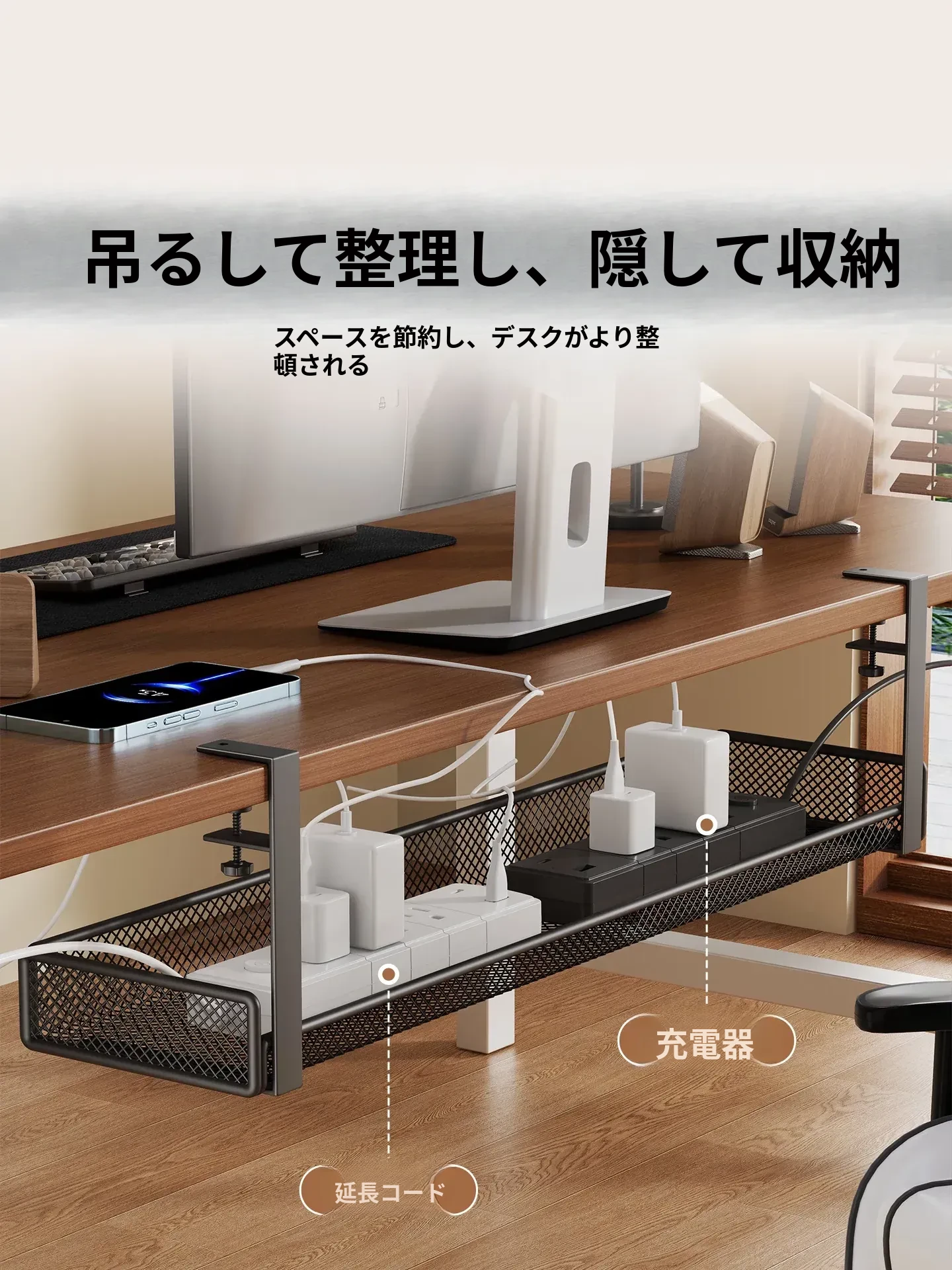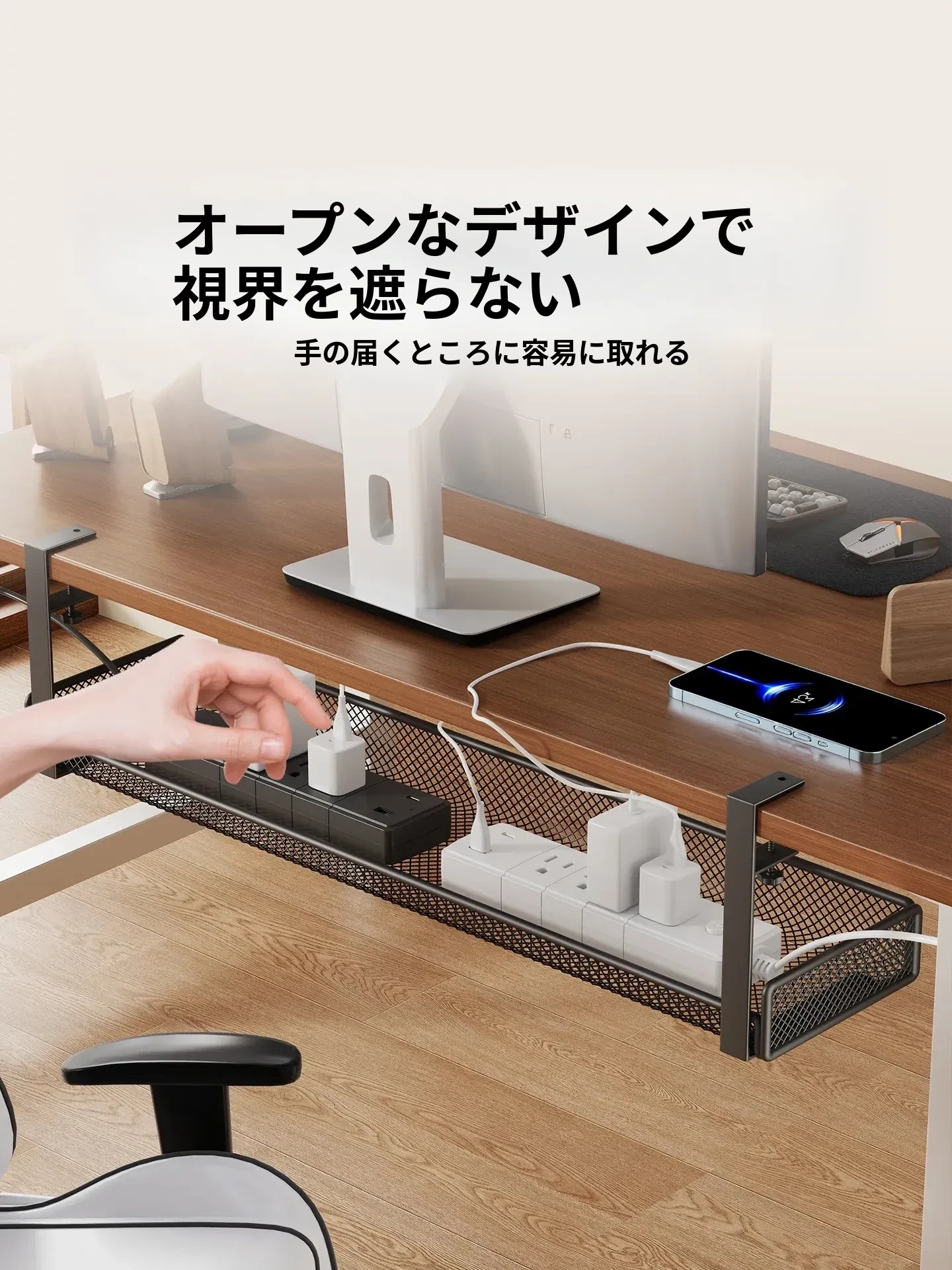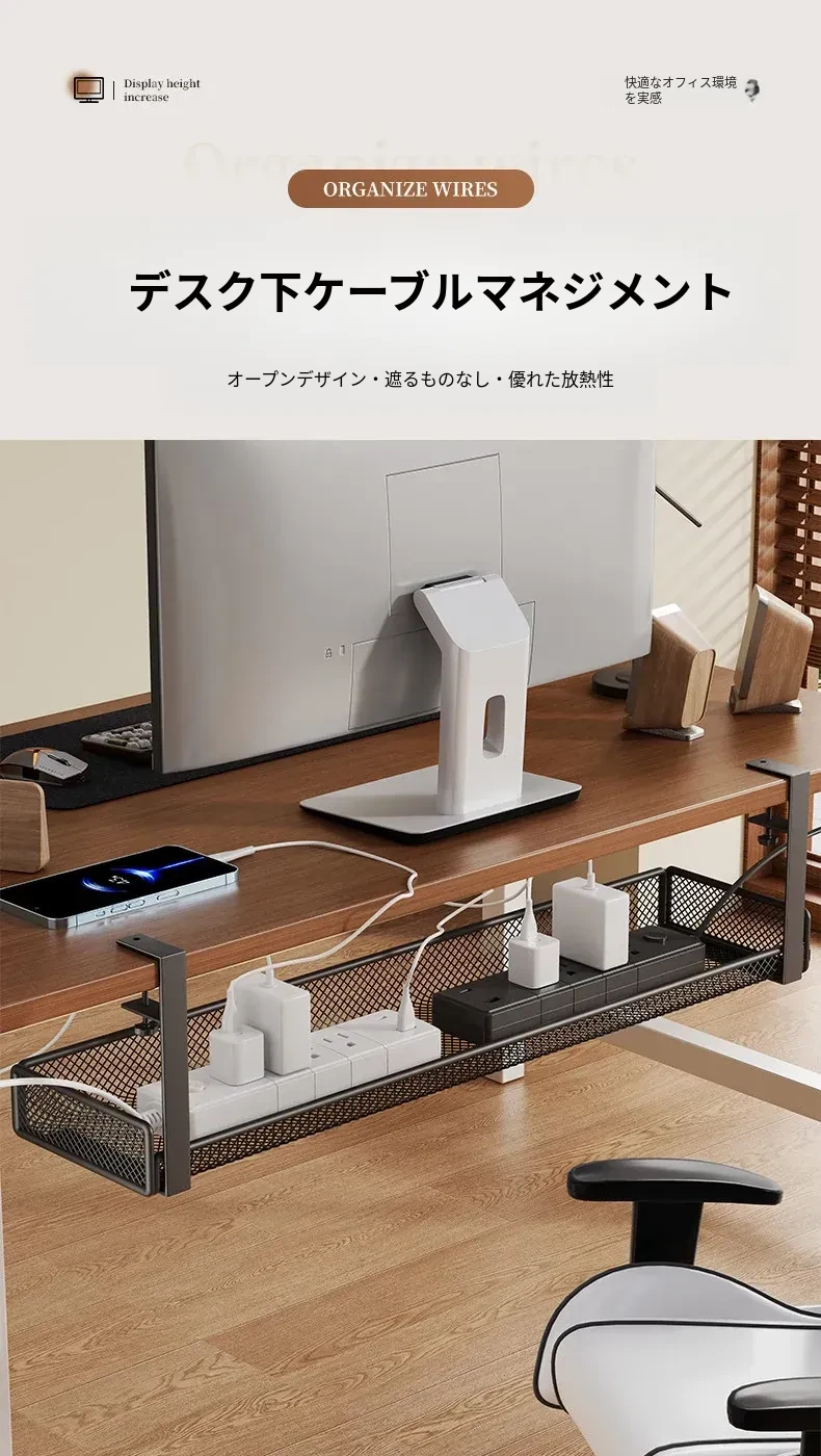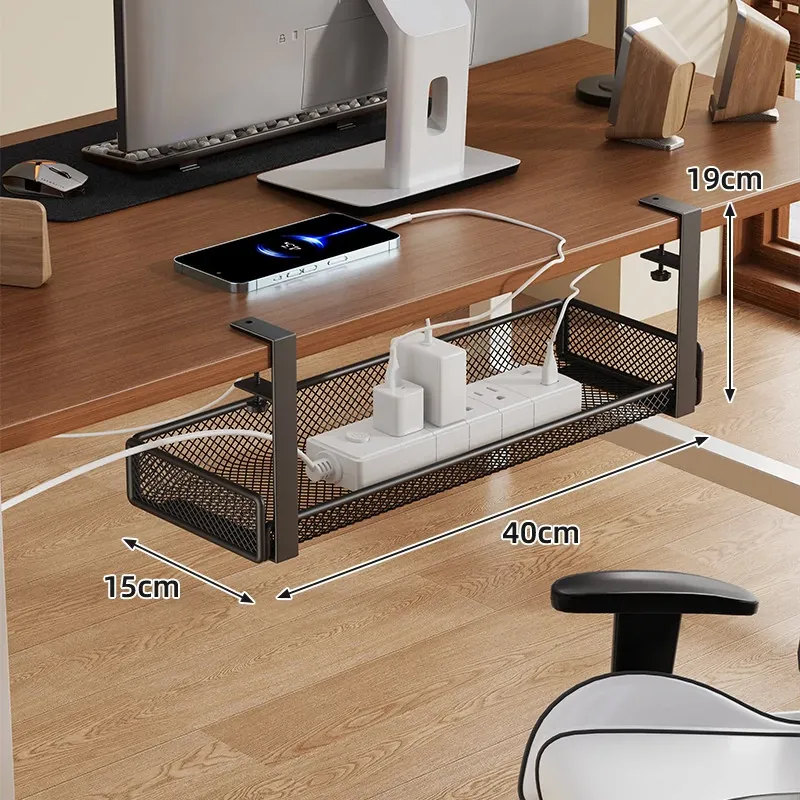 穴のない簡単取り付け!シンプルなデザインの多孔電源コード整理ボックス。家庭用パソコンデスクの下でスッキリ配線できる、見た目も美しいケーブルオーガナイザー!