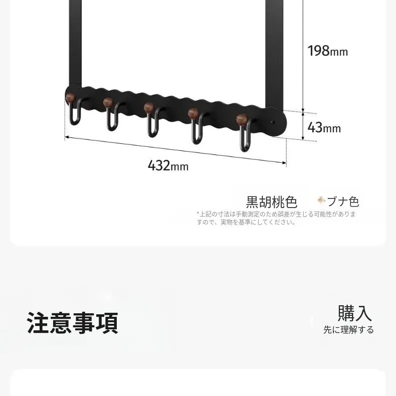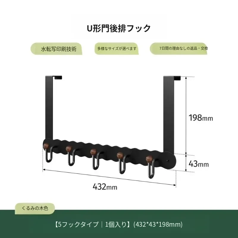 ウォールナット色U字型ドアフック【5フック】