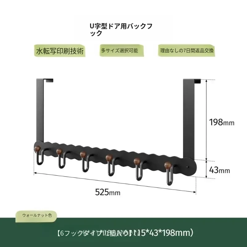 ウォールナット色U字型ドアフック【6フック】