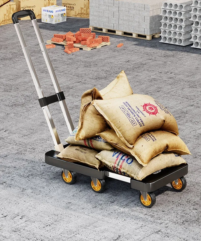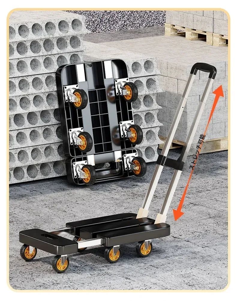 折りたたみ式軽量キャリーカート - 家庭用・便利な6輪手引き車、配送や荷物運搬に最適!使いやすさと収納力を兼ね備えた、あなたの頼れるパートナーです。