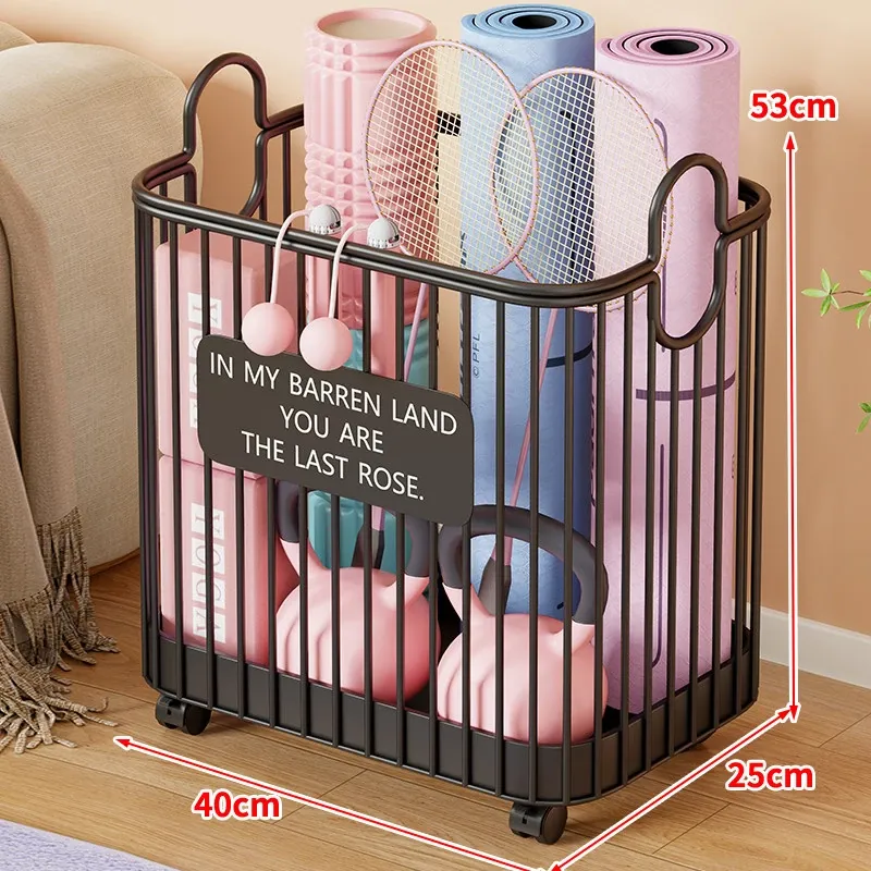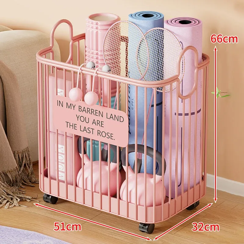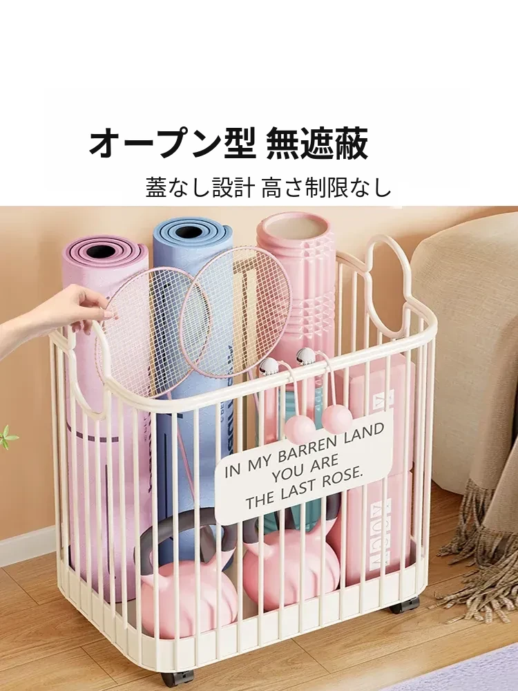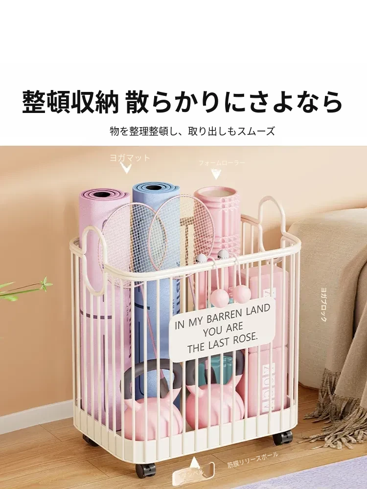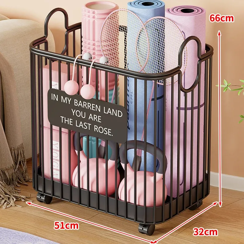 ヨガマット収納バスケット - 車輪付きで移動ラクラク!家庭用スポーツツール収納ラック、フィットネス器具の整理に最適な便利アイテム!
