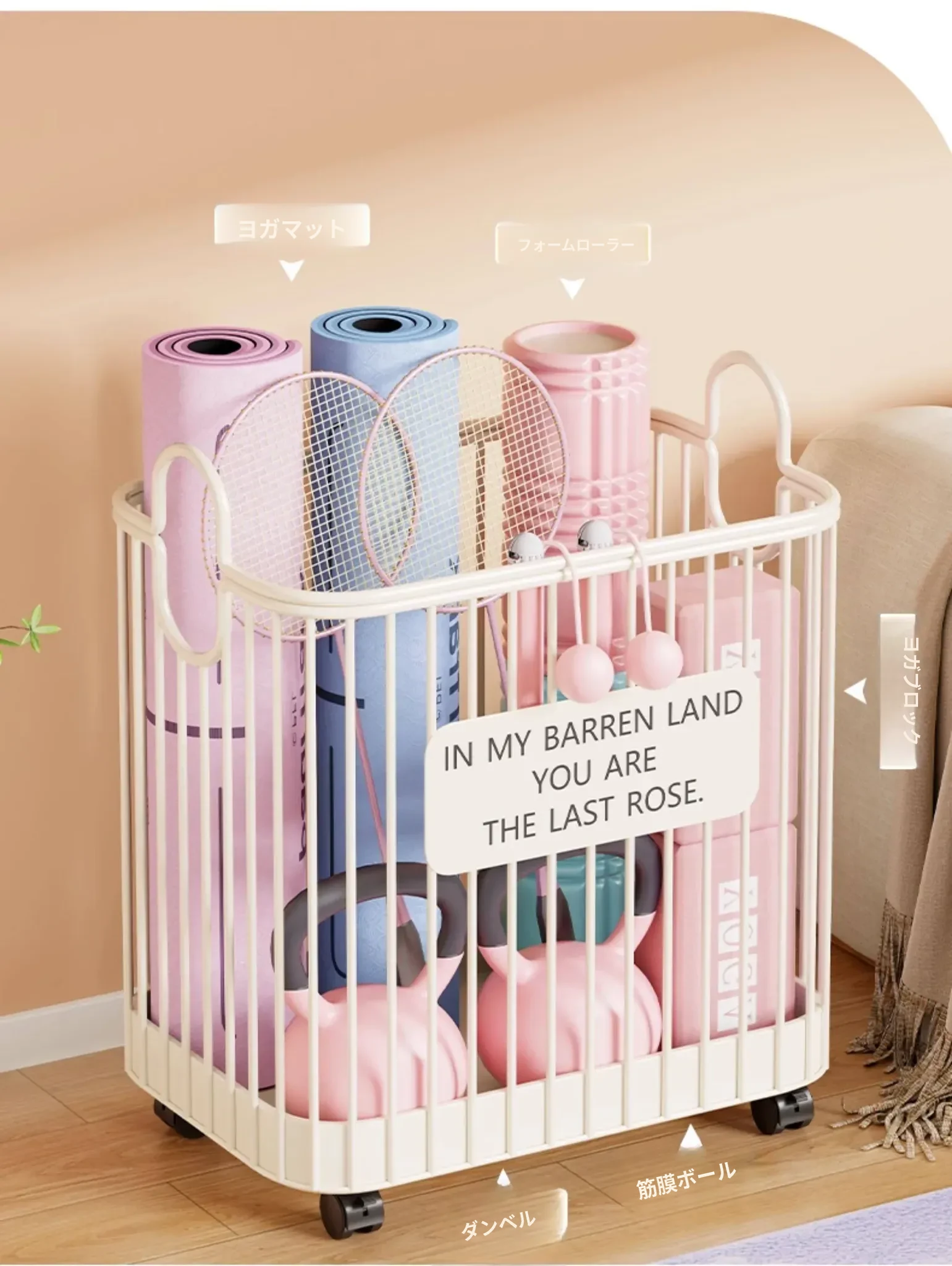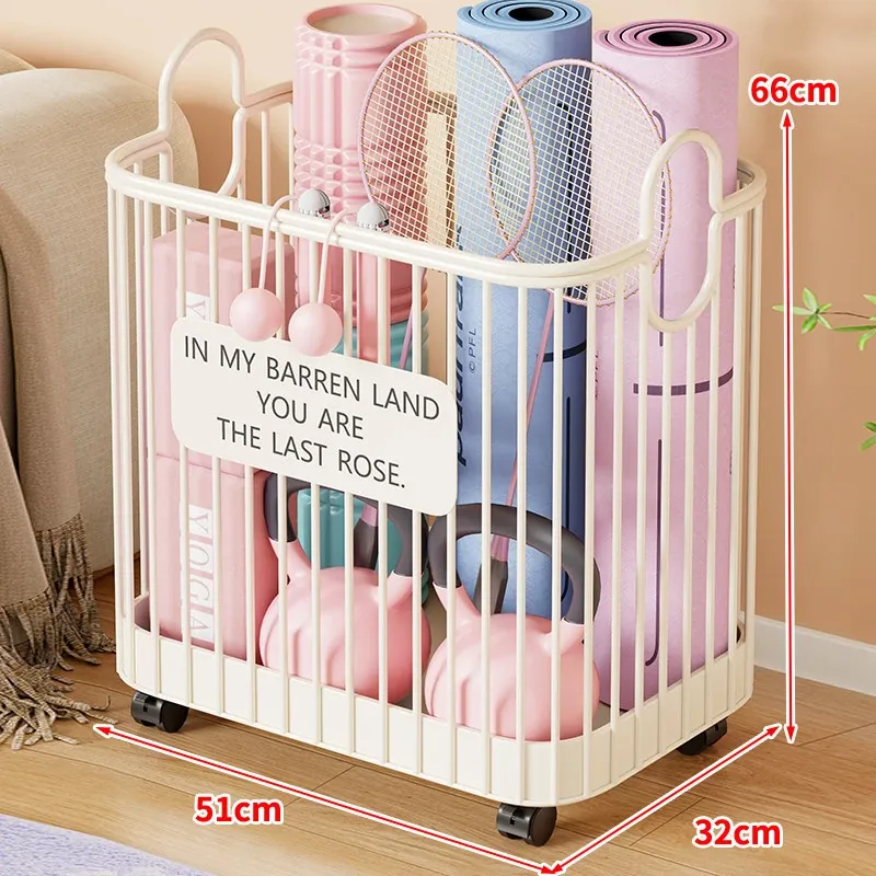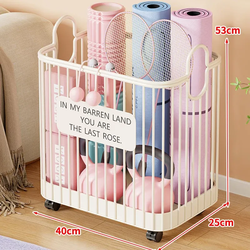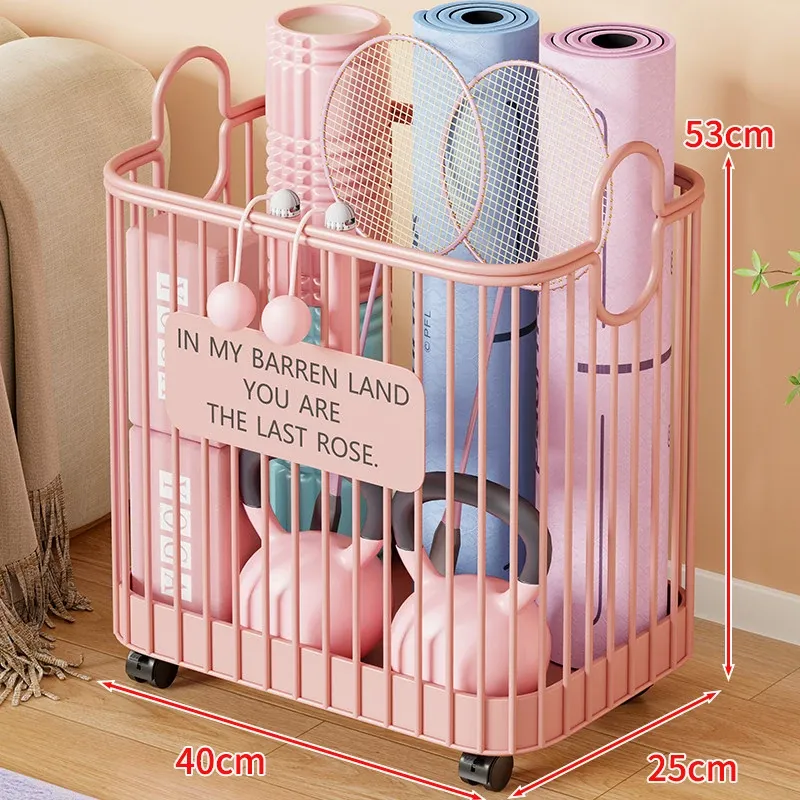 ヨガマット収納バスケット - 車輪付きで移動ラクラク!家庭用スポーツツール収納ラック、フィットネス器具の整理に最適な便利アイテム!