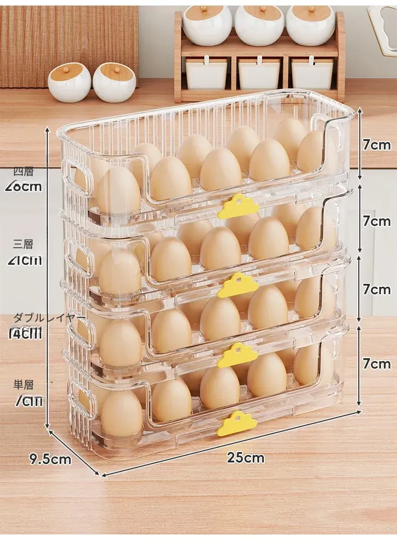 冷蔵庫用サイドドア卵収納ボックス - 食品グレードの鮮度保持、家庭用整理収納に最適な卵ケース!おしゃれで便利な収納アイテムで、いつでも新鮮な卵を手元に!