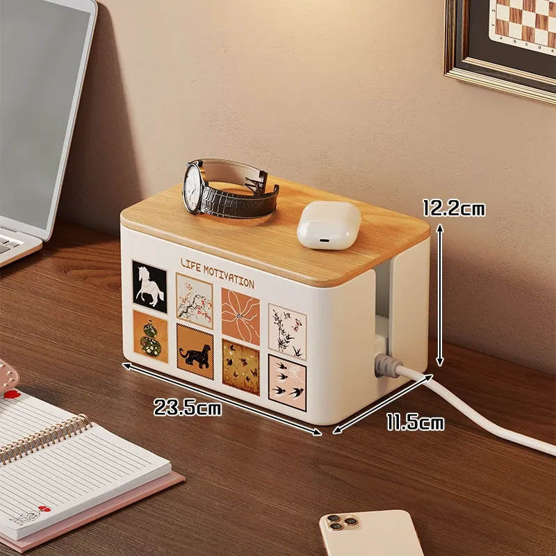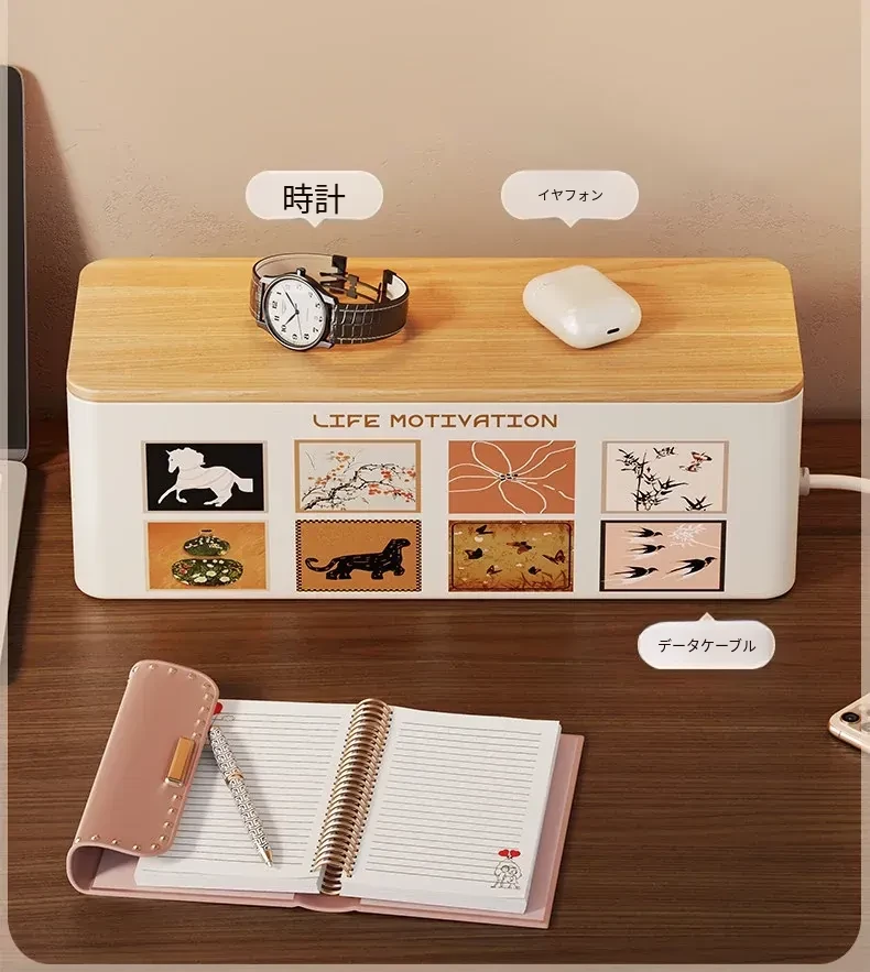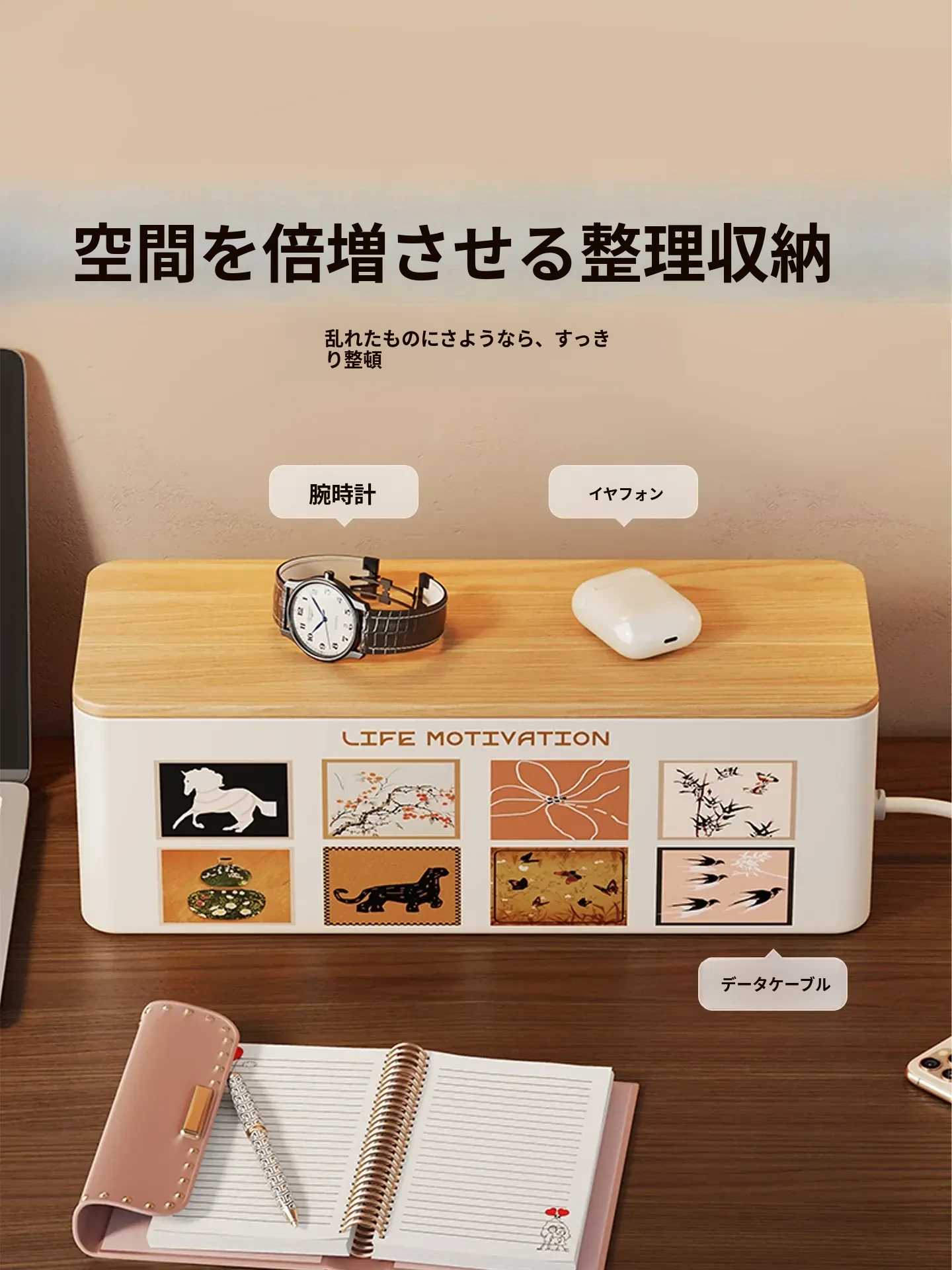 スマホデータケーブル収納ボックス - 充電器と電源コードの整理に最適!デスク周りをスッキリ整頓できる便利アイテム!家族みんなが使いやすい整理整頓の必需品!