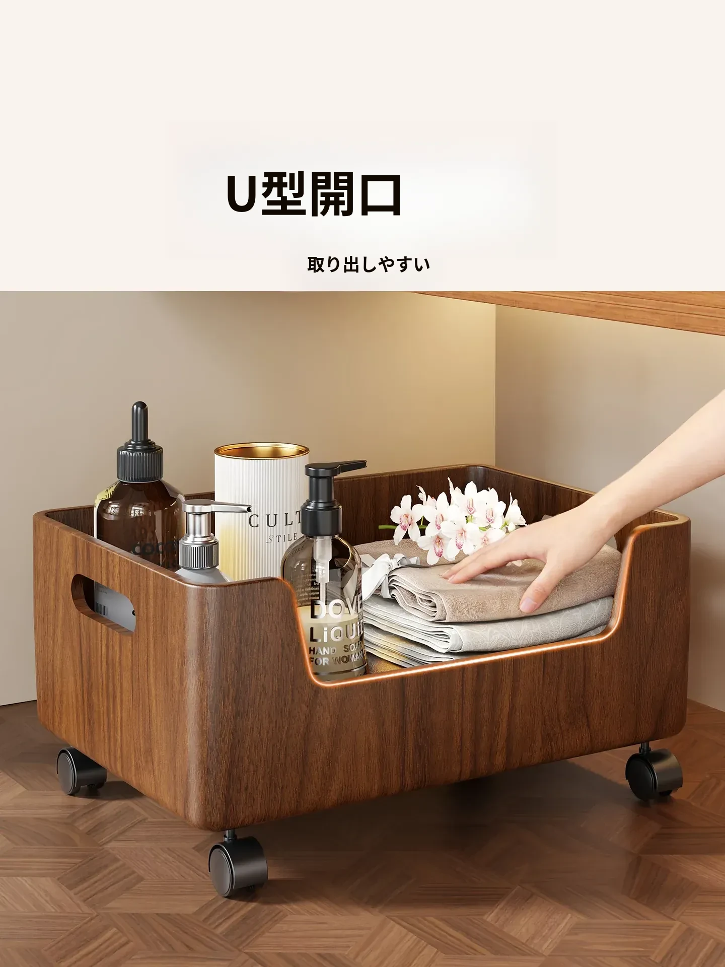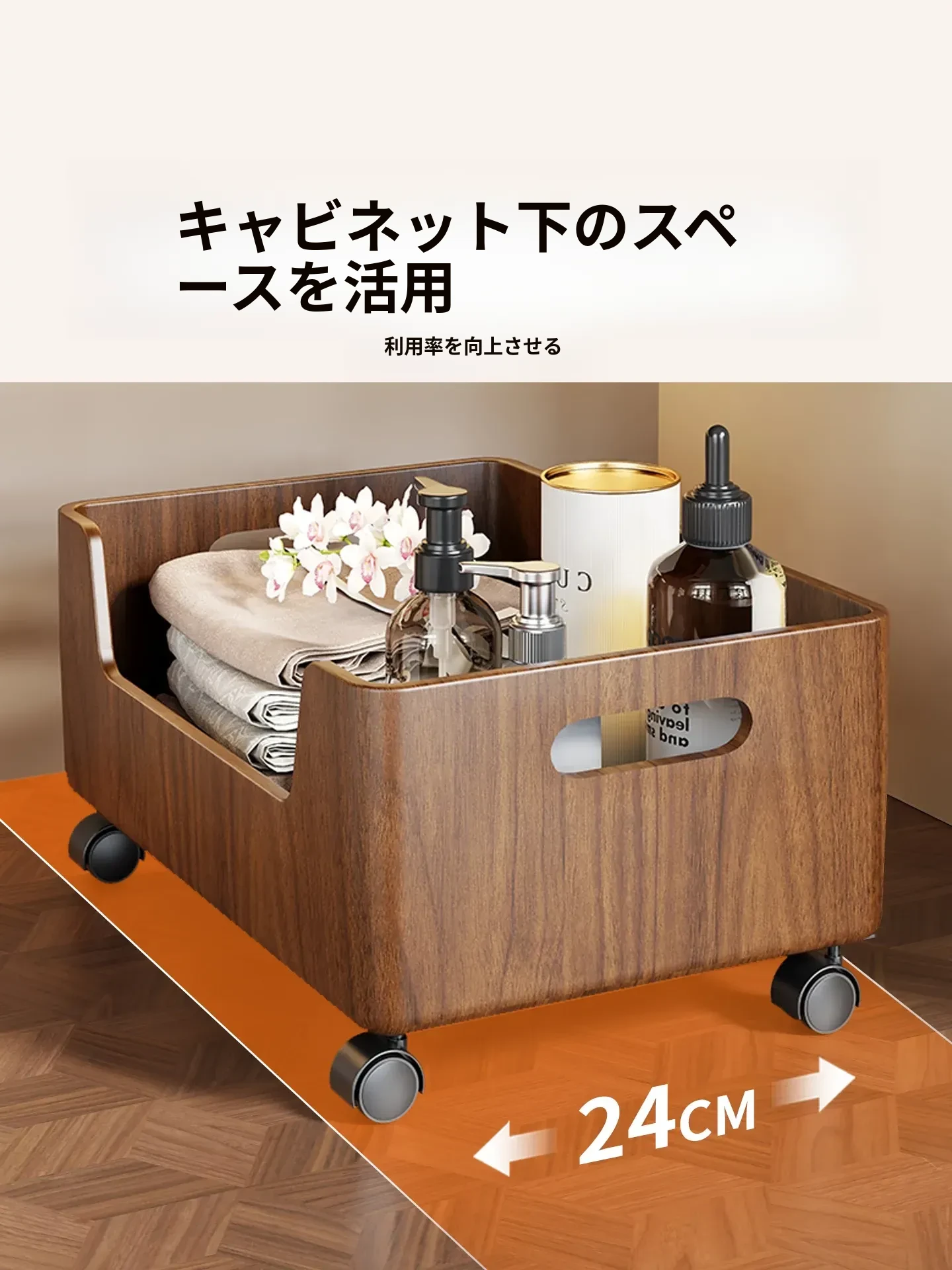 天然木材製のバスルームキャビネット下収納ラック - 洗面所やトイレに最適!洗剤や小物をすっきり整理できる多機能デザイン。洗濯機の横にぴったりフィット!あなたの生活空間を美しく整えます。