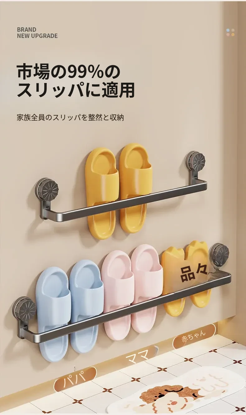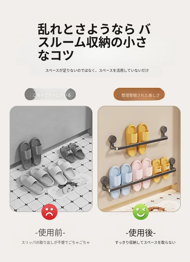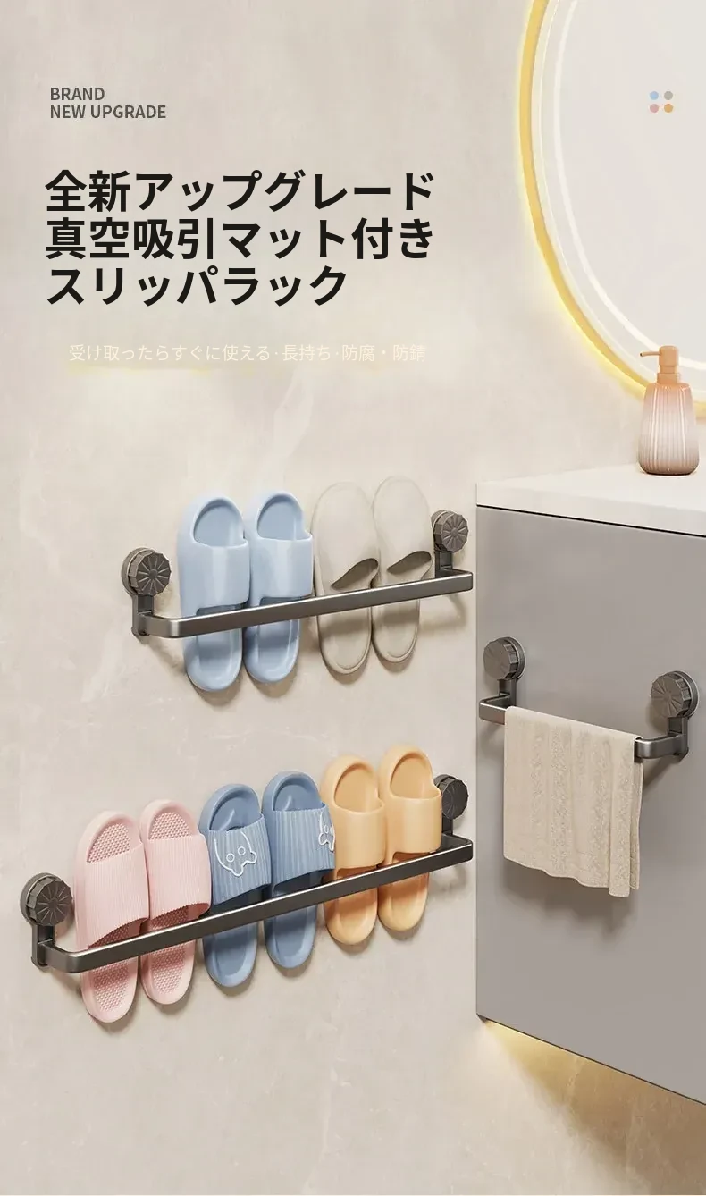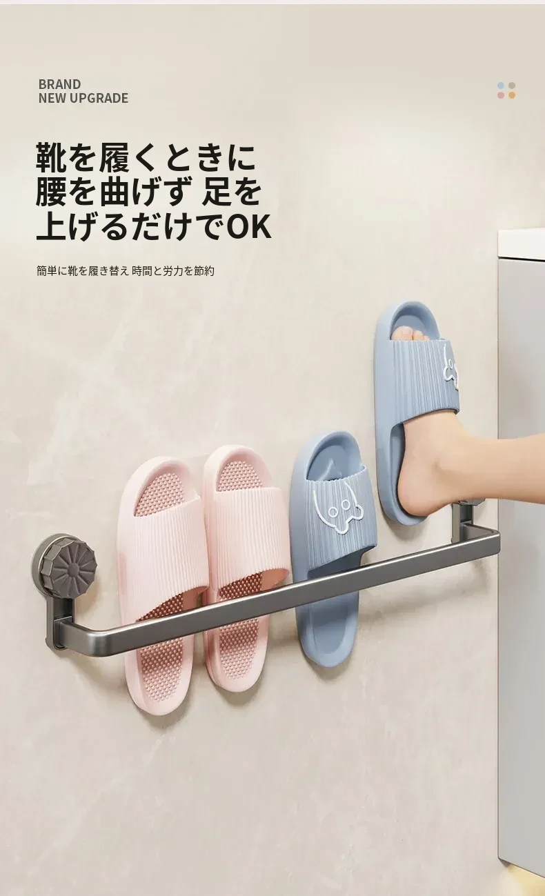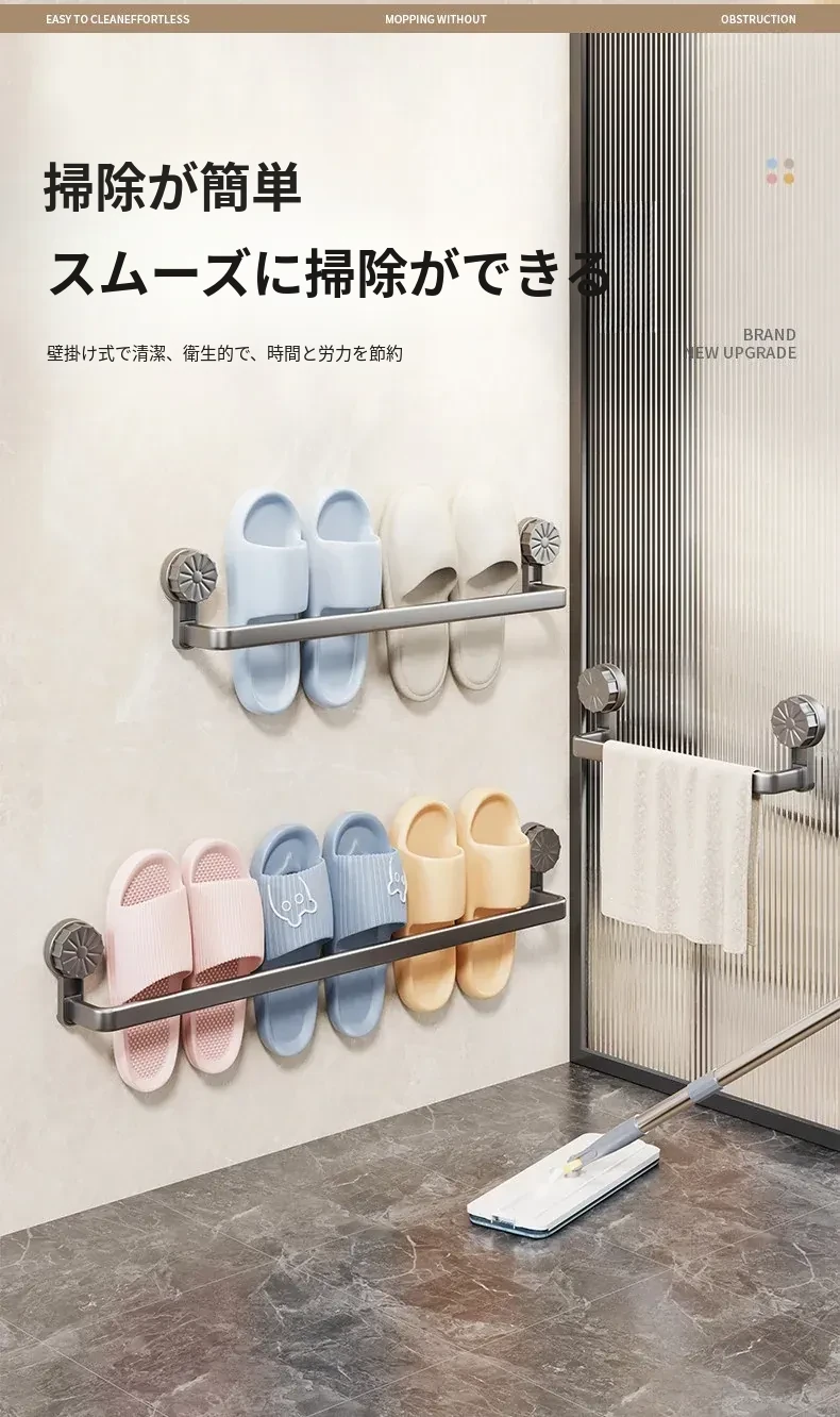 吸盤式スリッパラック - 穴あけ不要で簡単取り付け!バスルームやトイレに最適な壁掛け収納、靴も水切りもこれ一つで解決する便利アイテム!