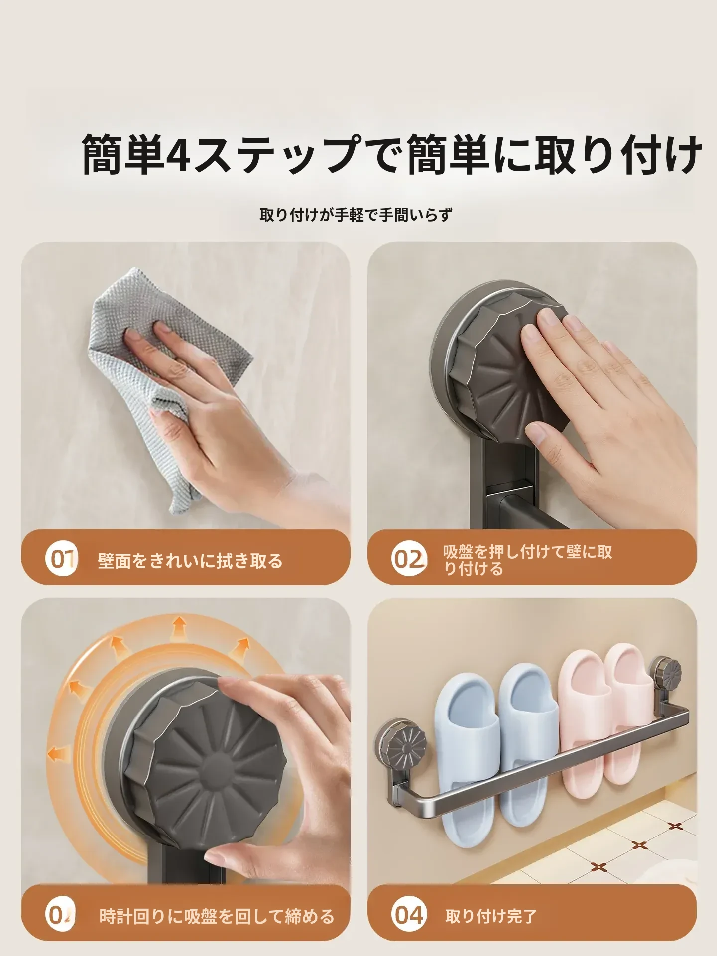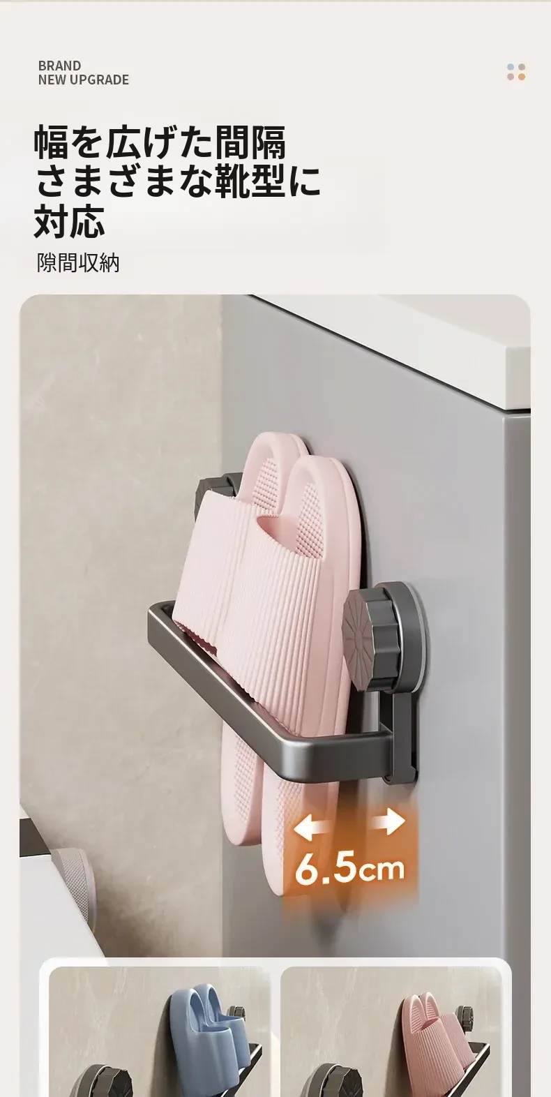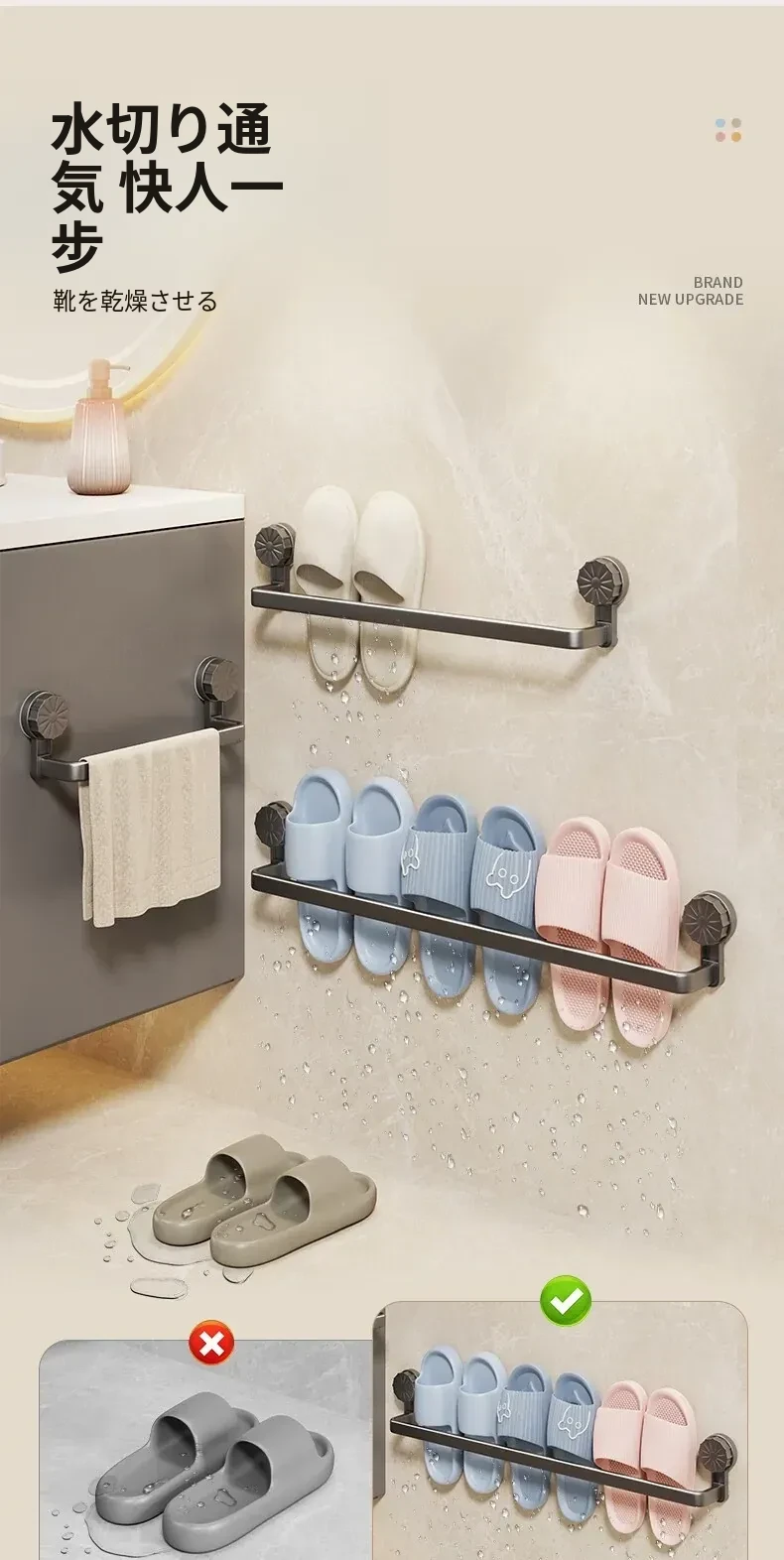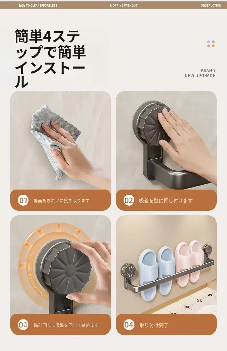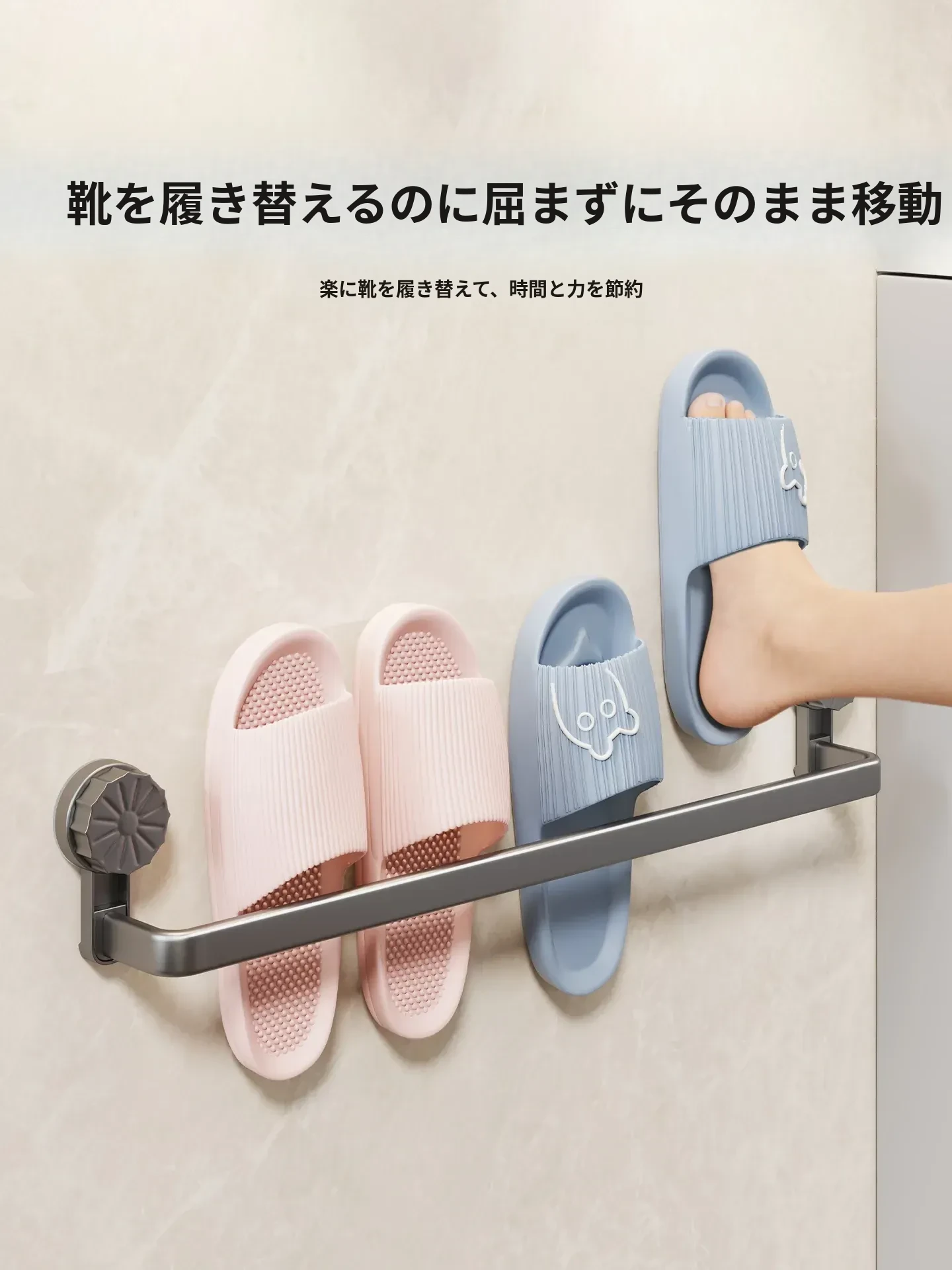 吸盤式スリッパラック - 穴あけ不要で簡単取り付け!バスルームやトイレに最適な壁掛け収納、靴も水切りもこれ一つで解決する便利アイテム!