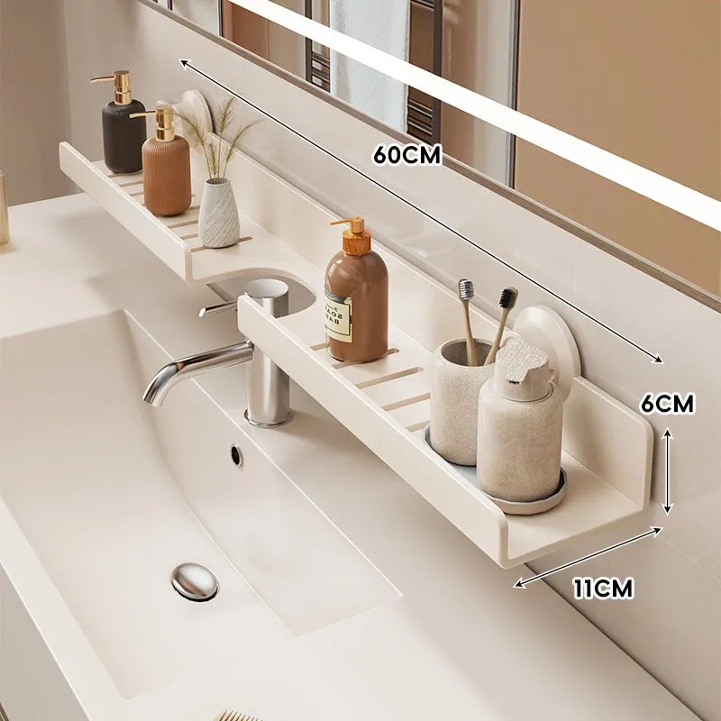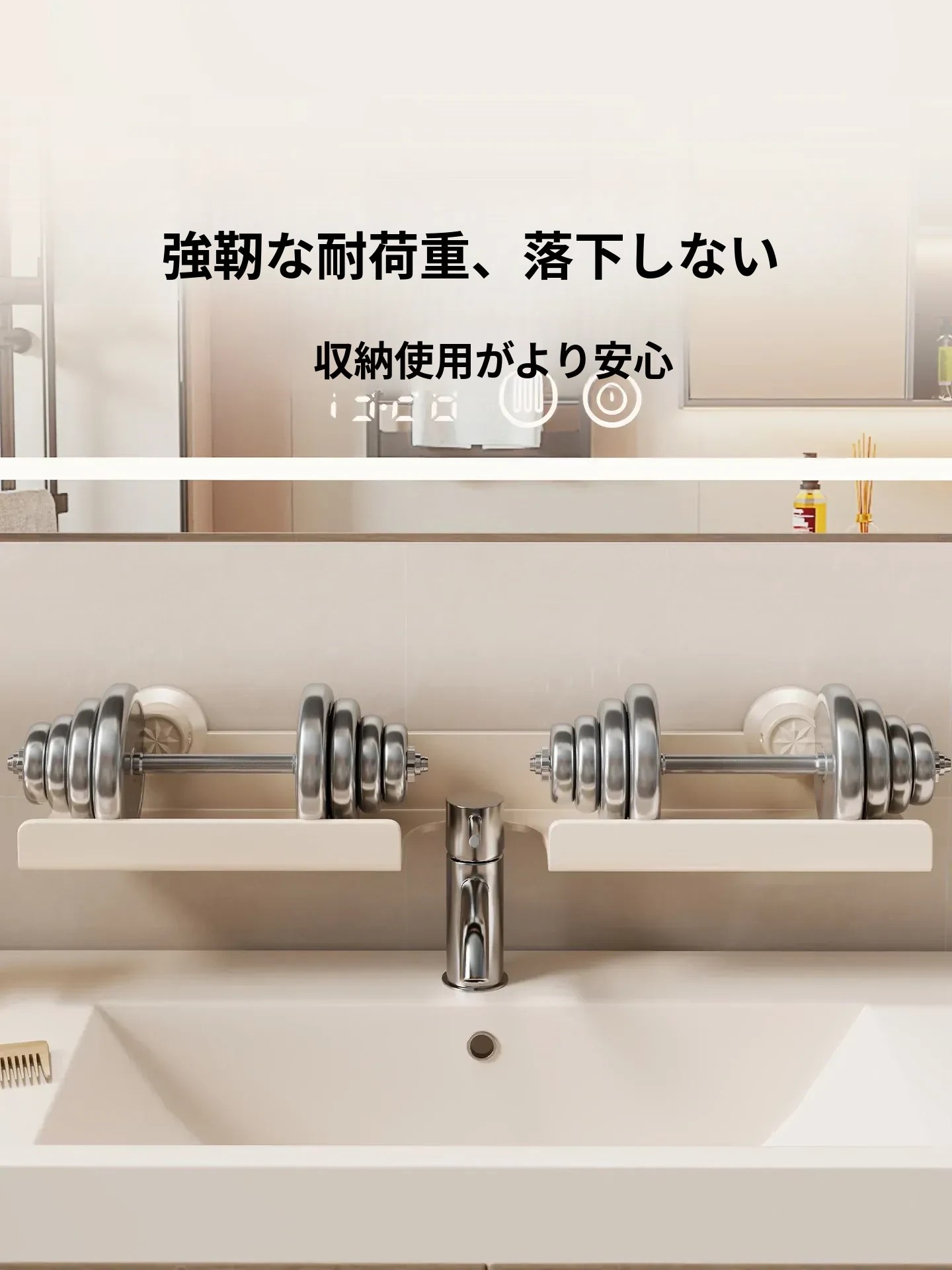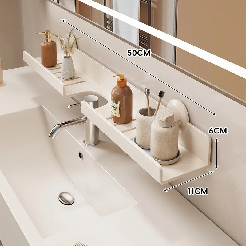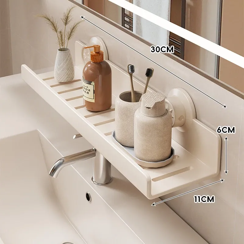 吸盤式収納ラック|トイレ・バスルームに最適!穴あけ不要で簡単取り付け|洗面台や水栓周りをスッキリ整理!収納力抜群の便利アイテム!