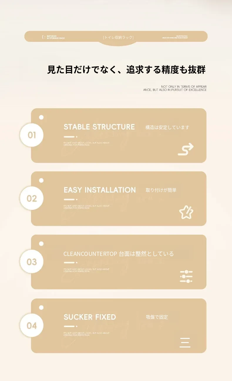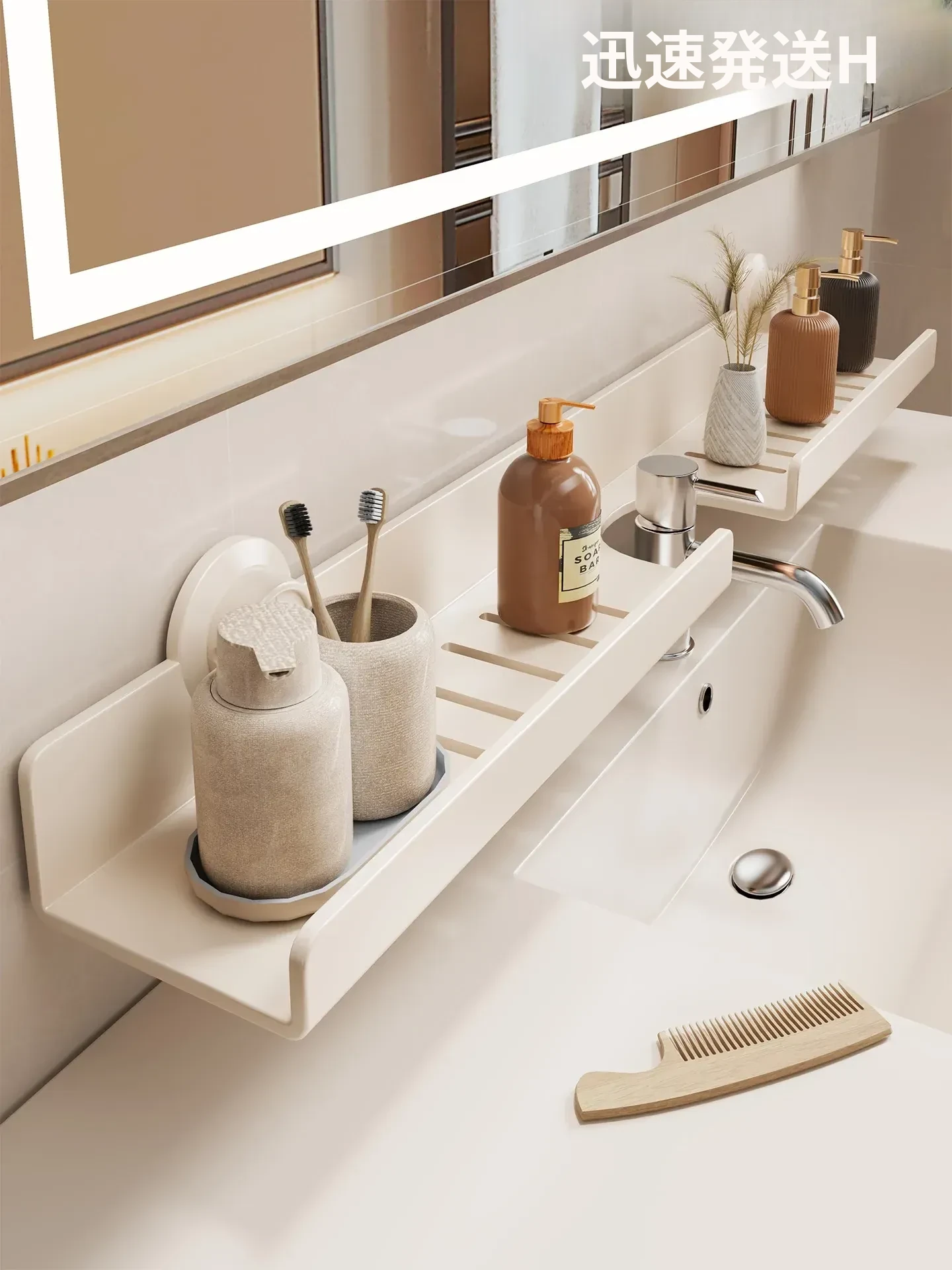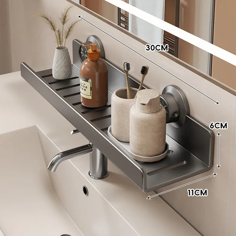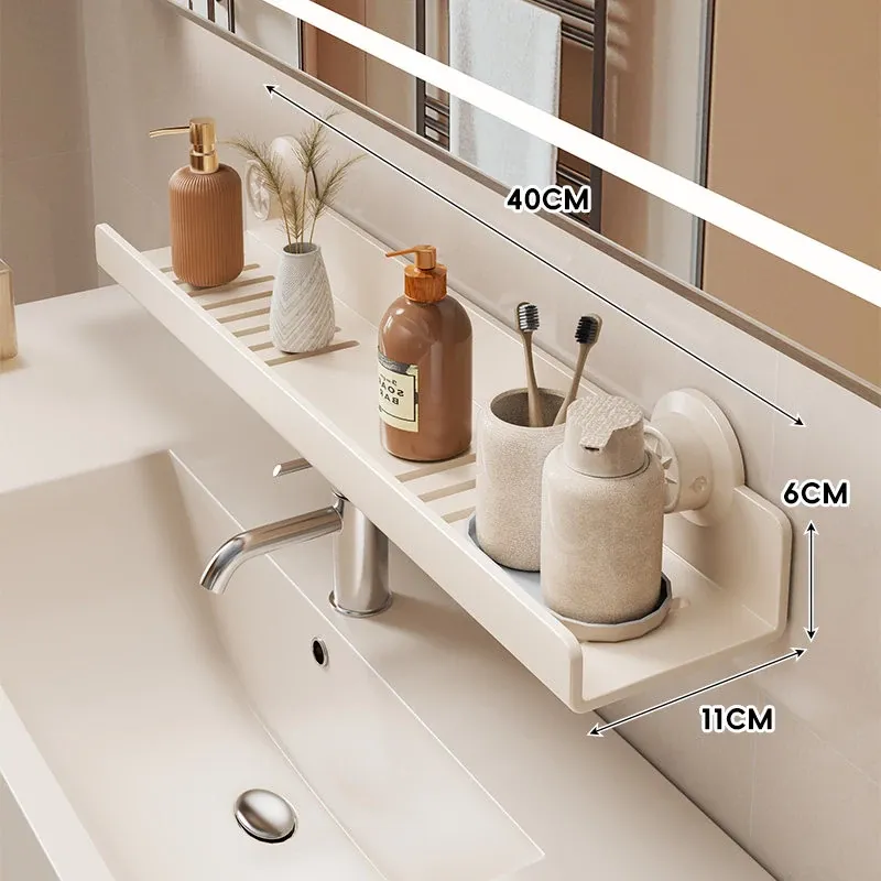 吸盤式収納ラック|トイレ・バスルームに最適!穴あけ不要で簡単取り付け|洗面台や水栓周りをスッキリ整理!収納力抜群の便利アイテム!