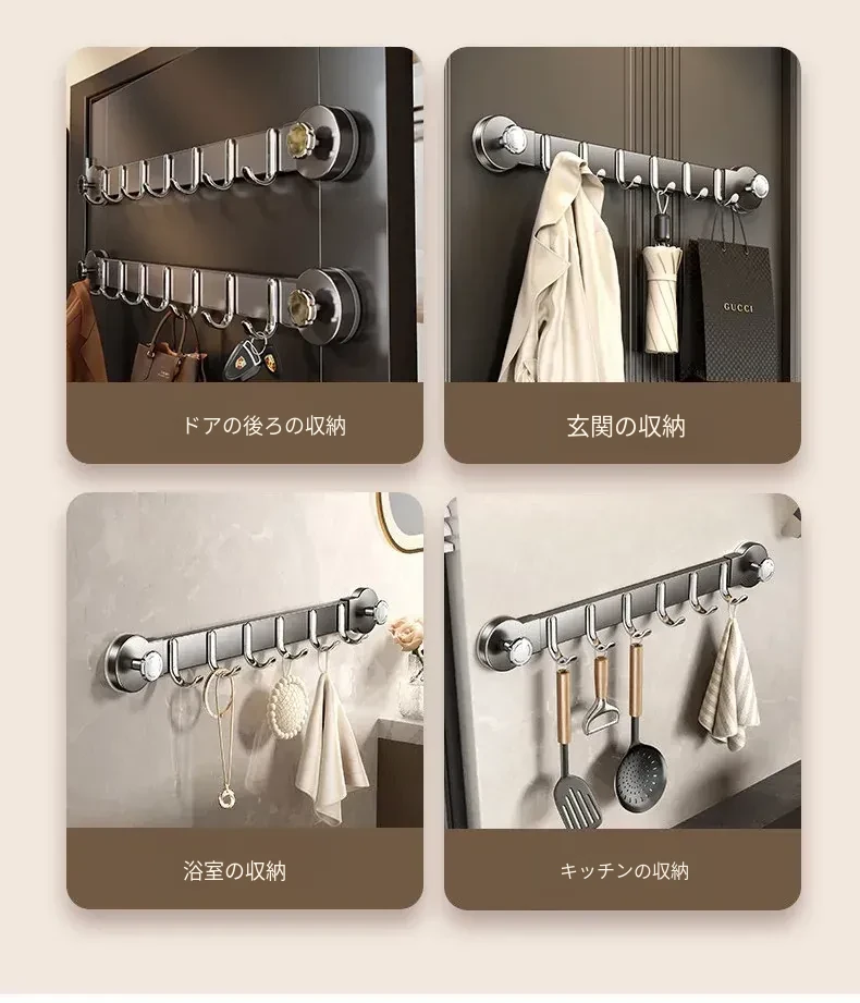 吸盤式ドアフック - 穴あけ不要の便利な衣類ハンガー!壁掛け収納で玄関やクローゼットのサイドにぴったり。スマートに衣服を整理し、スペースを有効活用!