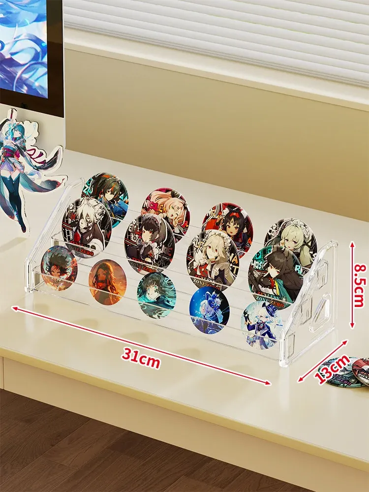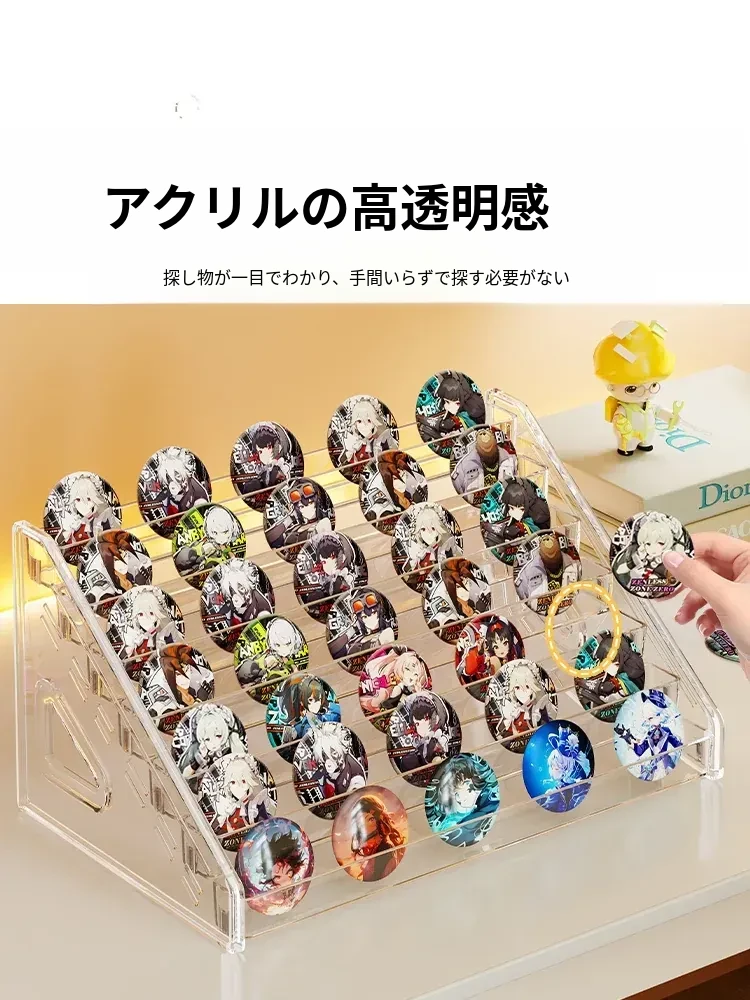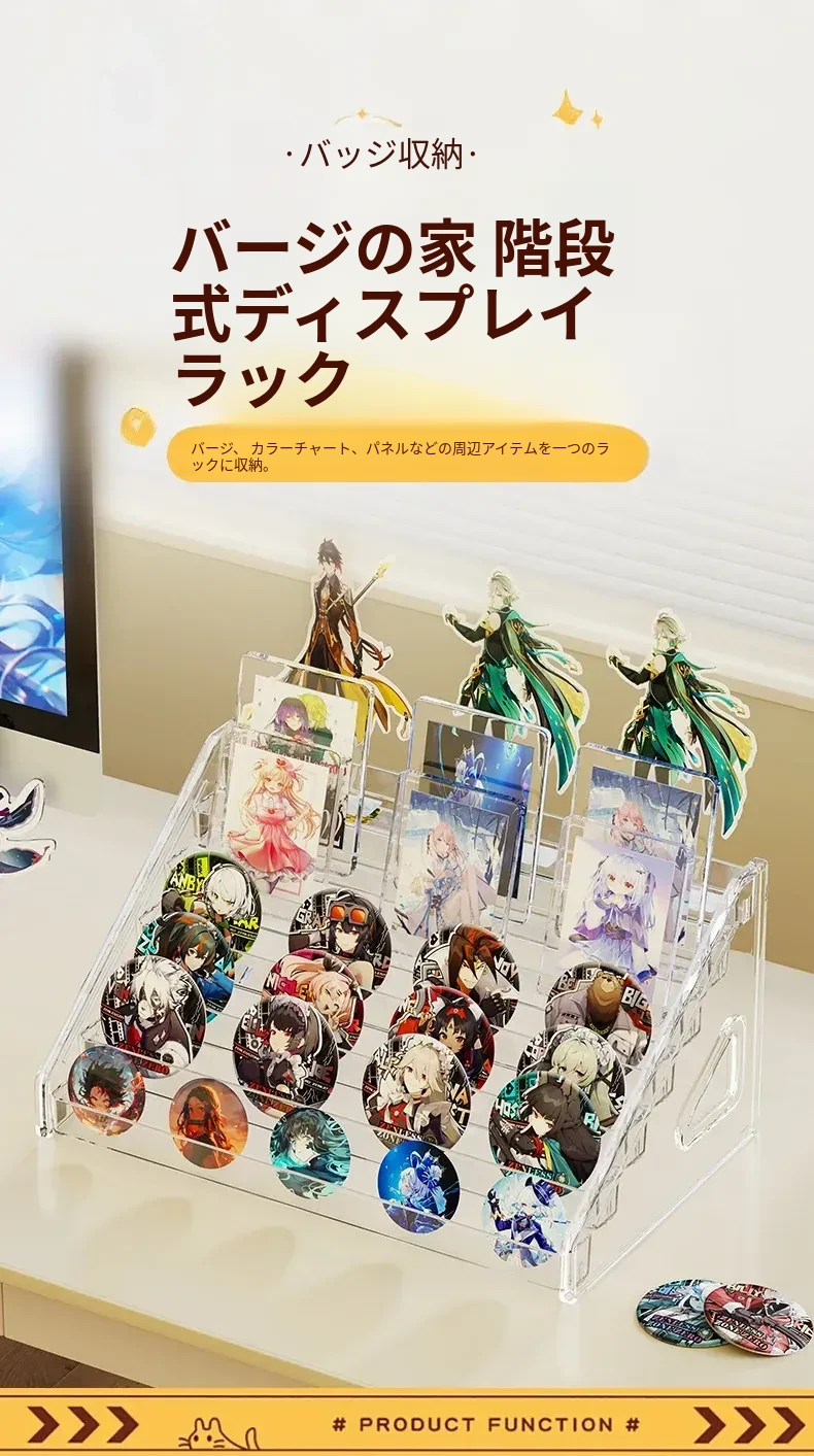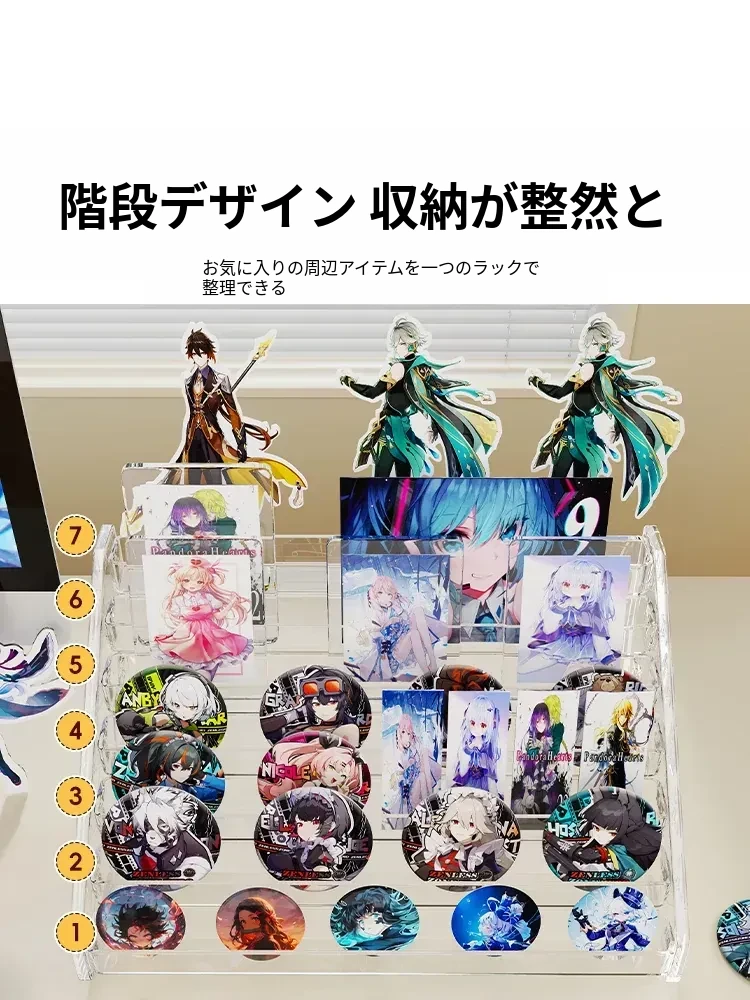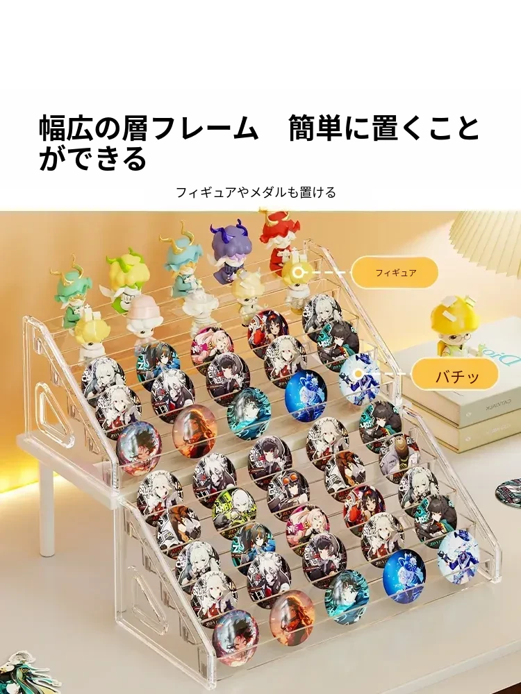 アクリルバッジディスプレイスタンド デスク用透明階段ラック コレクションボックス 周辺バッジ収納に最適!整理整頓もおしゃれに。あなたの大切なアイテムを美しく見せる!
