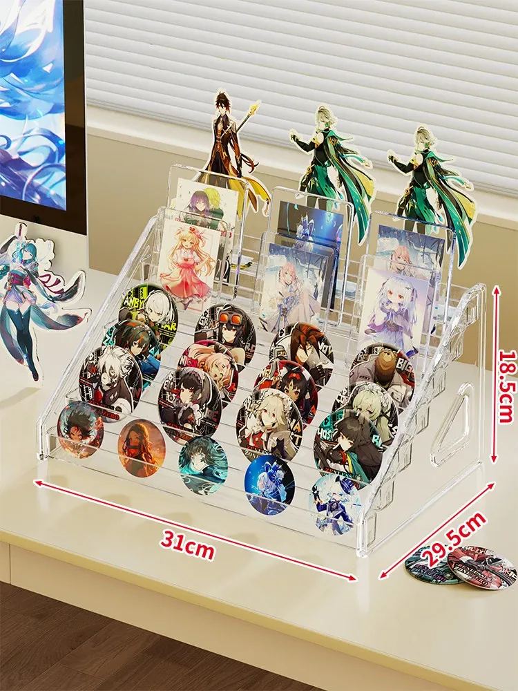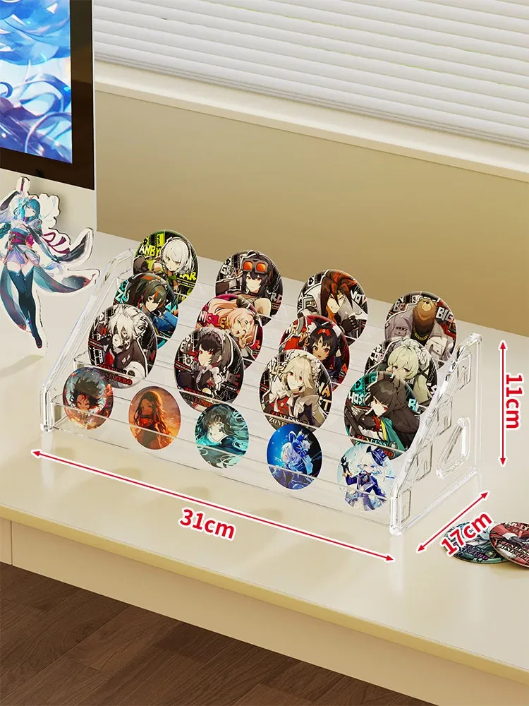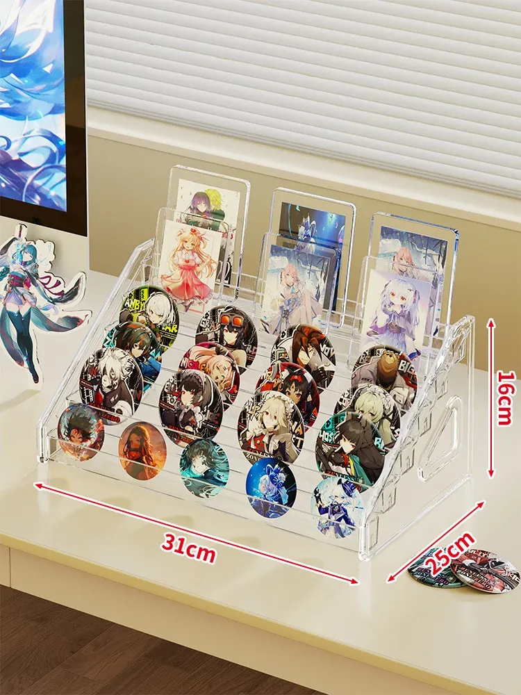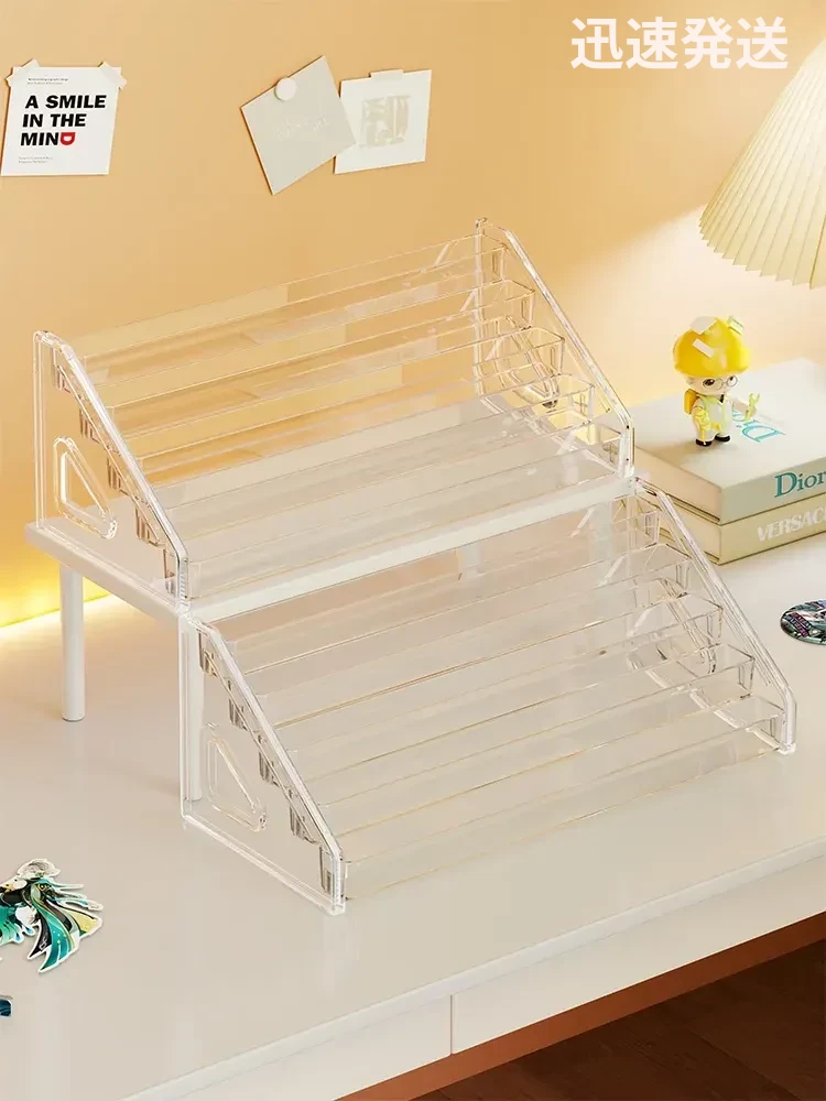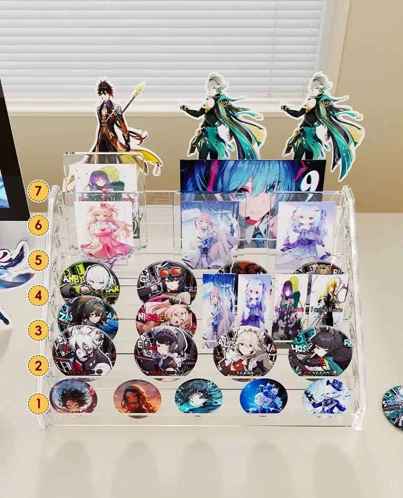 アクリルバッジディスプレイスタンド デスク用透明階段ラック コレクションボックス 周辺バッジ収納に最適!整理整頓もおしゃれに。あなたの大切なアイテムを美しく見せる!