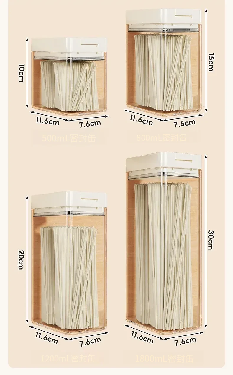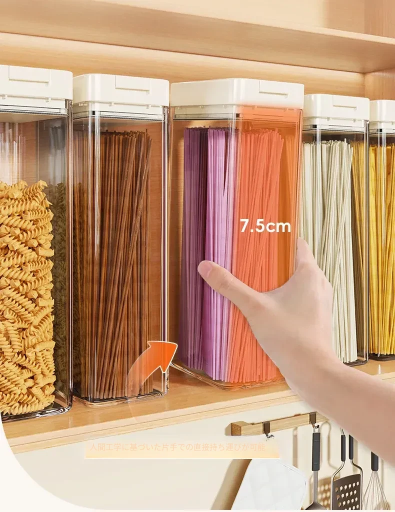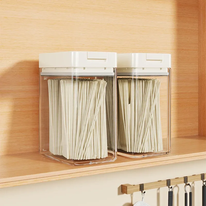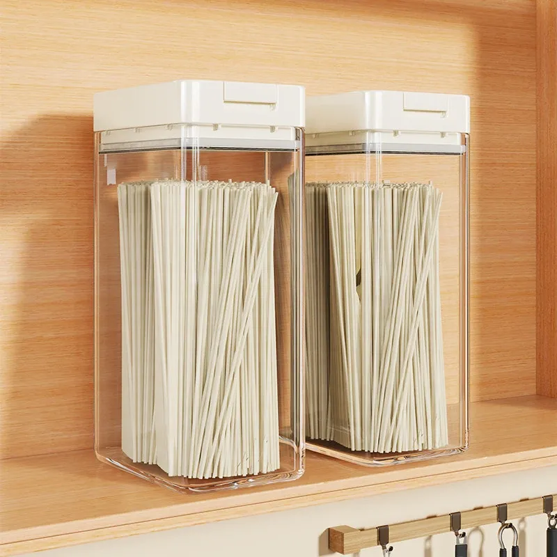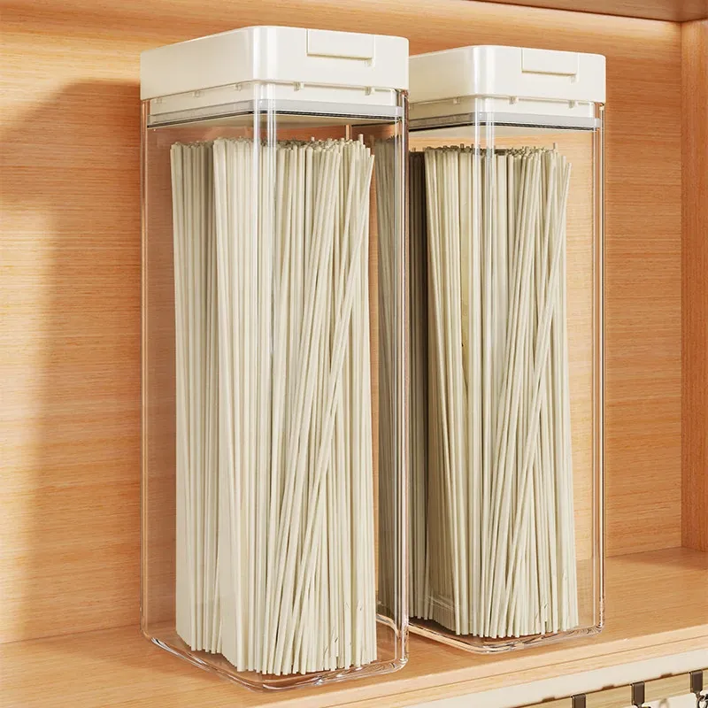 透明パスタ収納ボックス - 穀物と乾燥麺の密閉容器、スタイリッシュな整理アイテム!フタ付きで新鮮さをキープ、キッチンをスッキリ整頓!