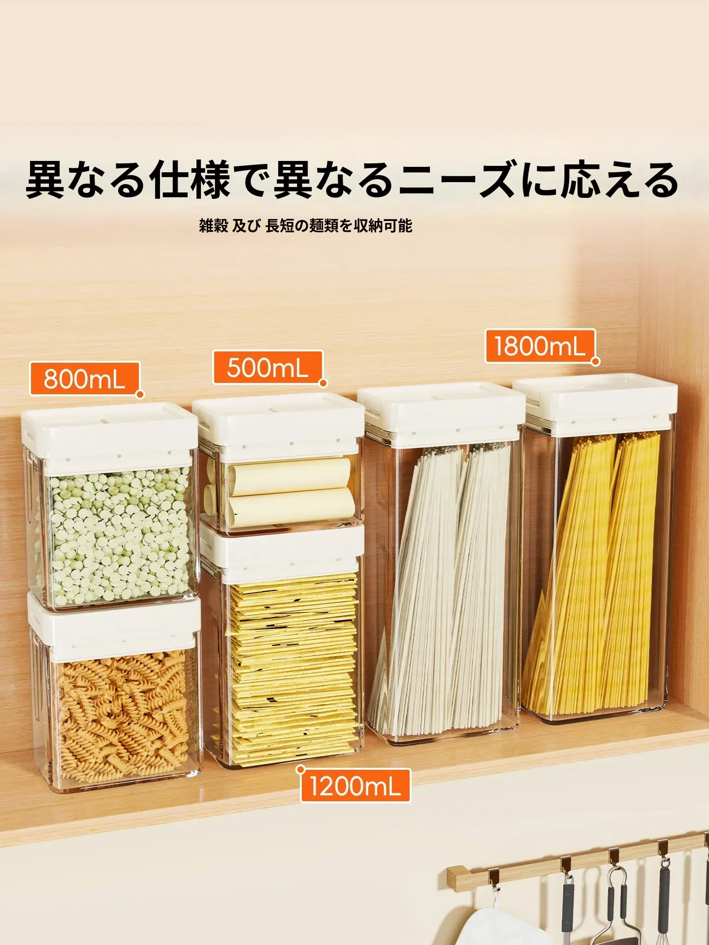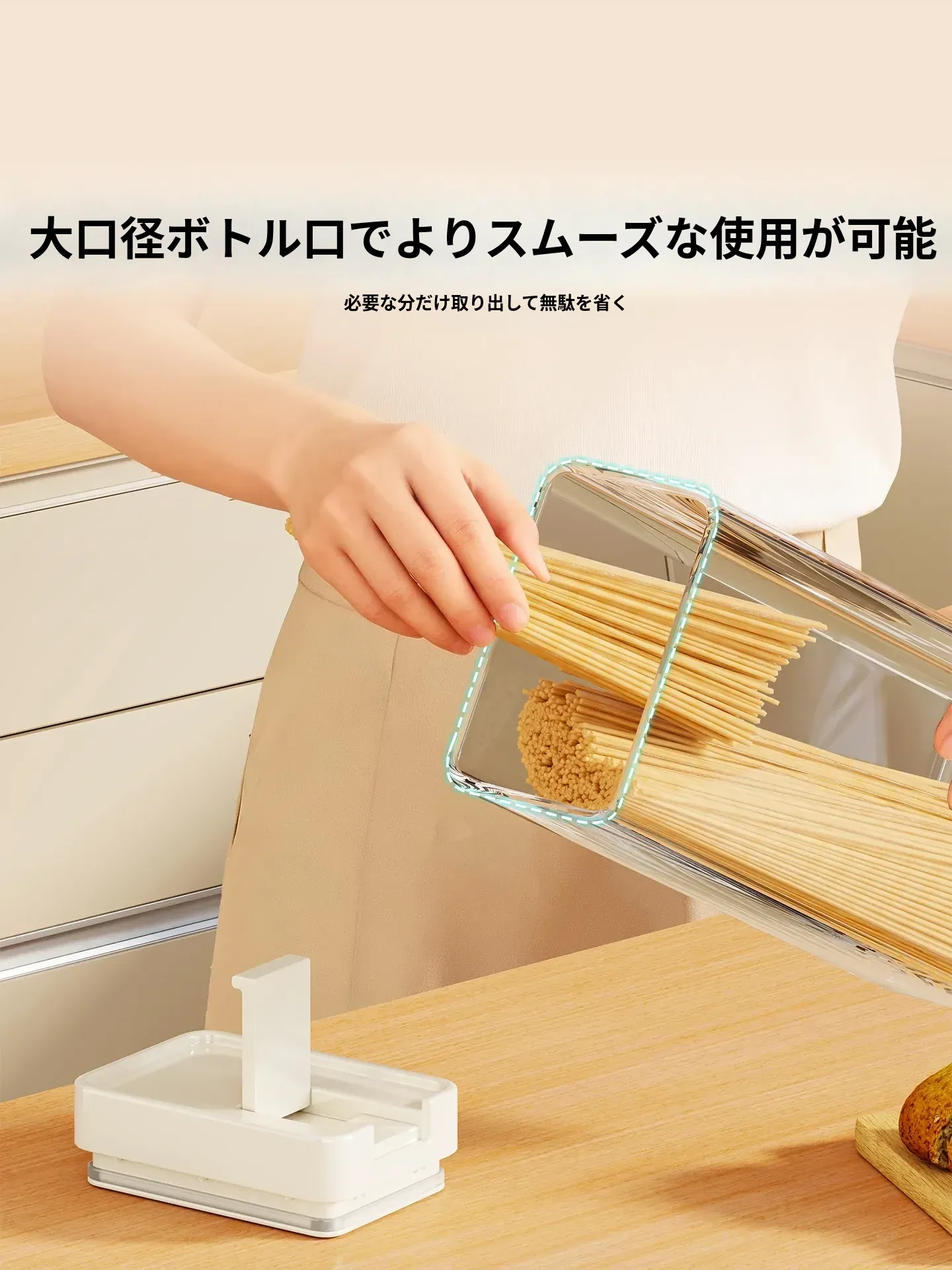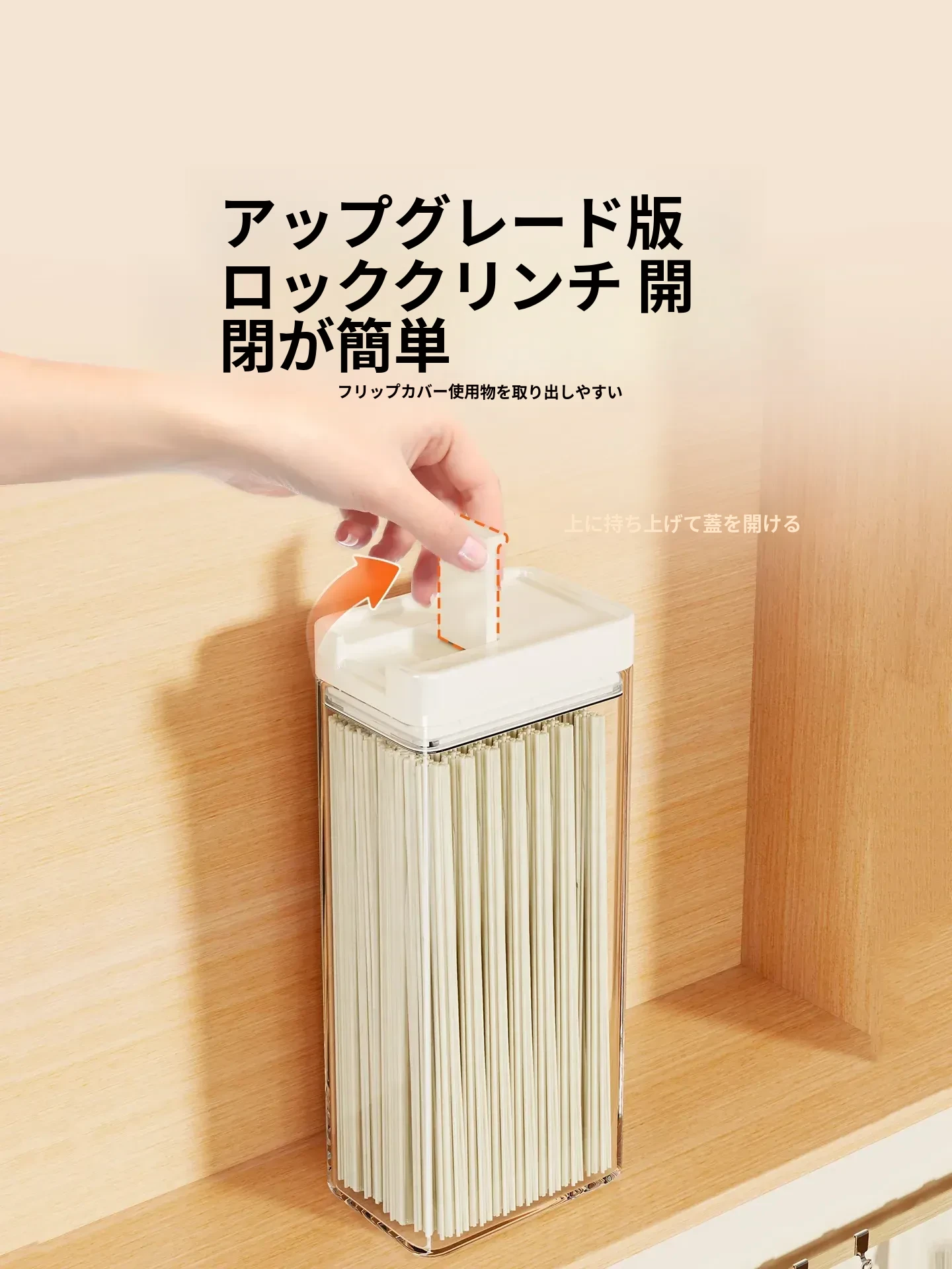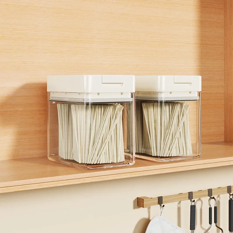 透明パスタ収納ボックス - 穀物と乾燥麺の密閉容器、スタイリッシュな整理アイテム!フタ付きで新鮮さをキープ、キッチンをスッキリ整頓!