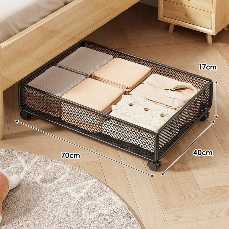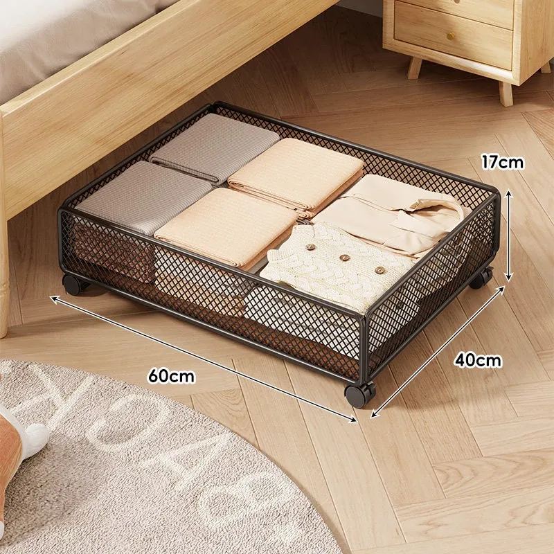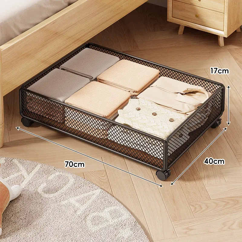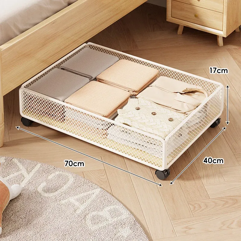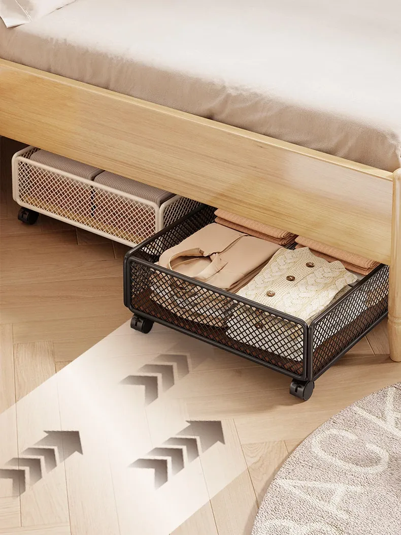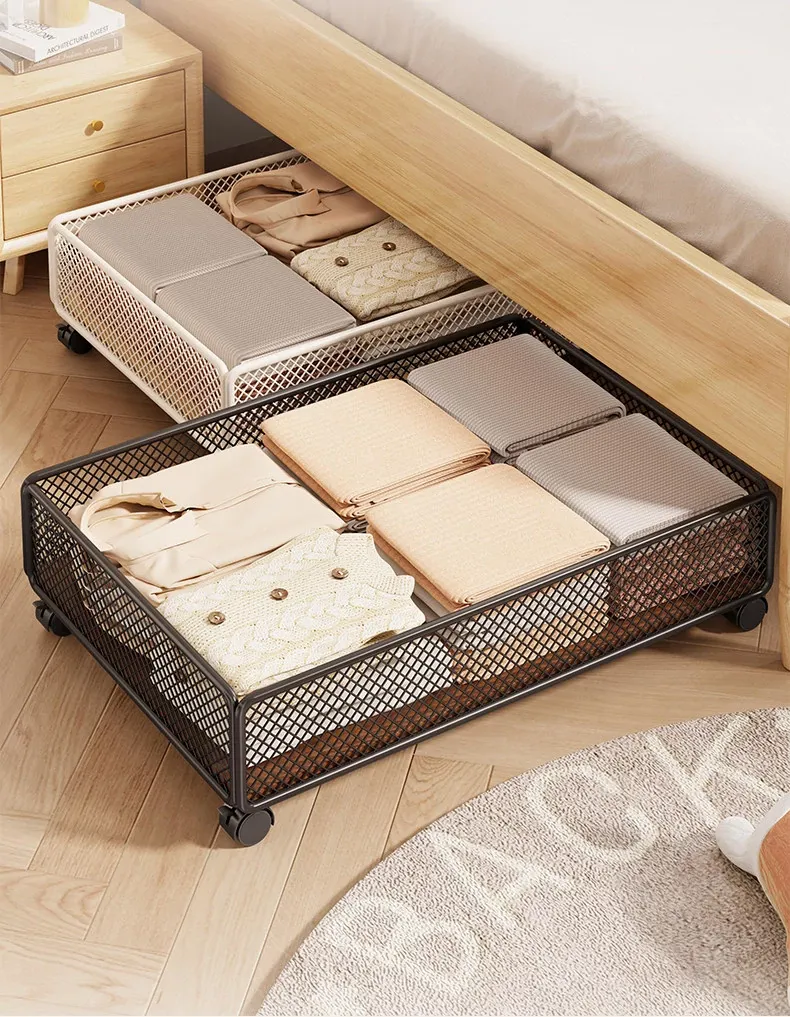 引き出し式ベッド下収納ボックス - キャスター付き、フラットデザインの大容量収納ケース!寮や寝室にぴったりな本や小物の整理に最適です。省スペースでスッキリ収納!