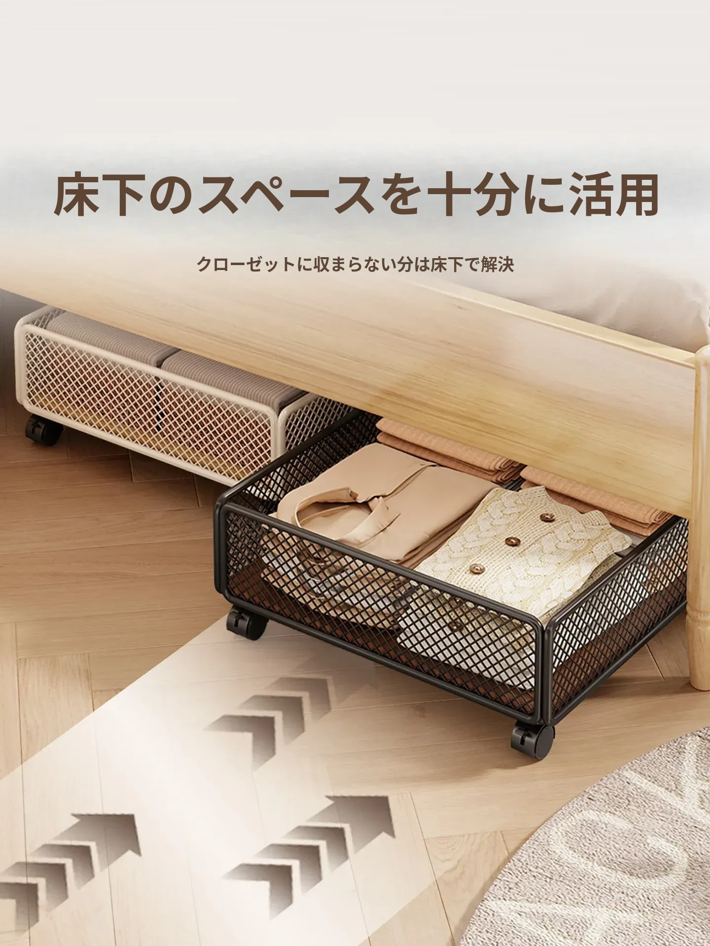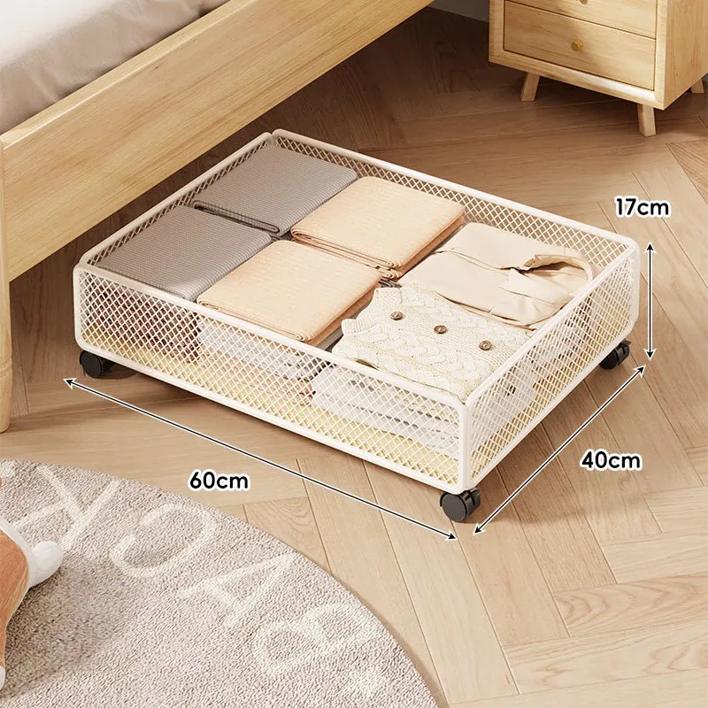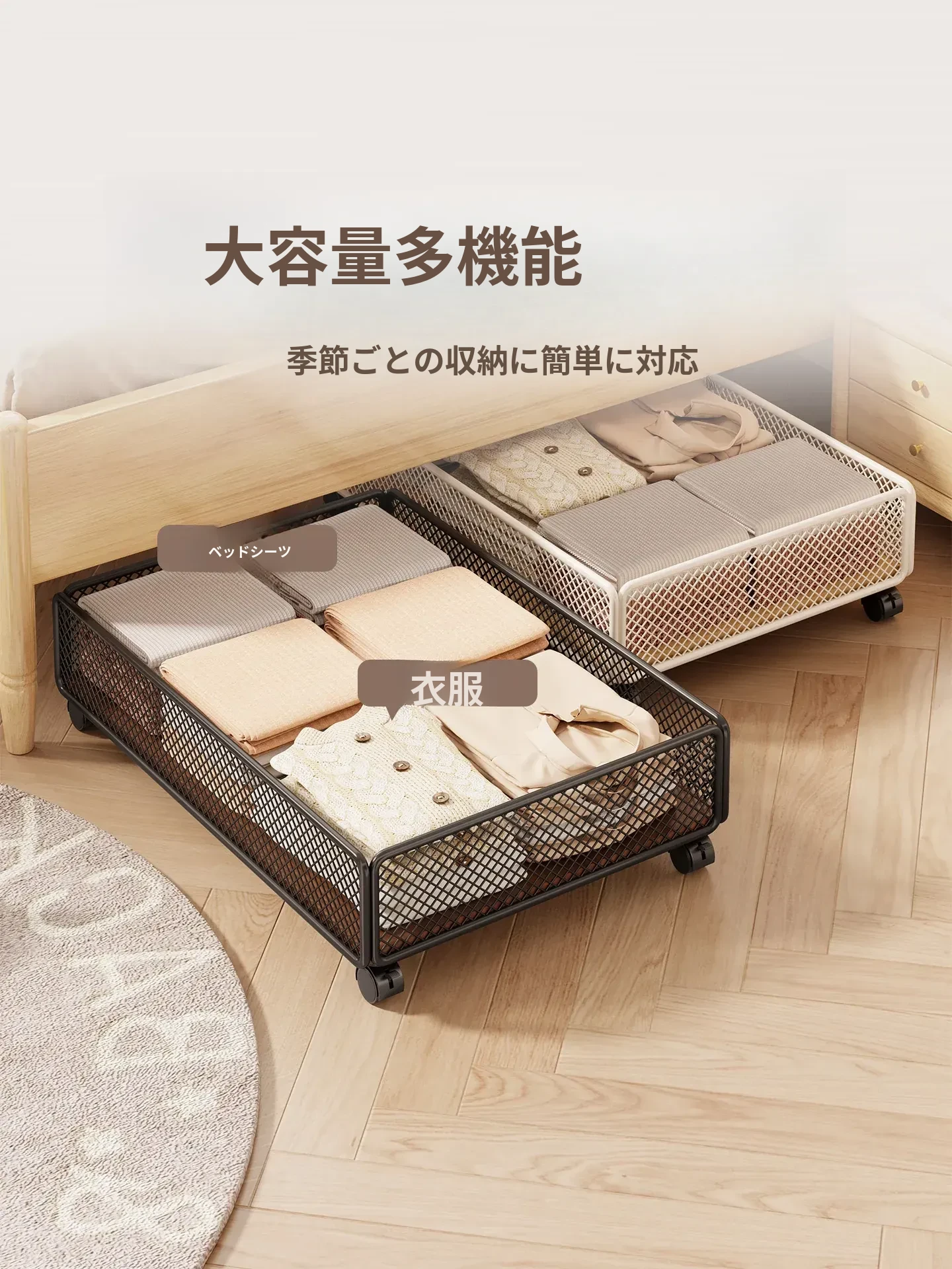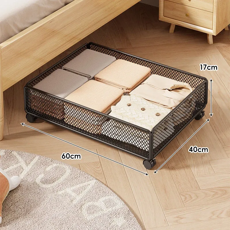 引き出し式ベッド下収納ボックス - キャスター付き、フラットデザインの大容量収納ケース!寮や寝室にぴったりな本や小物の整理に最適です。省スペースでスッキリ収納!