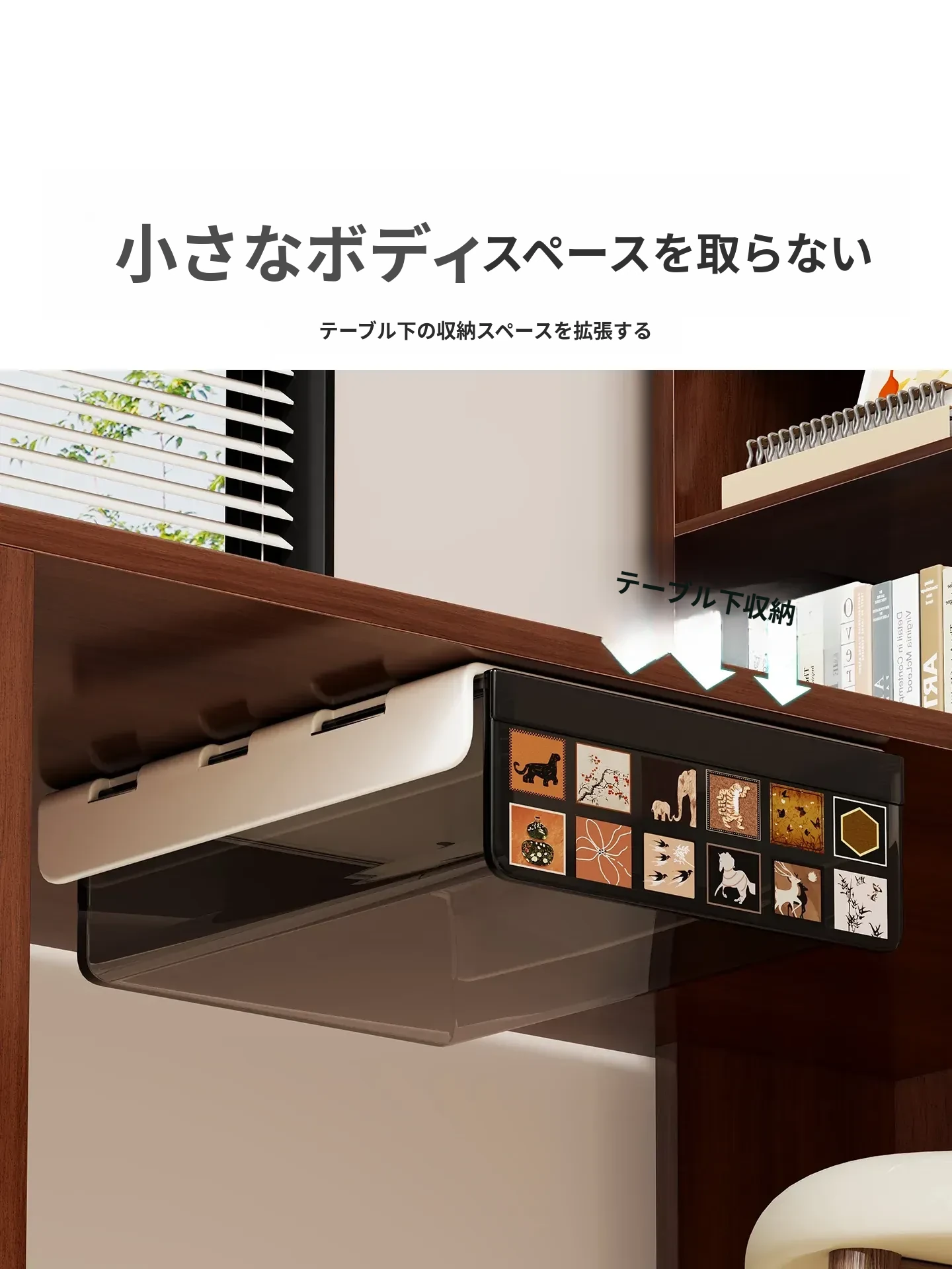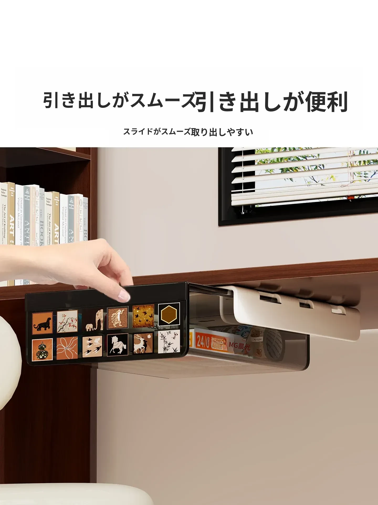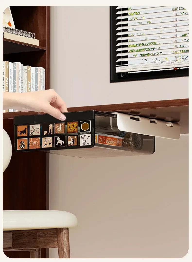 デスク下収納ボックス - 目立たない小引き出しでオフィスをスッキリ整理!パソコンデスクや作業スペースに最適な便利なアイテムです。机の下に簡単取り付け、効率的な収納で作業環境を整えましょう!