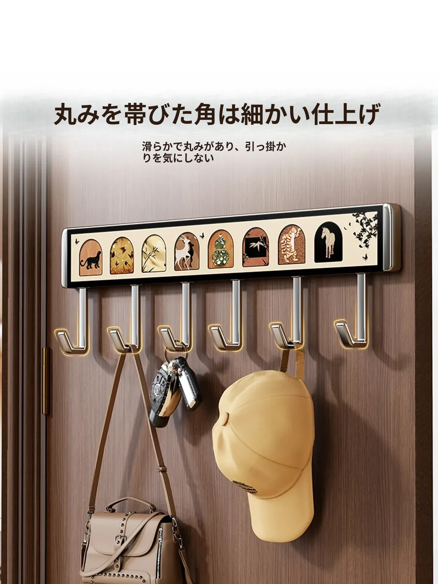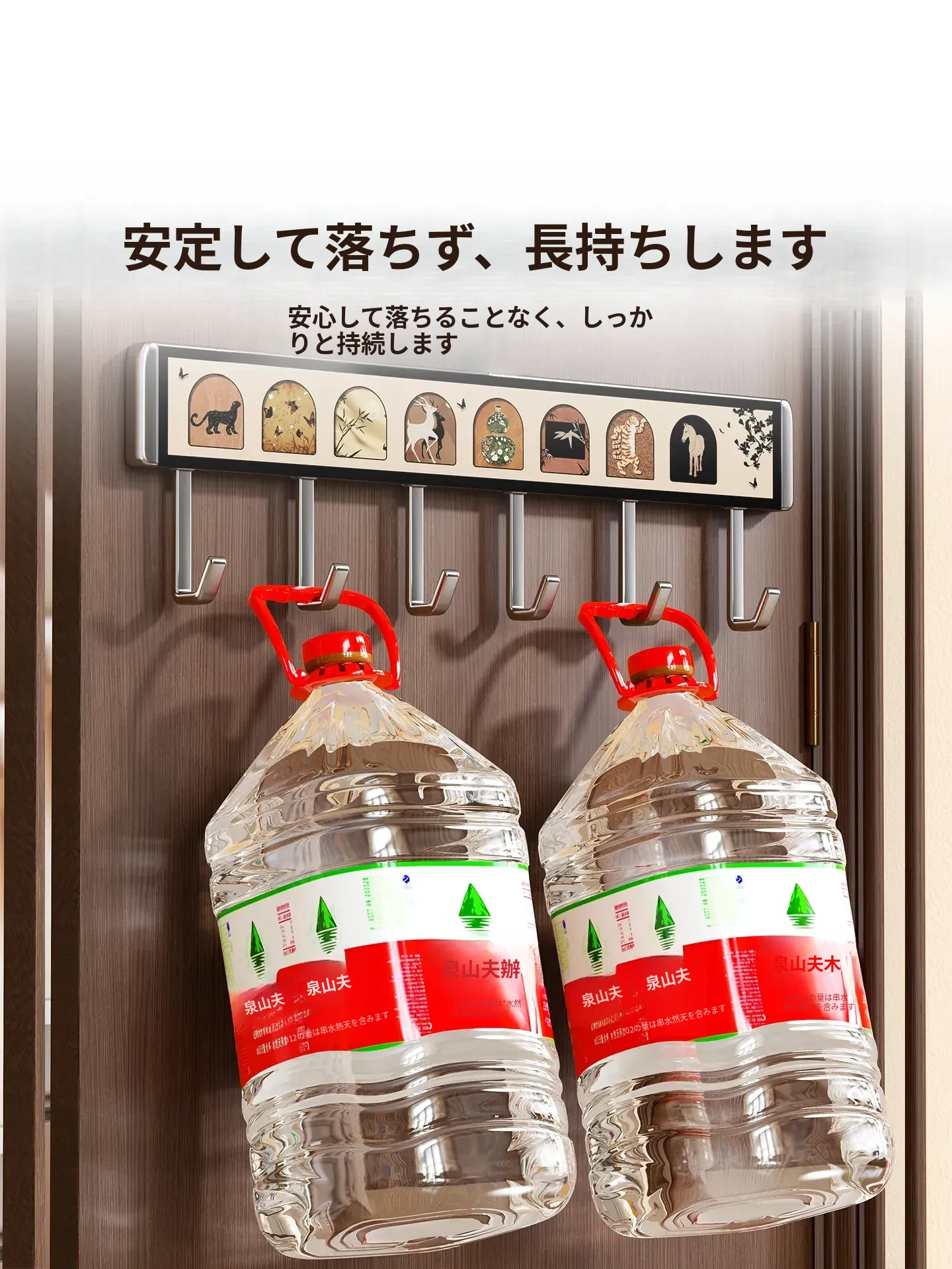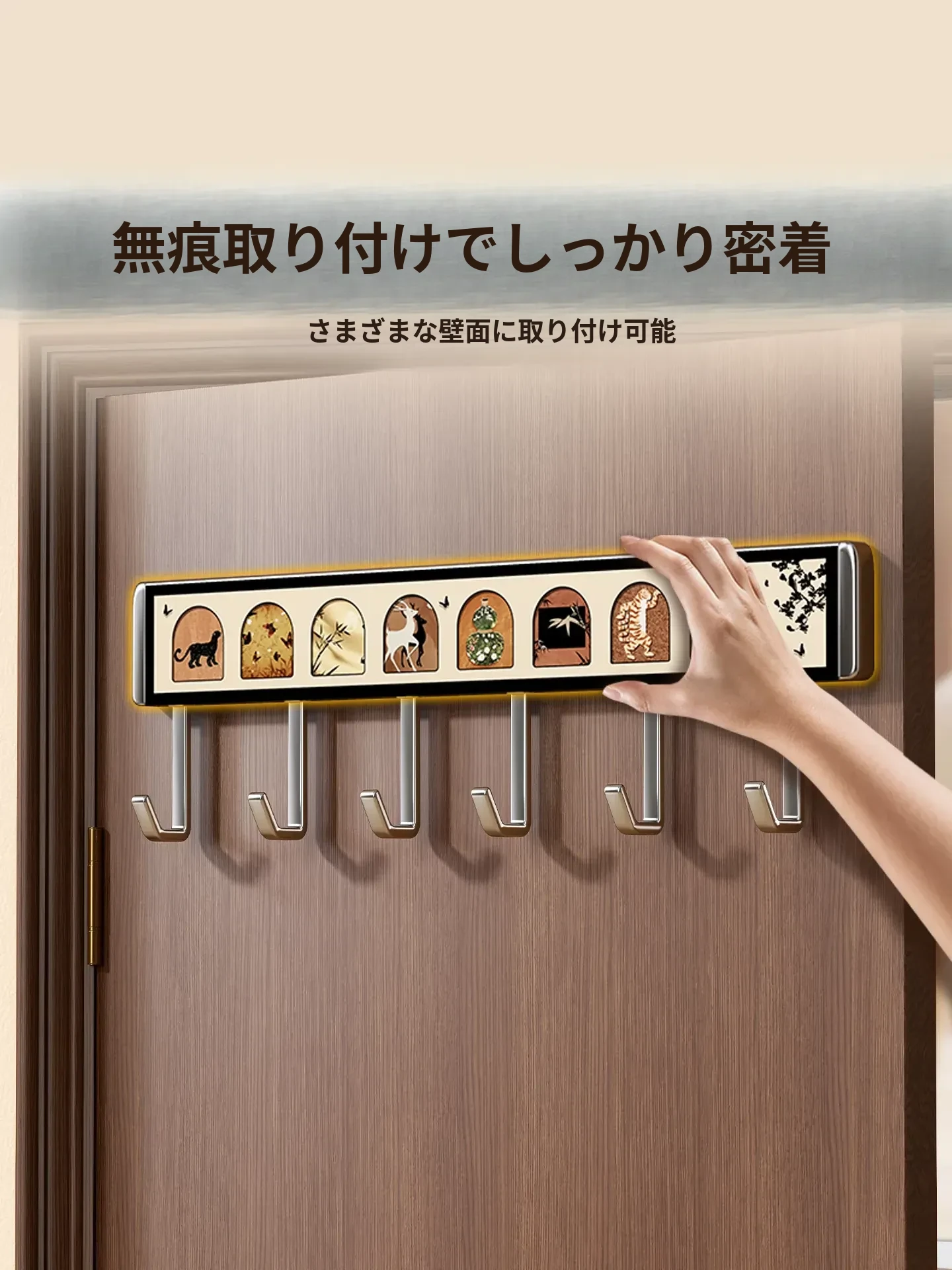 壁掛けハンガー フック付き 取付け不要 強力耐荷重 キッチン・バスルーム・玄関に最適 衣類・小物をスッキリ収納できる便利アイテム!