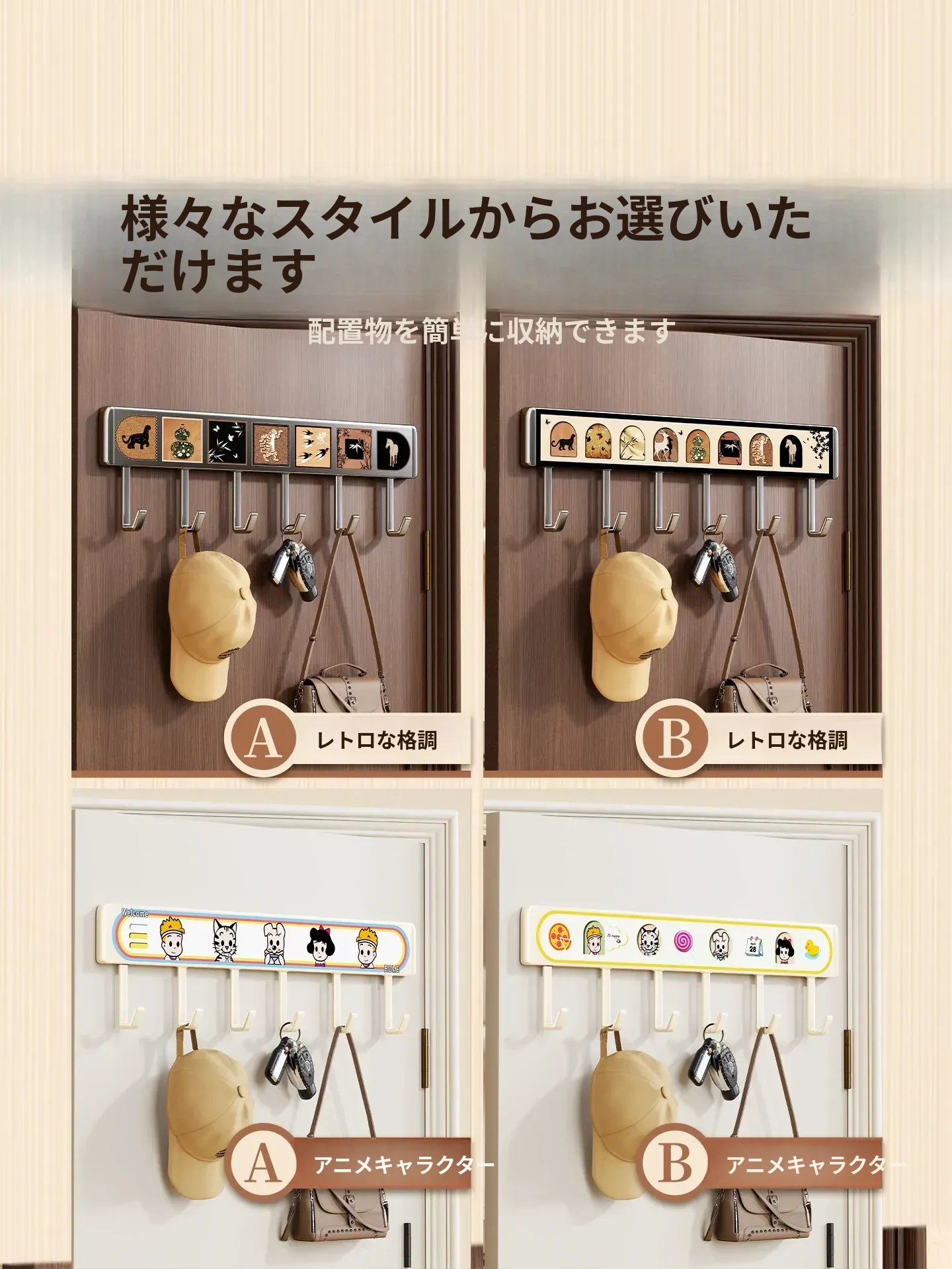 カートゥーンキャラクターA⭐ミルクホワイト【8フック】
