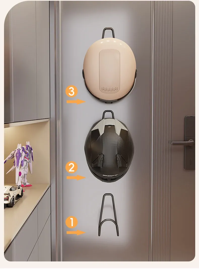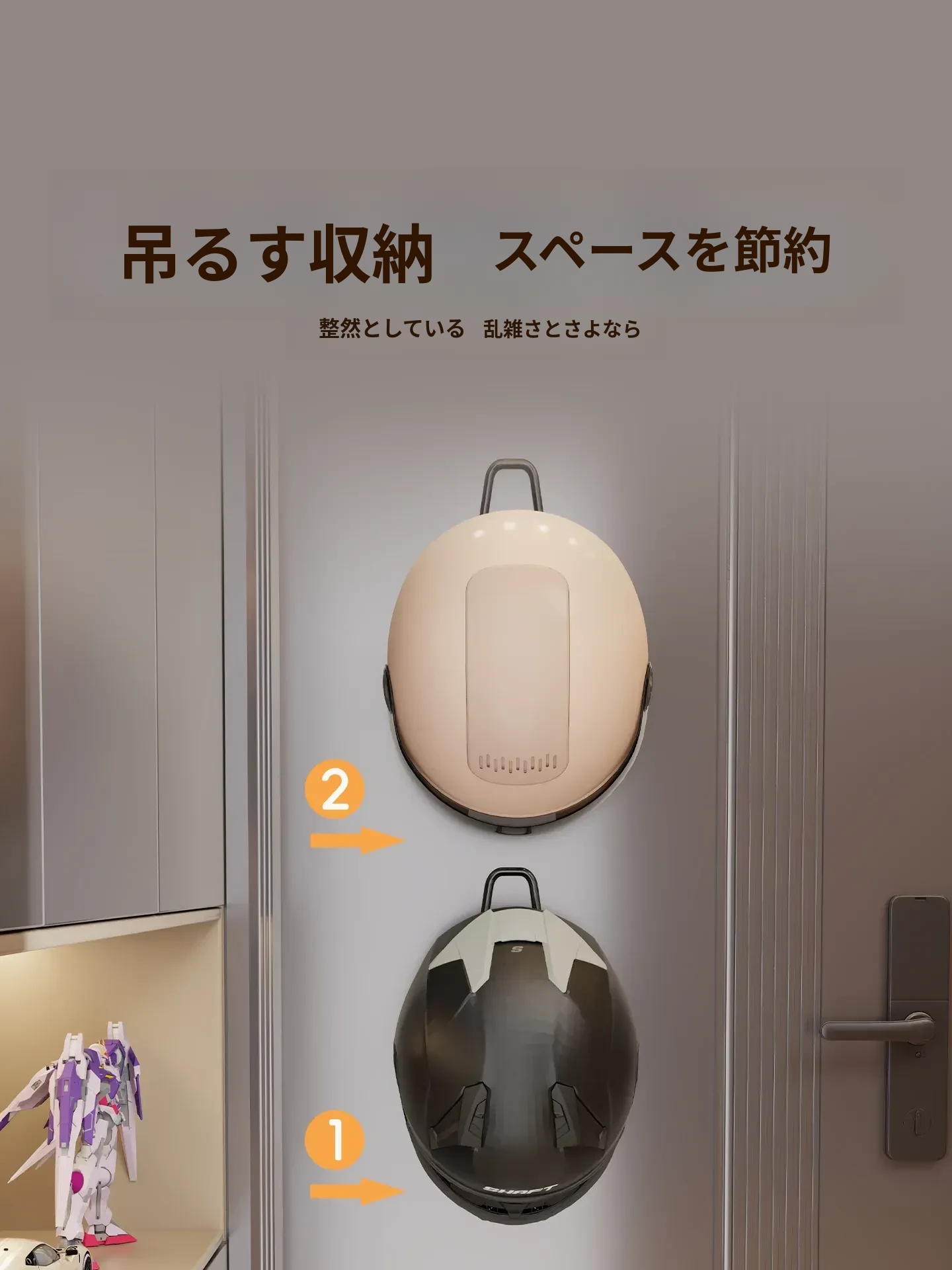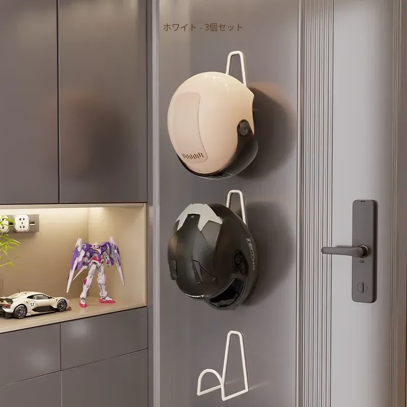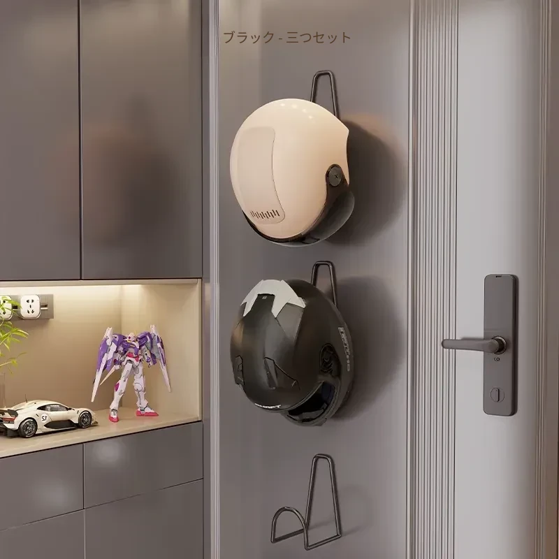 壁掛け式自転車・電動バイク・バイク用ヘルメットホルダー!穴を開けずに簡単取り付け、家での収納や展示に最適な安全ヘルメット掛け。省スペースでスタイリッシュに整理整頓!