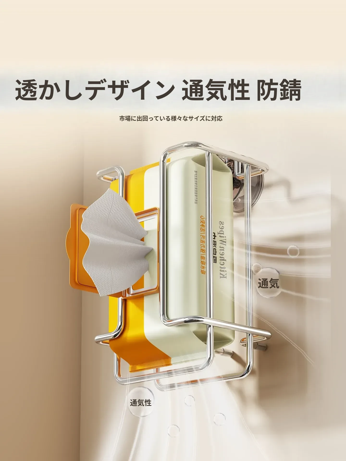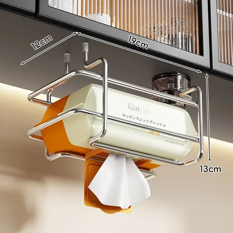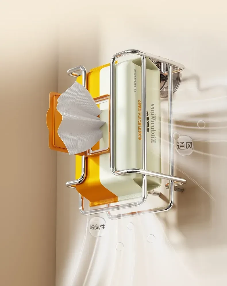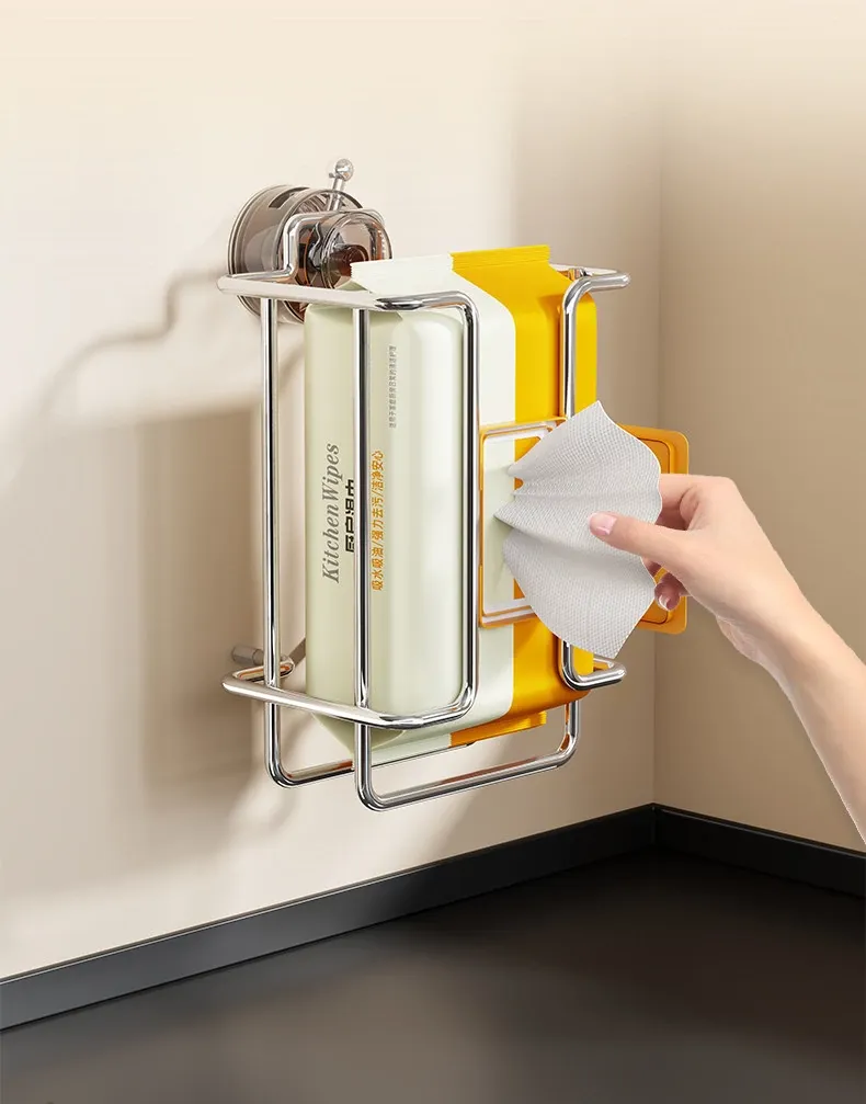 壁掛け吸盤式洗顔タオル収納ボックス - 鉄製デザインでおしゃれ!穴を開けずに簡単取り付け。キッチンや鏡の下に最適な濡れタオル・ティッシュボックス。省スペースで整理整頓!