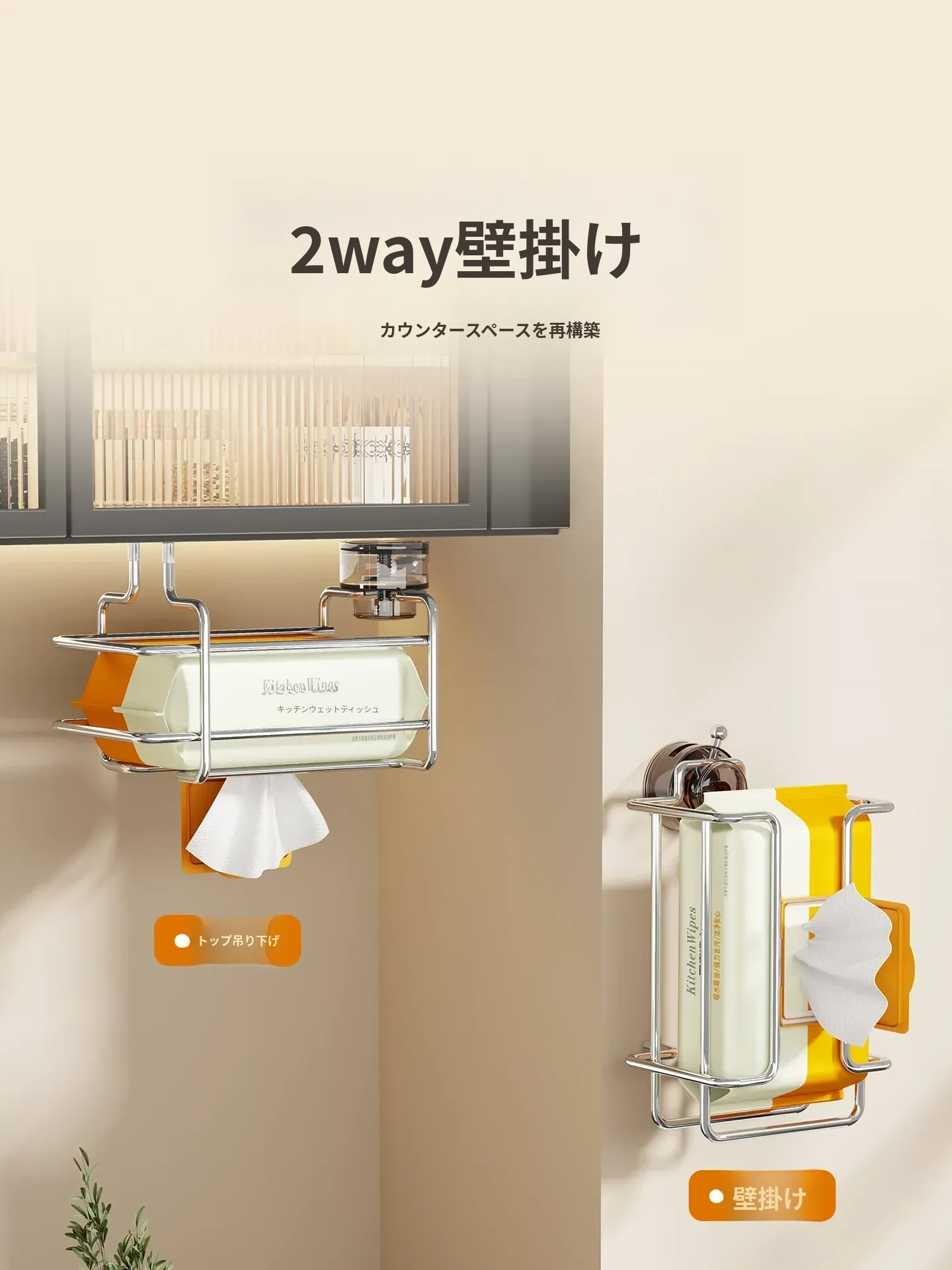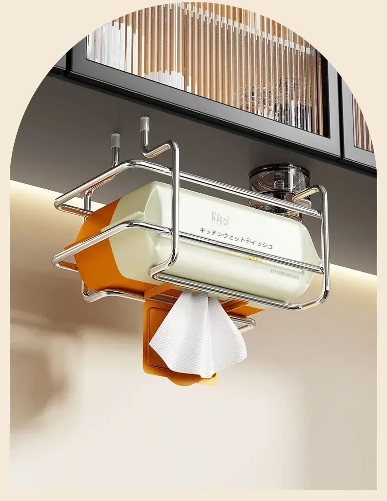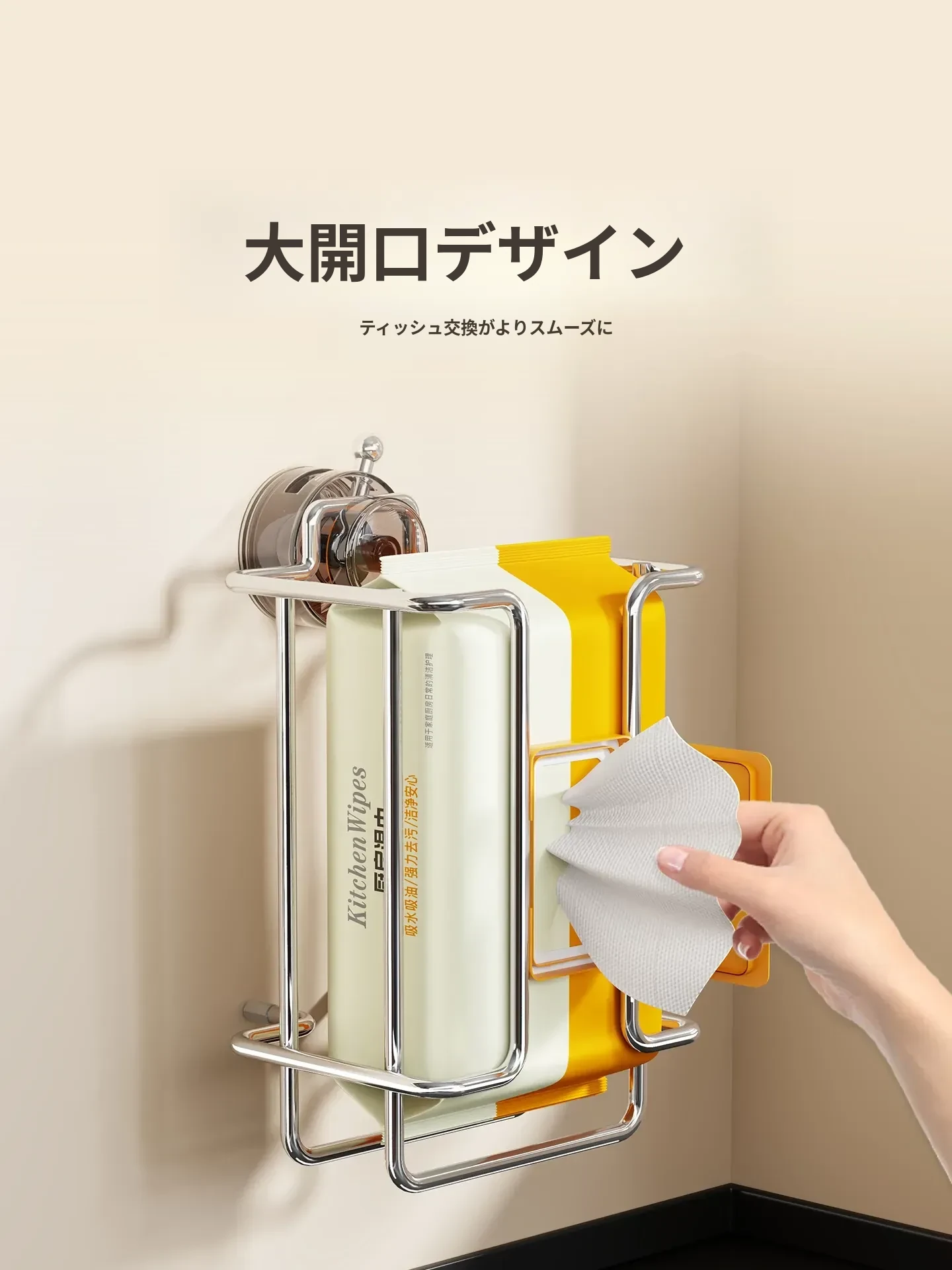 壁掛け吸盤式洗顔タオル収納ボックス - 鉄製デザインでおしゃれ!穴を開けずに簡単取り付け。キッチンや鏡の下に最適な濡れタオル・ティッシュボックス。省スペースで整理整頓!