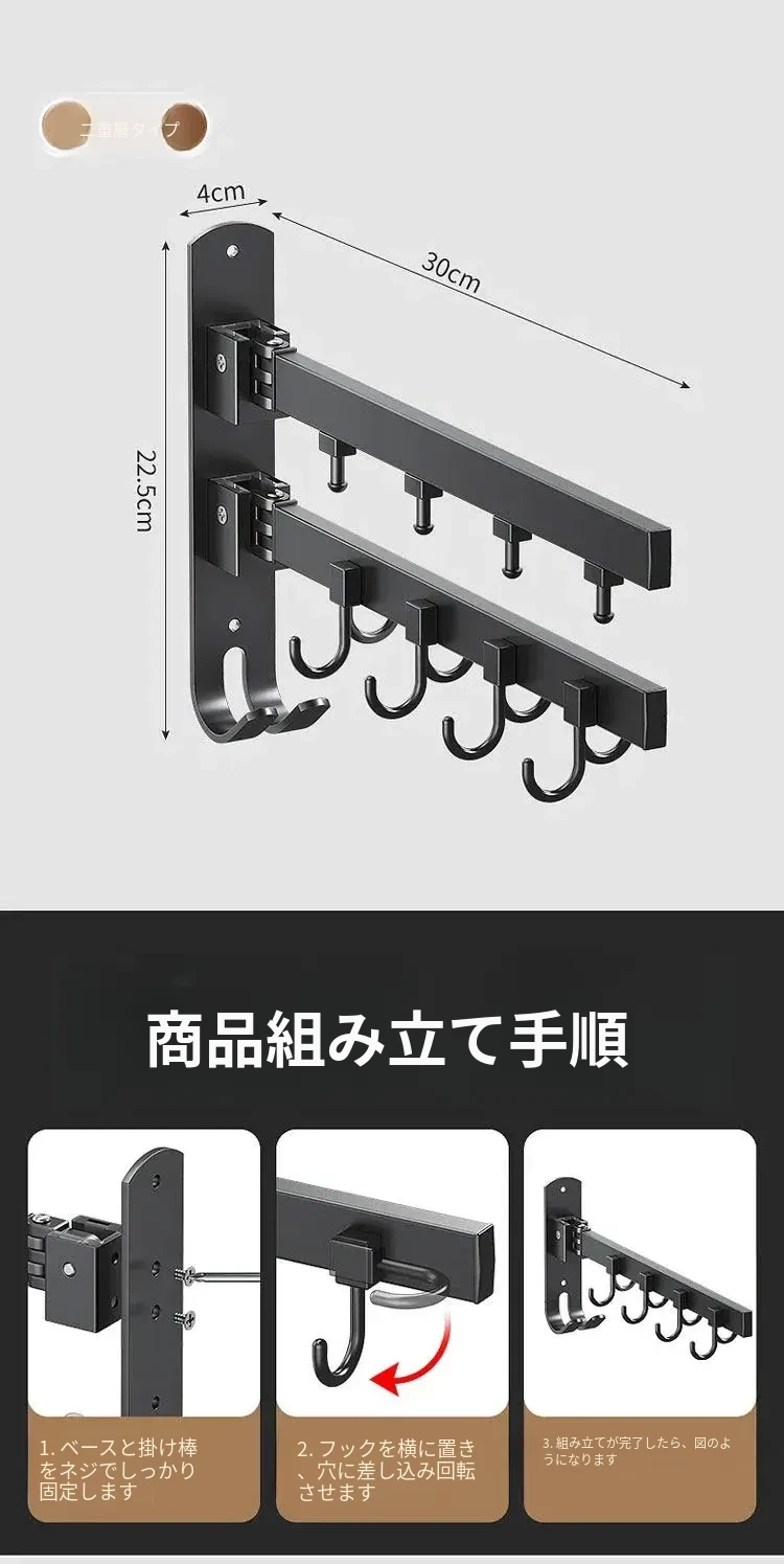 グレー-二層ハンガー+フック(回転可能)·炭素鋼