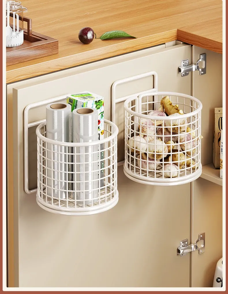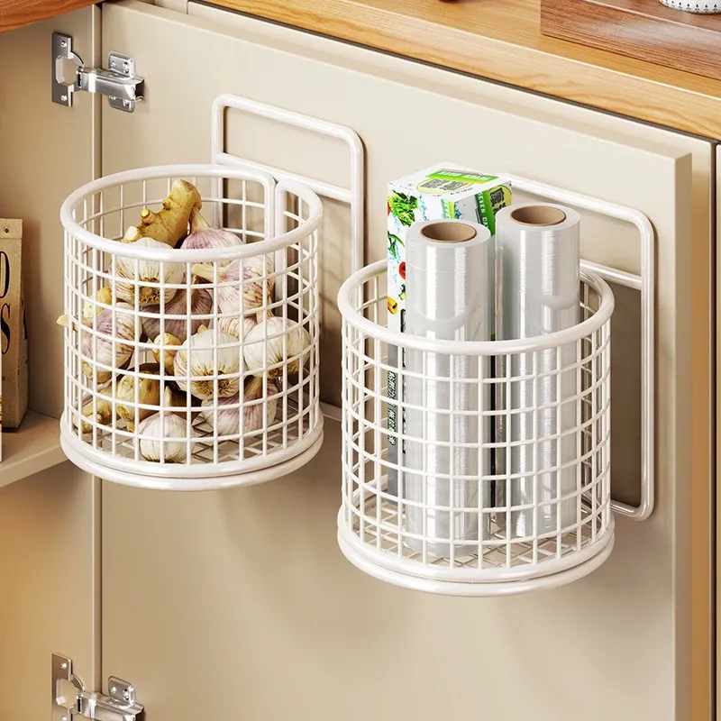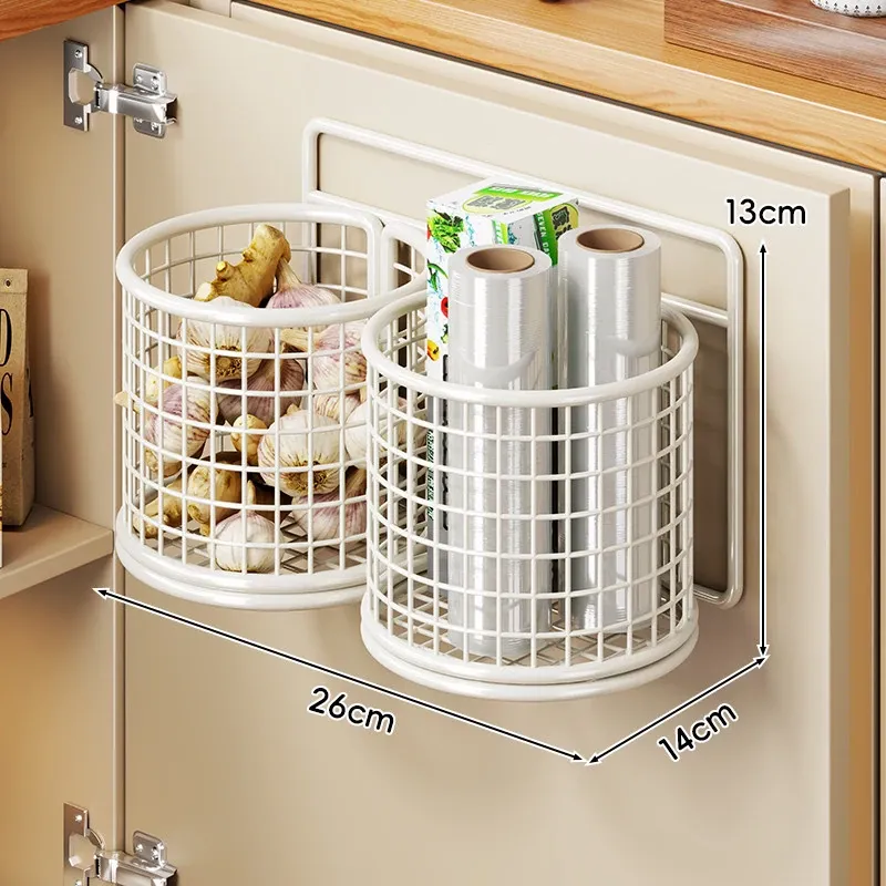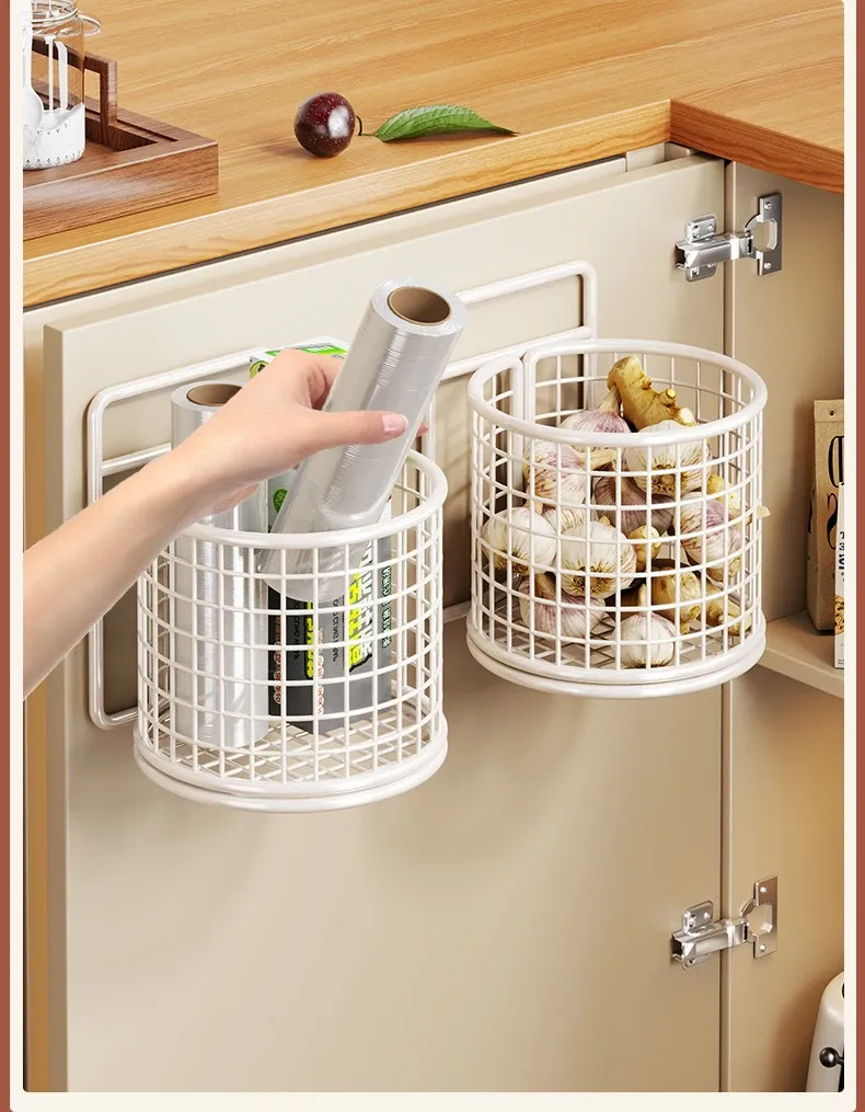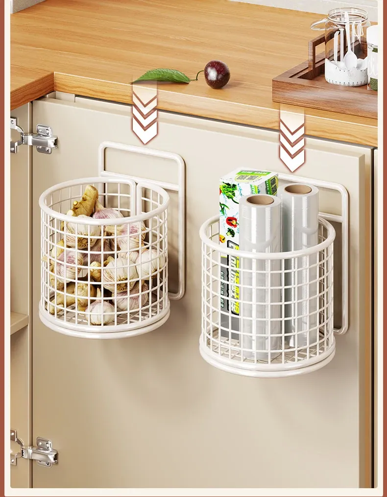 キッチン調味料収納棚 扉内側壁掛け式整理バスケット キャビネットドア用フック付き ラップ収納ラック 省スペースで便利なキッチンアイテム!