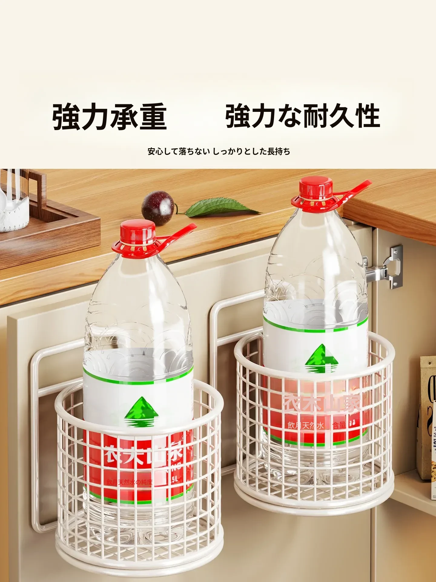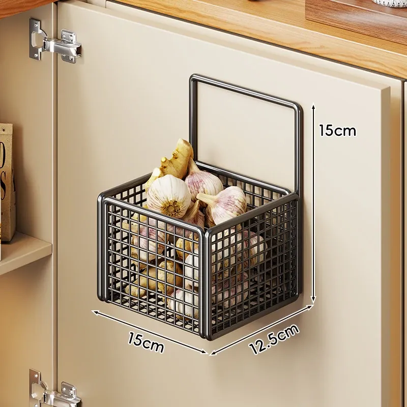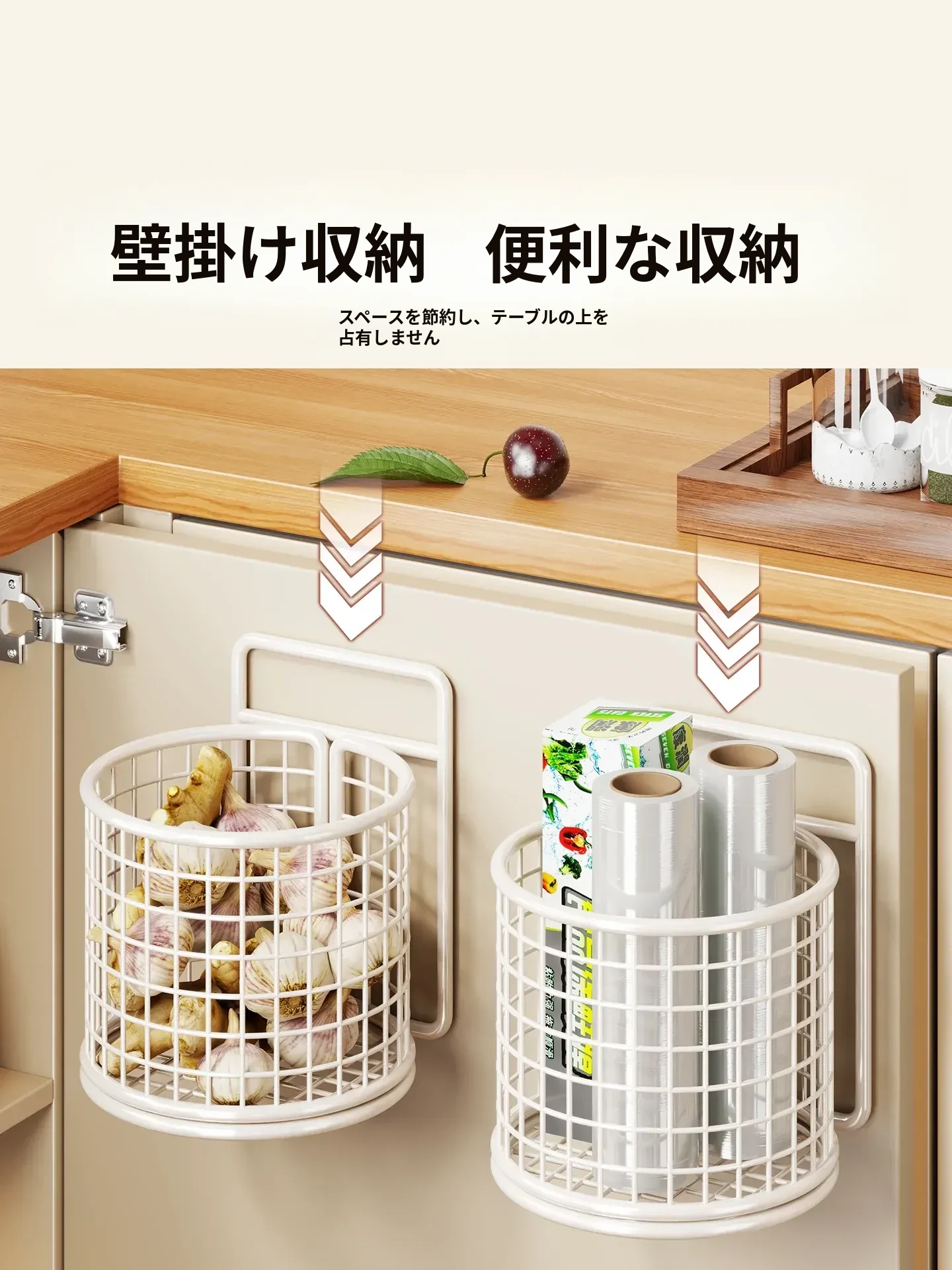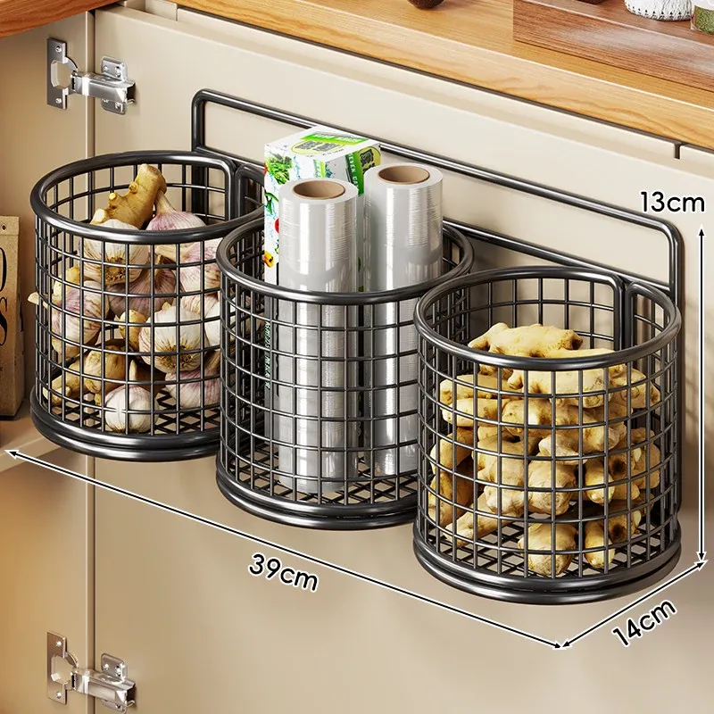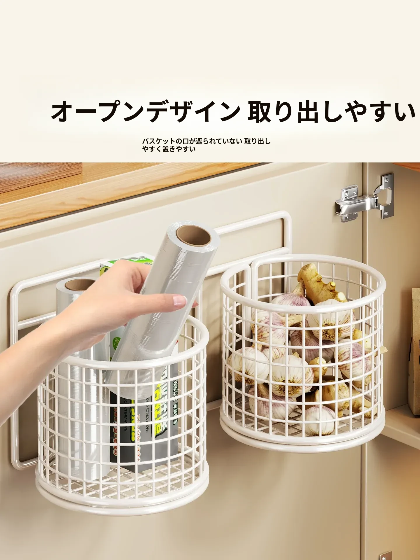 キッチン調味料収納棚 扉内側壁掛け式整理バスケット キャビネットドア用フック付き ラップ収納ラック 省スペースで便利なキッチンアイテム!