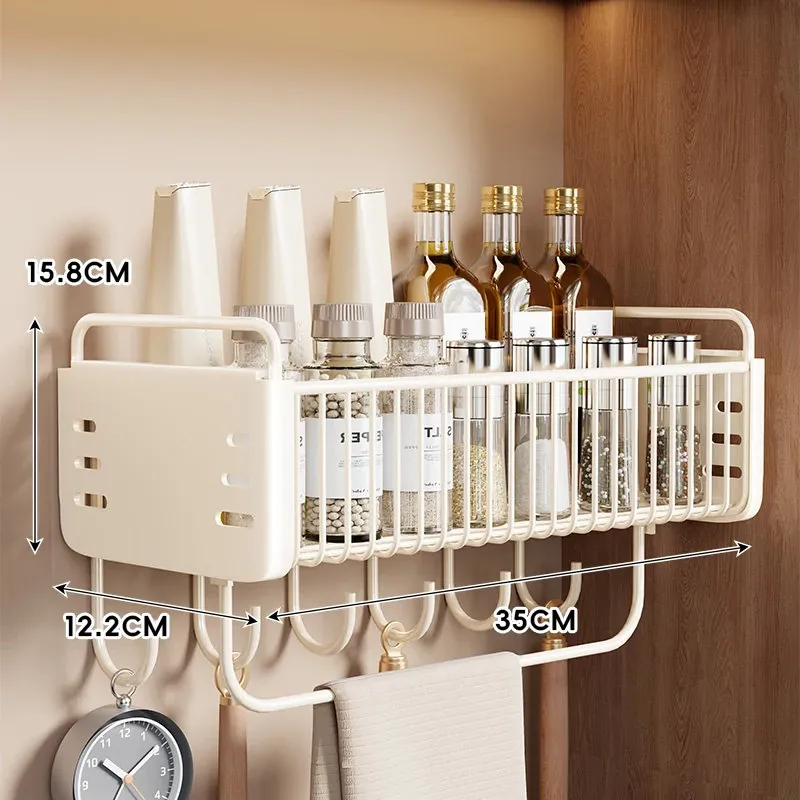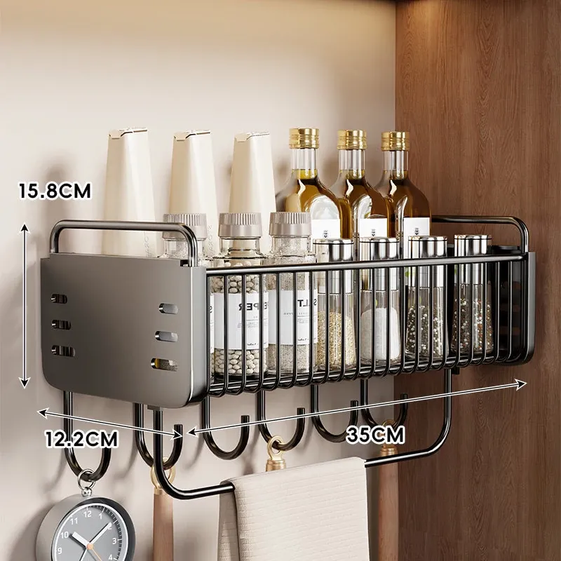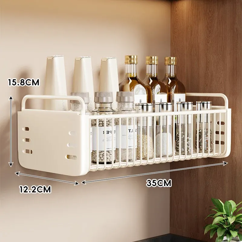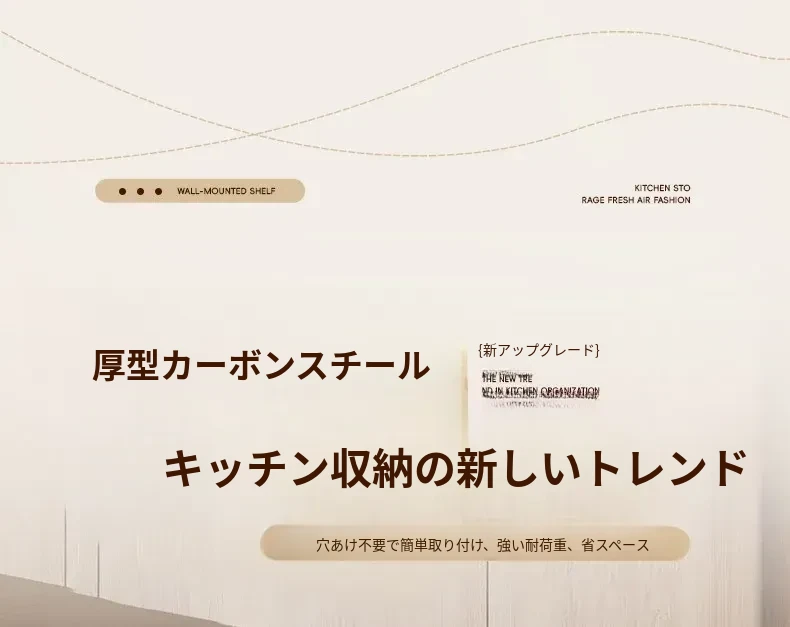 壁掛け収納棚 家庭用キッチン多機能収納ラック 壁に穴を開けずに調味料を置ける便利な収納アイテム!おしゃれでスッキリしたキッチンを実現!