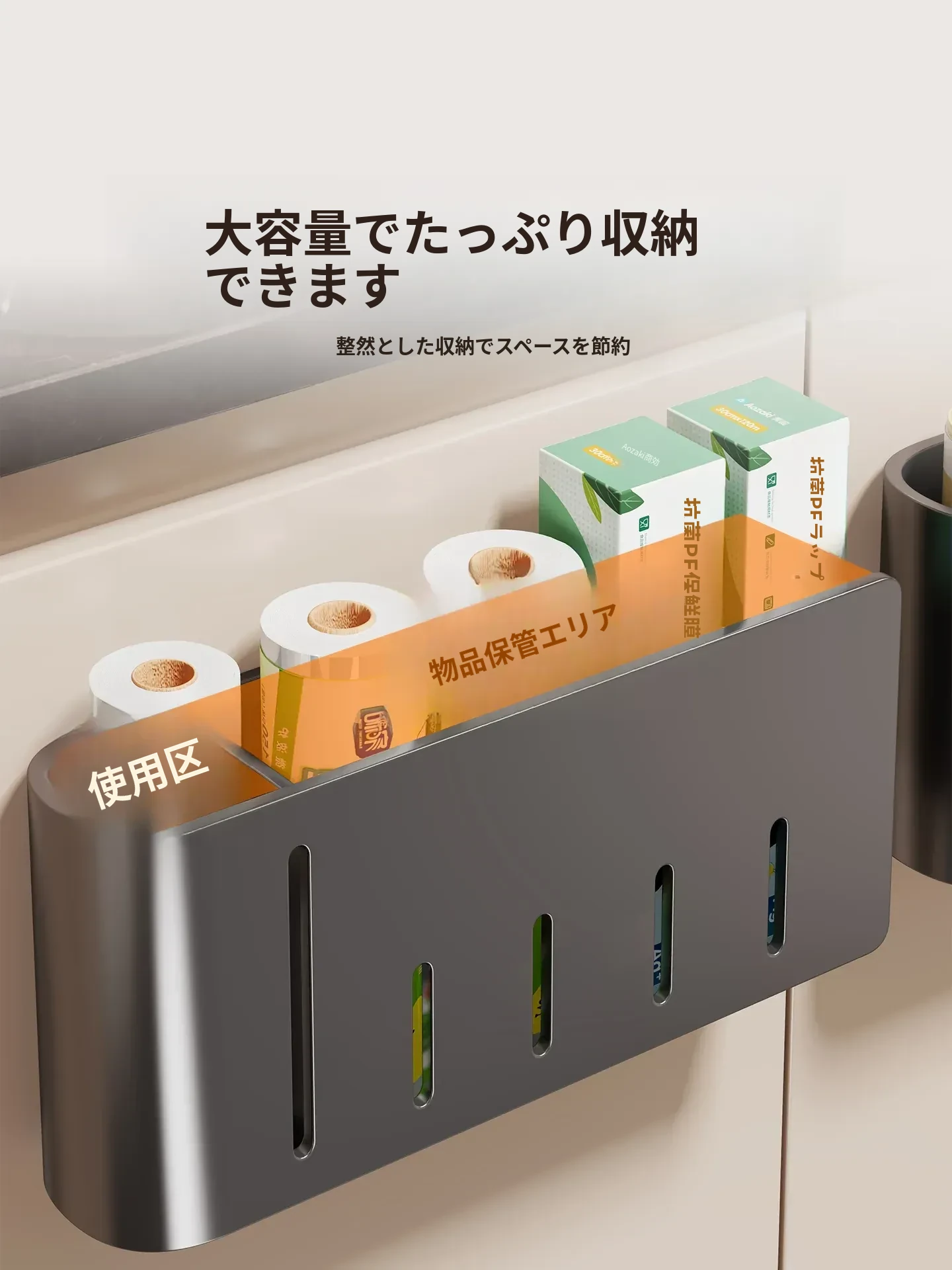 壁掛け式ゴミ袋収納ボックス - 大容量プラスチック袋抽出器!キッチンでのスペース節約を実現し、簡単取り出しで使いやすさ抜群!穴あけ不要で取り付けも簡単!おしゃれなデザインでキッチンをスッキリ整理!