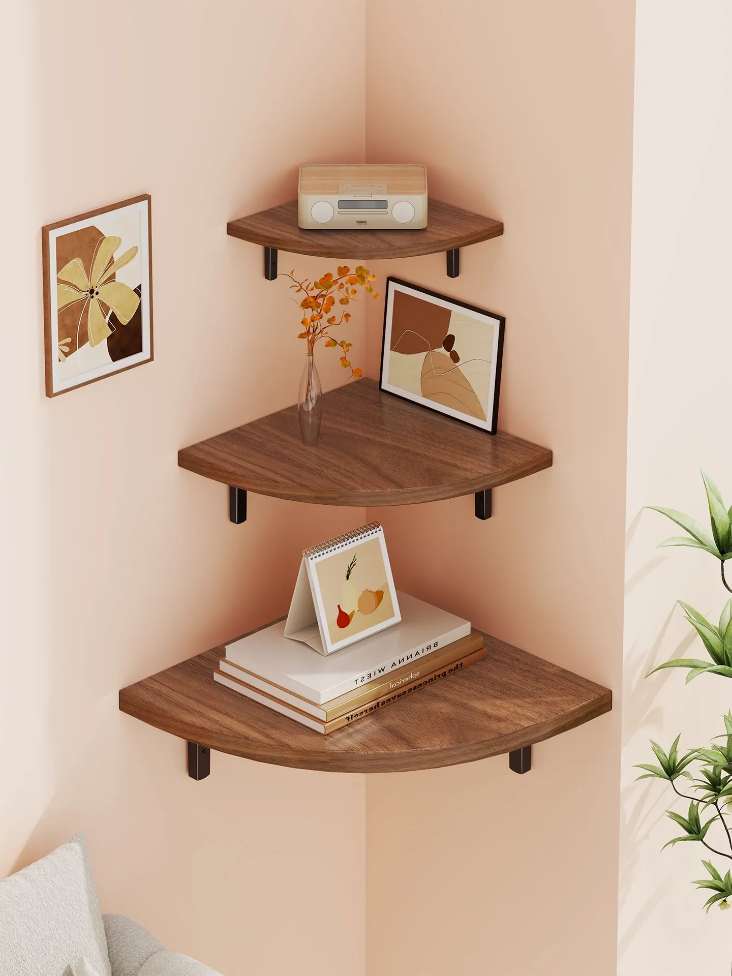 壁掛けコーナー棚 - 寝室の壁を有効活用!三角形収納でスペースを有効に使い、ベッドサイドや角にぴったりフィットする本棚。おしゃれな収納でお部屋をスッキリ整えましょう!