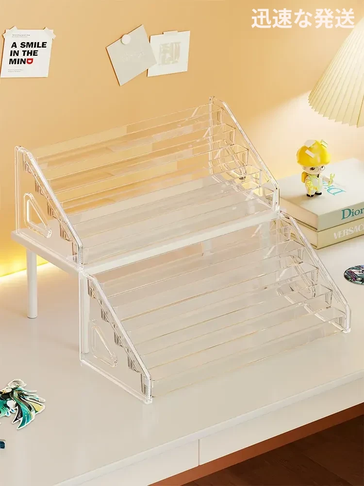 アクリルバッジディスプレイスタンド デスク用透明階段ラック コレクションボックス 周辺バッジ収納に最適!整理整頓もおしゃれに。あなたの大切なアイテムを美しく見せる!