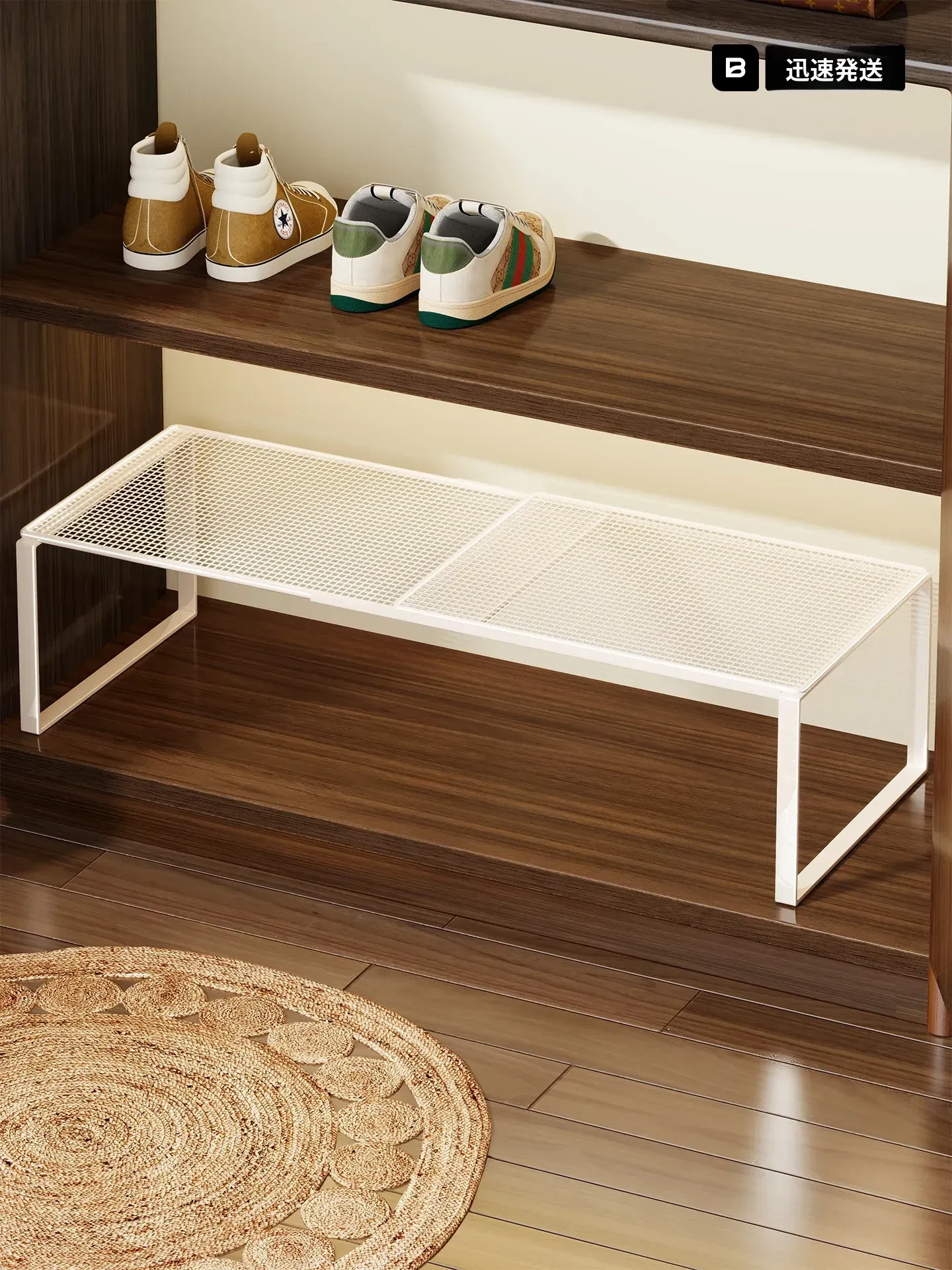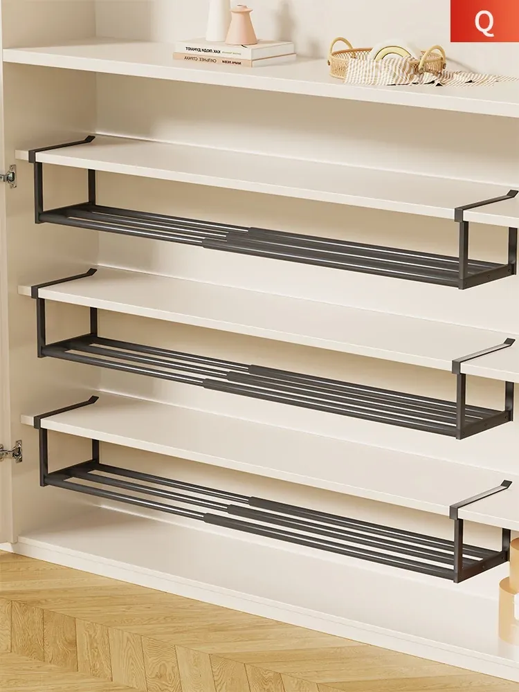 伸縮可能な靴棚 - スペースを有効活用!多層収納の靴トレイで、寝室やクローゼットをスッキリ整理。衣類もスムーズに収納できる便利な収納アイテムです。