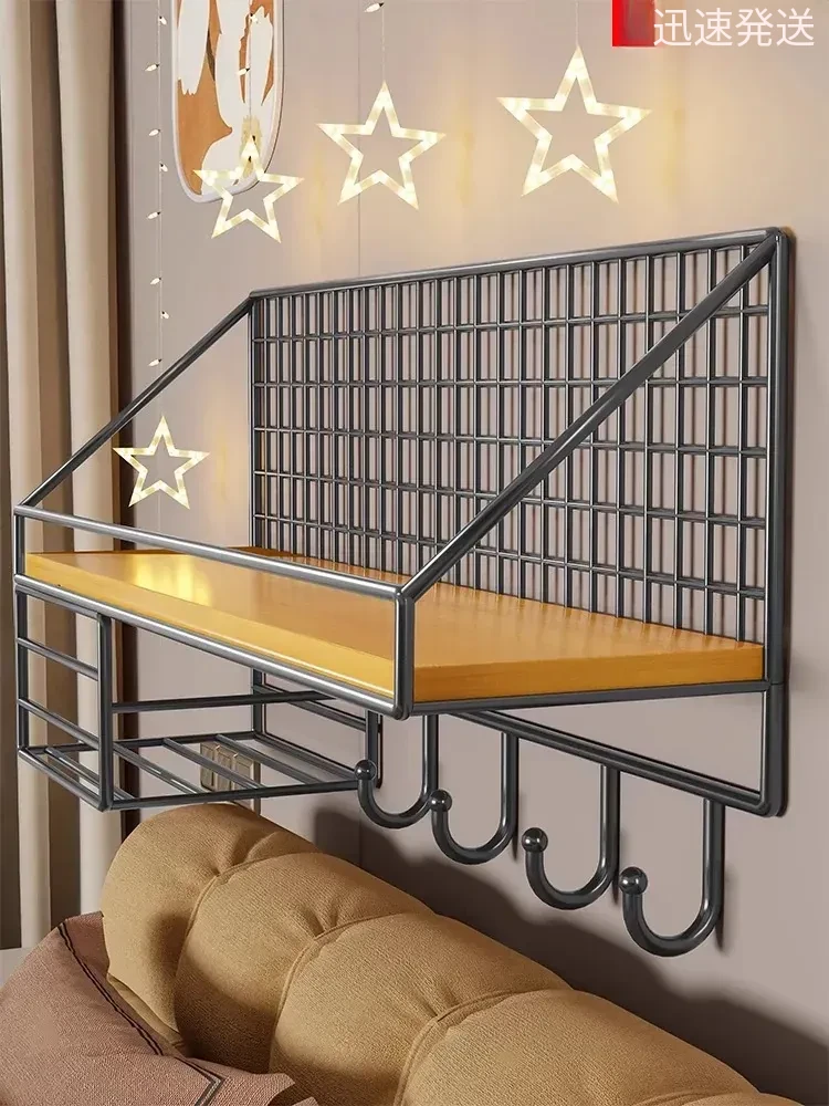 壁掛け収納ラック - 宿舎や学生寮に最適!穴を開けずに簡単取り付け、ベッドサイドでお菓子や本をすっきり収納。おしゃれで便利なデザインで、あなたの部屋をもっと快適に!